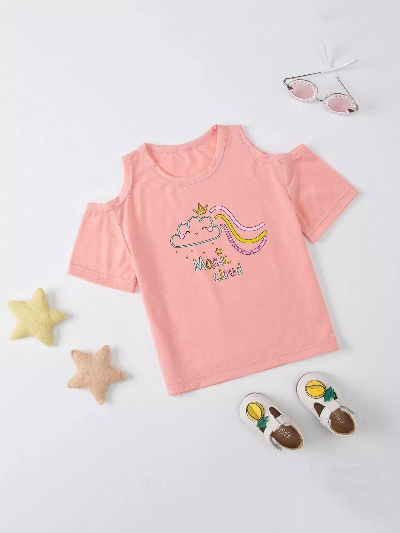 Toddler Girls Cold Shoulder Cartoon Graphic Tee