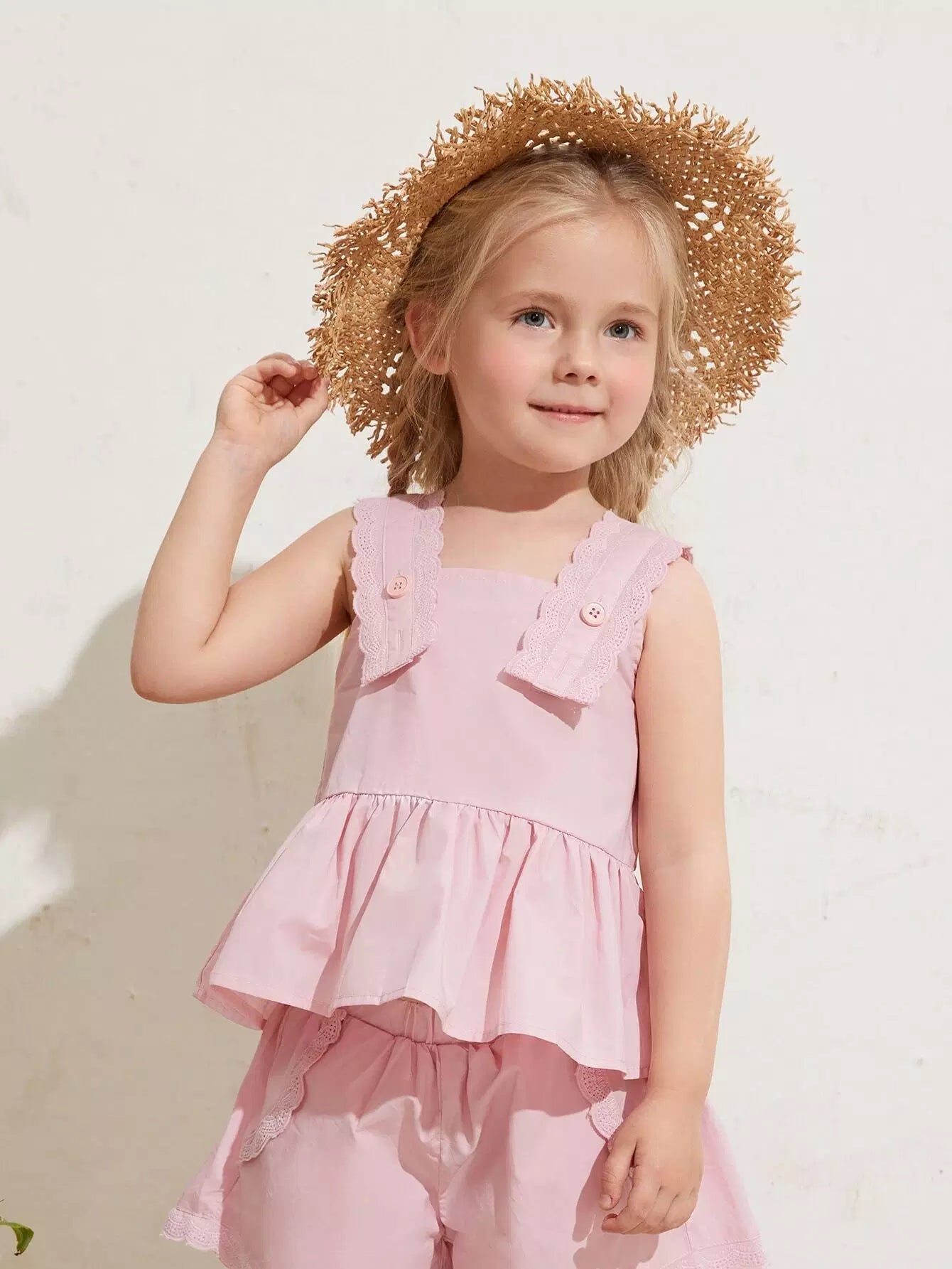 Toddler Girls Eyelet Embroidered Ruffle Hem Tank Top