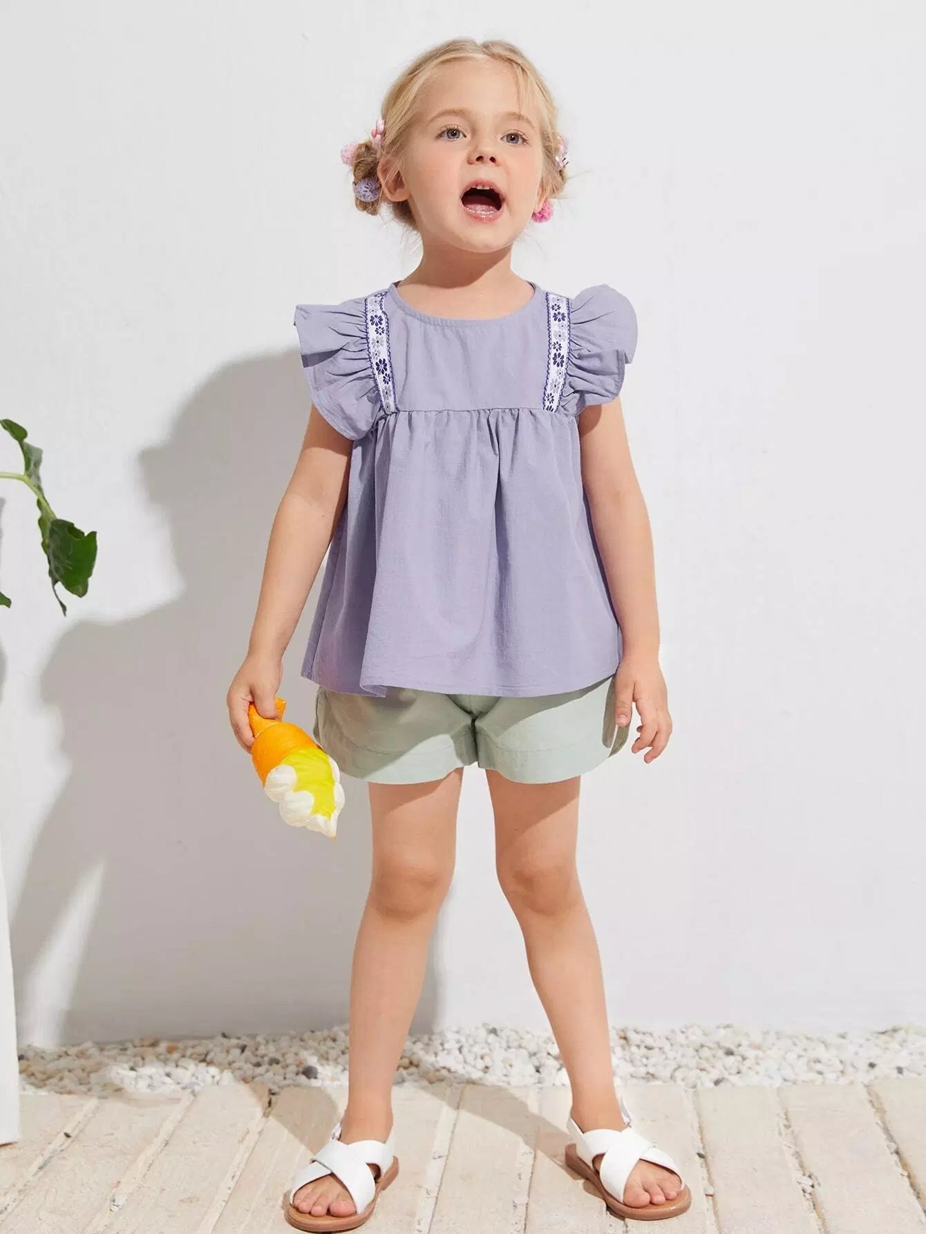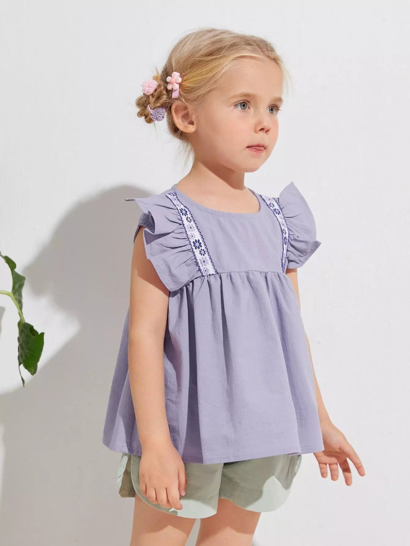 Toddler Girls Floral Tape Ruffle Trim Smock Top