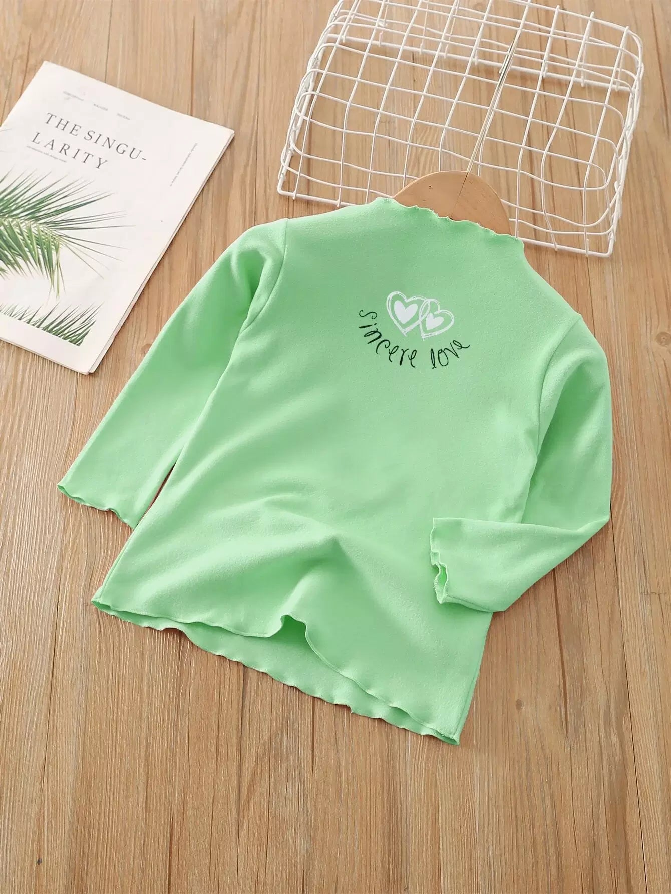 Kids - Toddler Girls Heart & Letter Graphic Lettuce Trim Tee