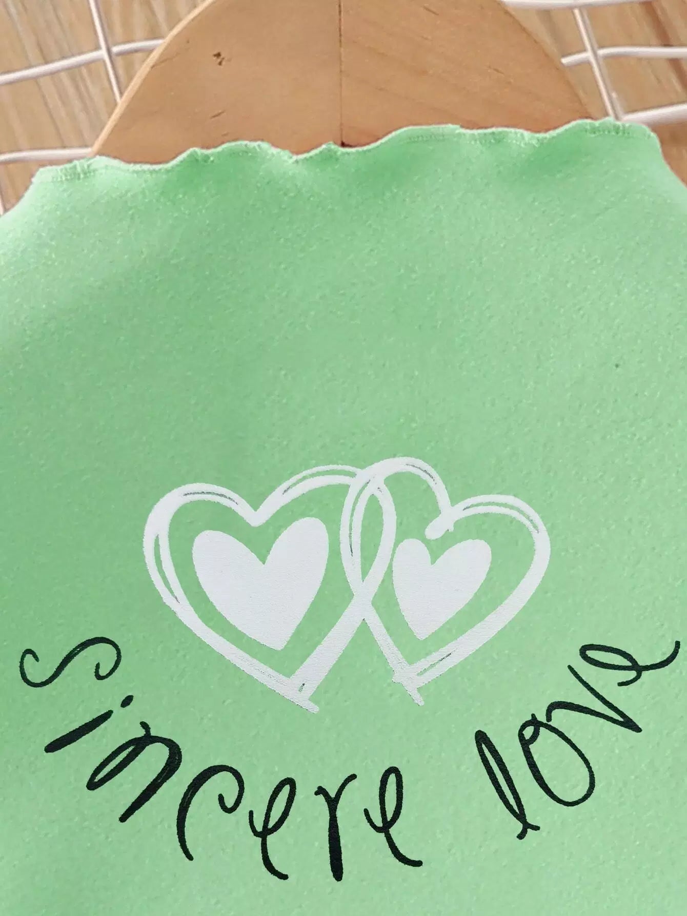 Toddler Girls Heart & Letter Graphic Lettuce Trim Tee