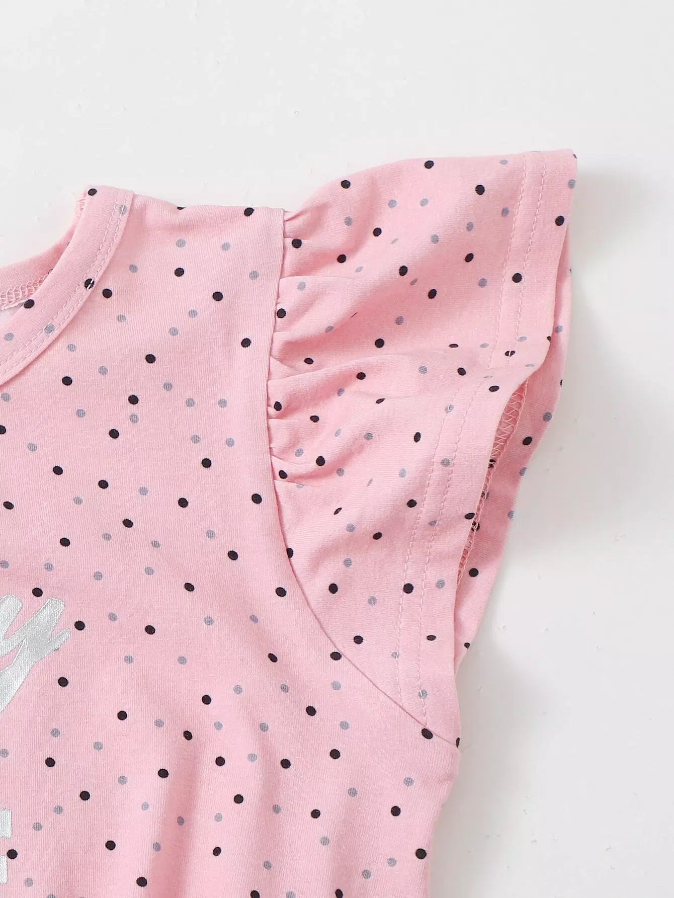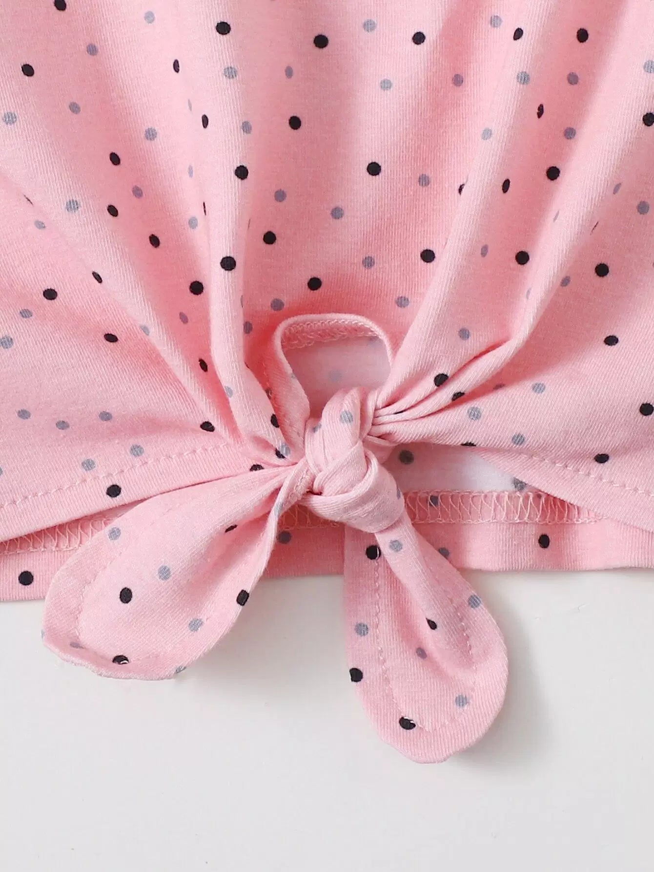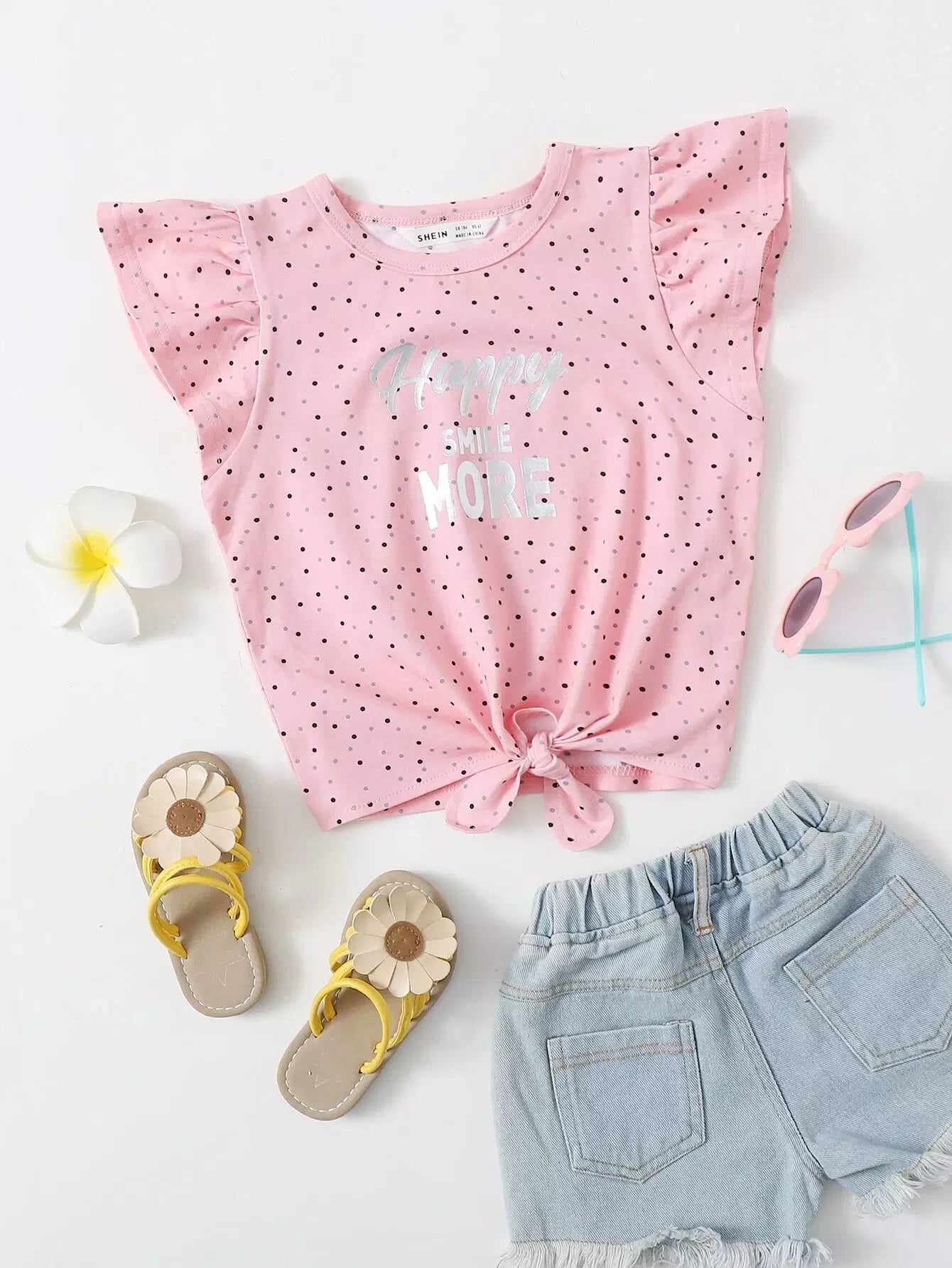 Toddler Girls Knot Hem Letter and Polka Dot Top