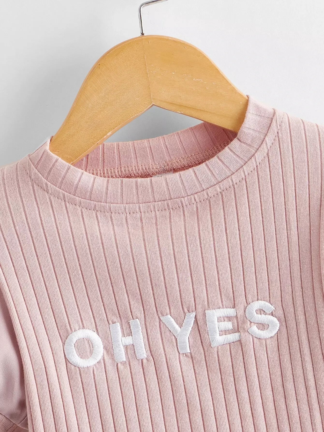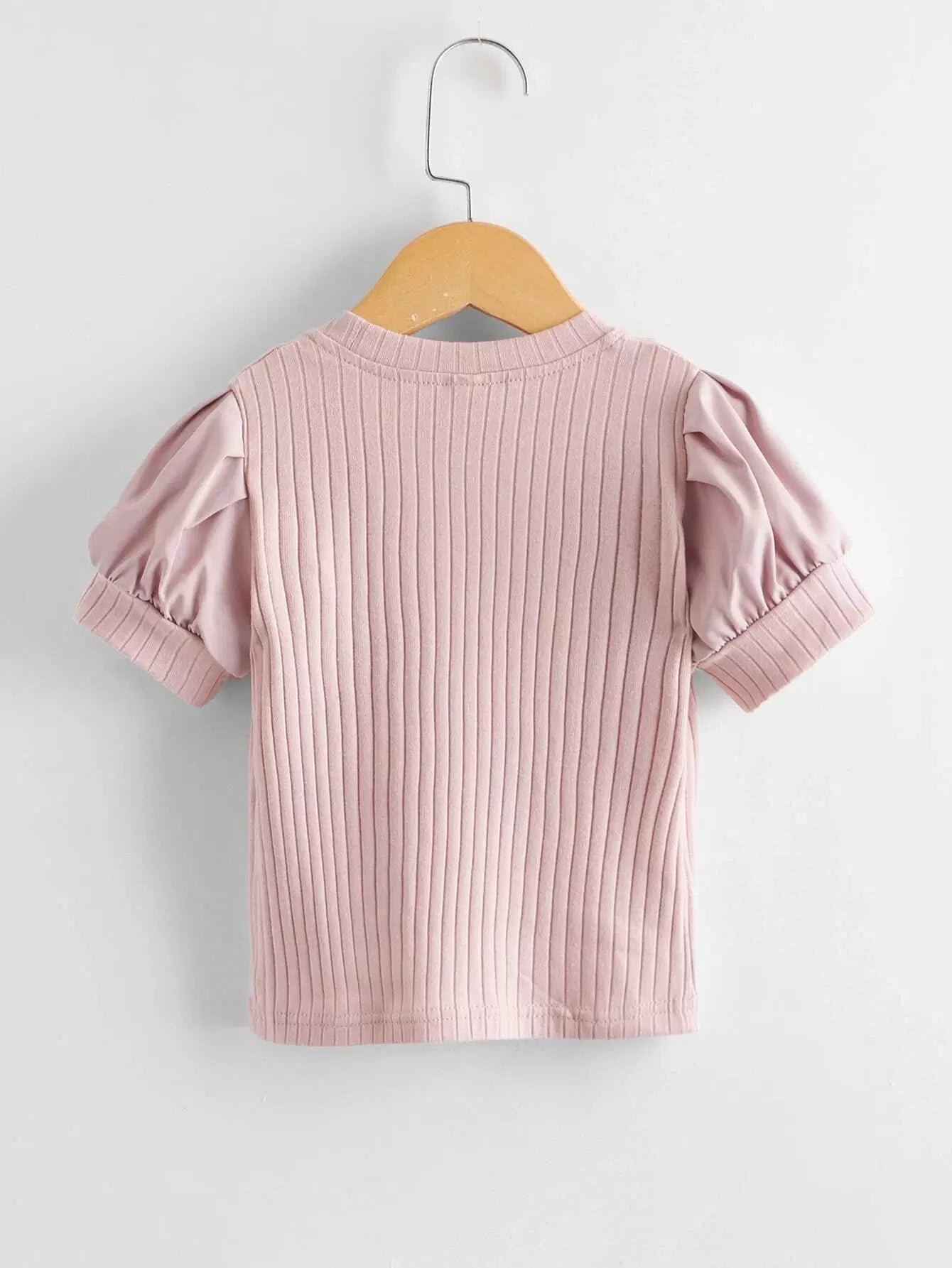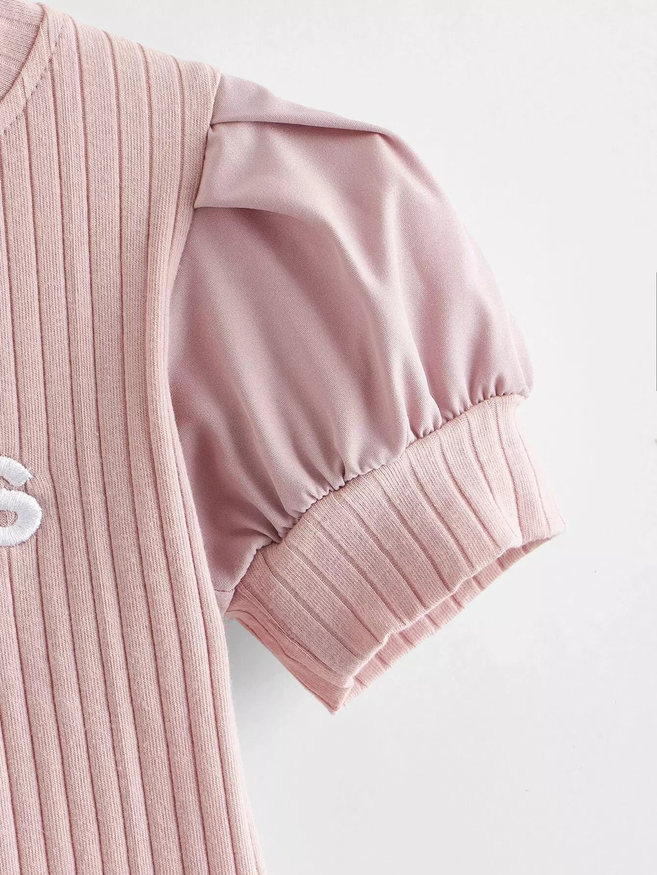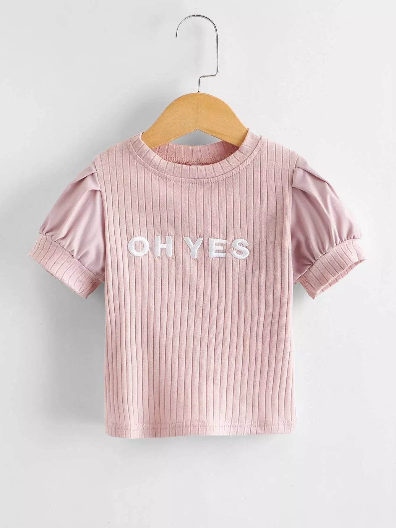 Kids - Toddler Girls Letter Embroidery Puff Sleeve Tee
