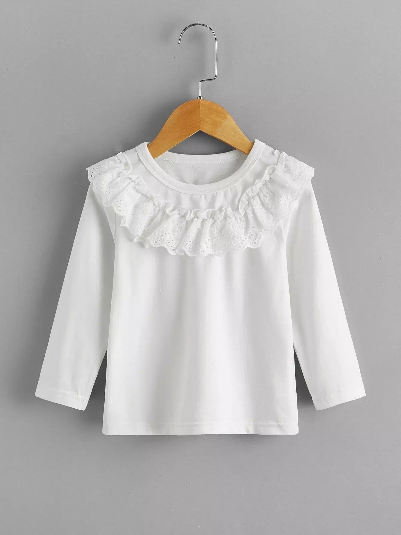 Toddler Girls Ruffle Eyelet Embroidered Tee