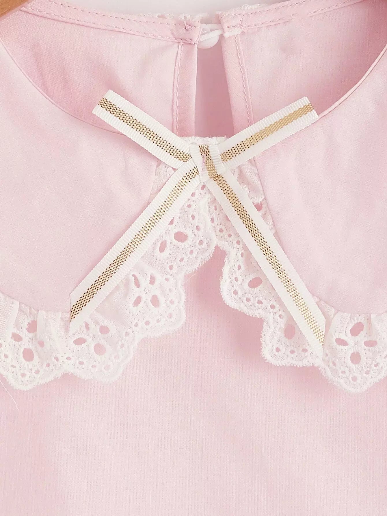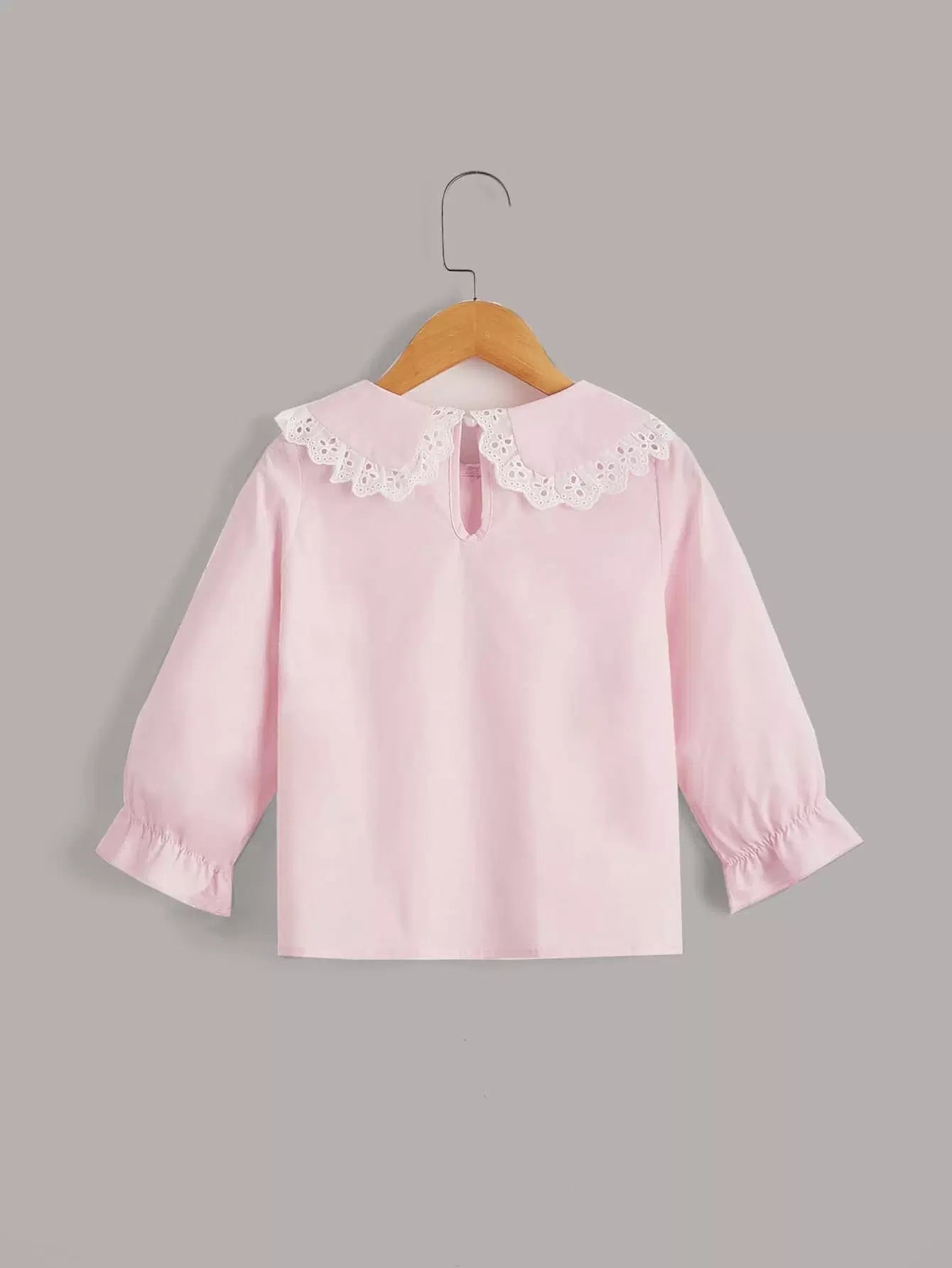 Toddler Girls Eyelet Embroidery Bow Front Flounce Sleeve Blouse