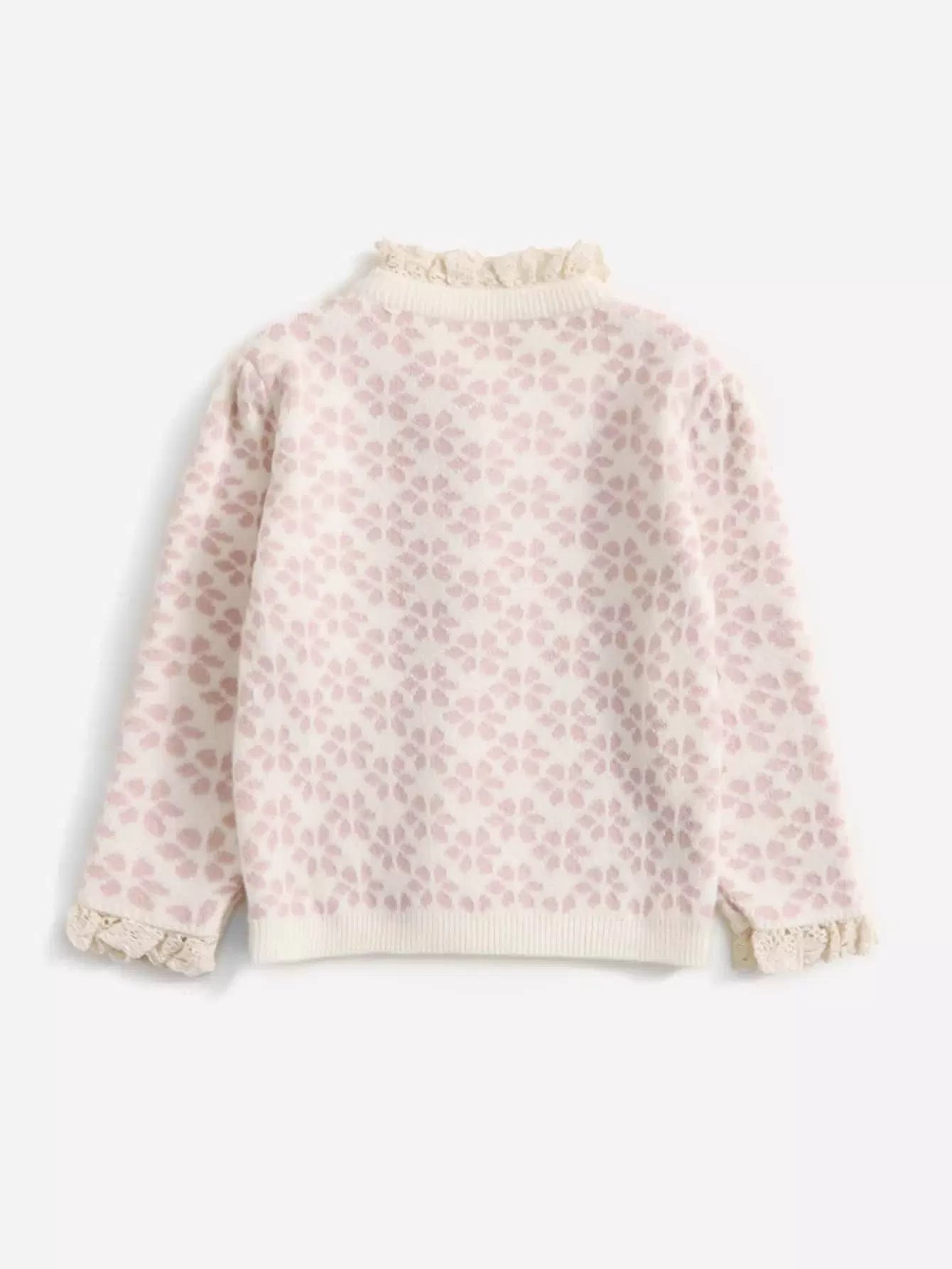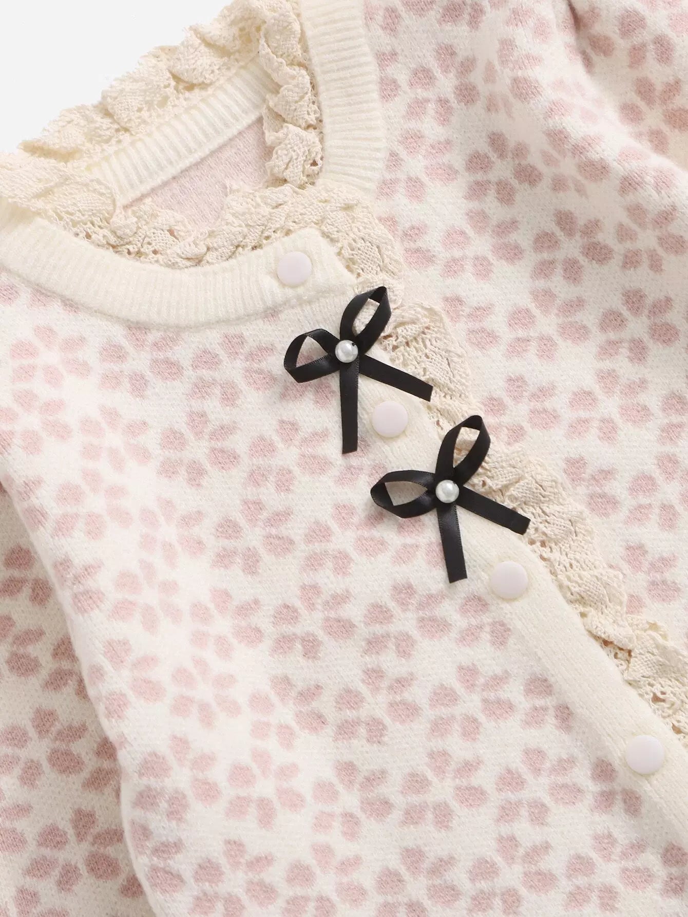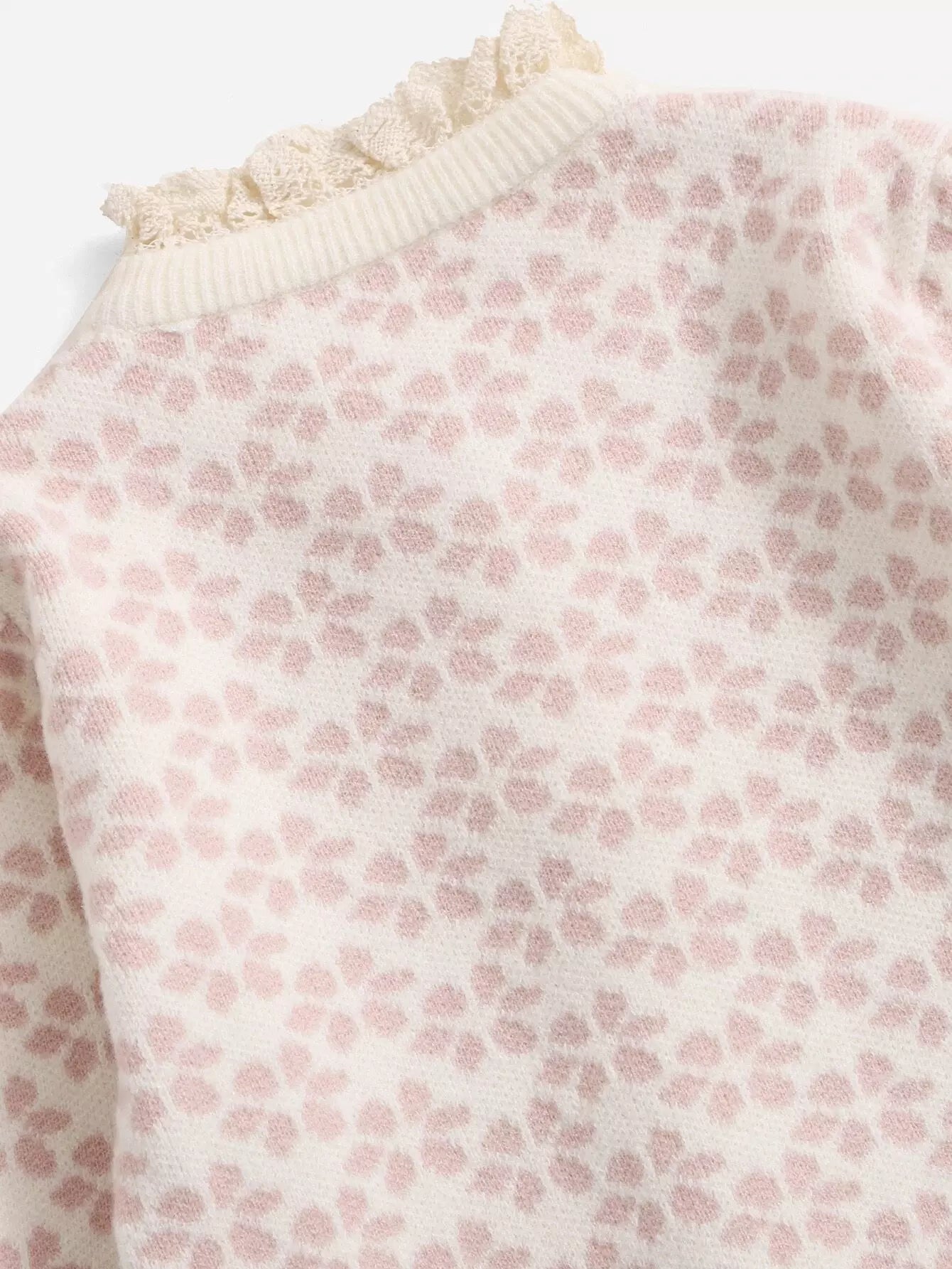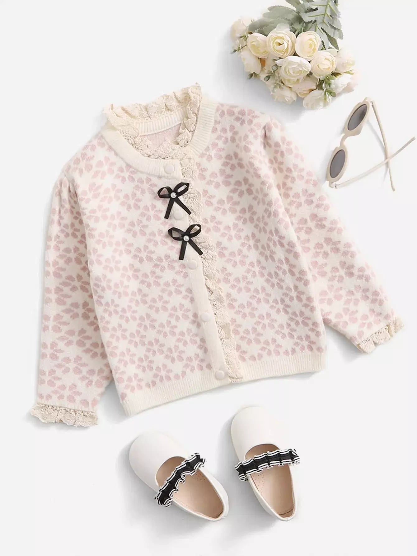 Toddler Girls Floral Pattern Guipure Lace Trim Bow Front Cardigan