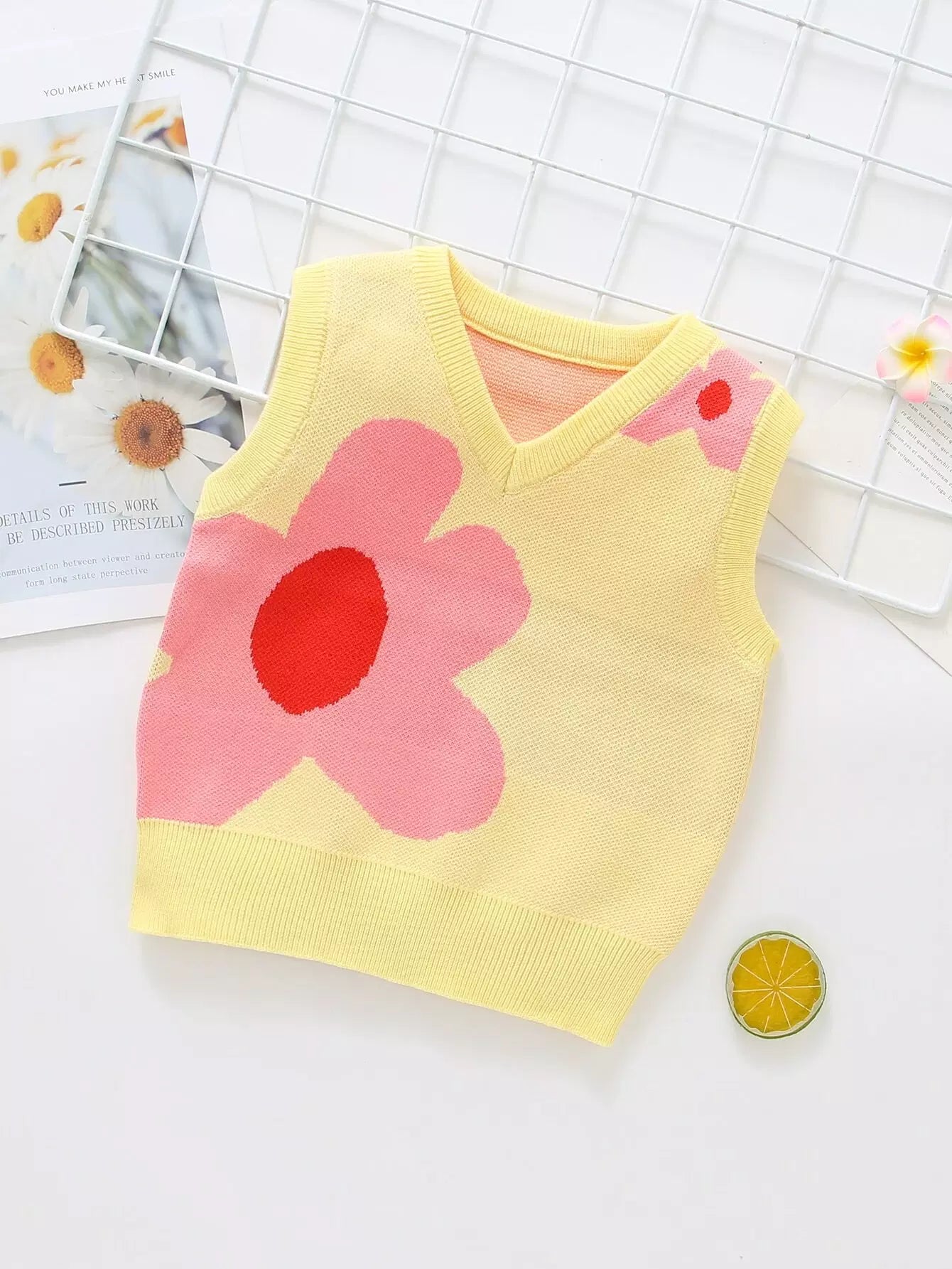 Kids - Toddler Girls Floral Pattern Sweater Vest