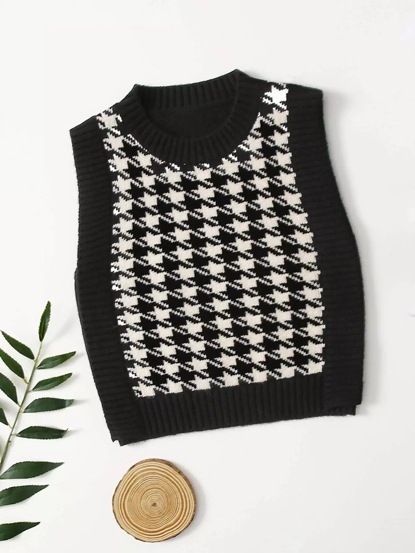 Toddler Girls Houndstooth Pattern Sweater Vest