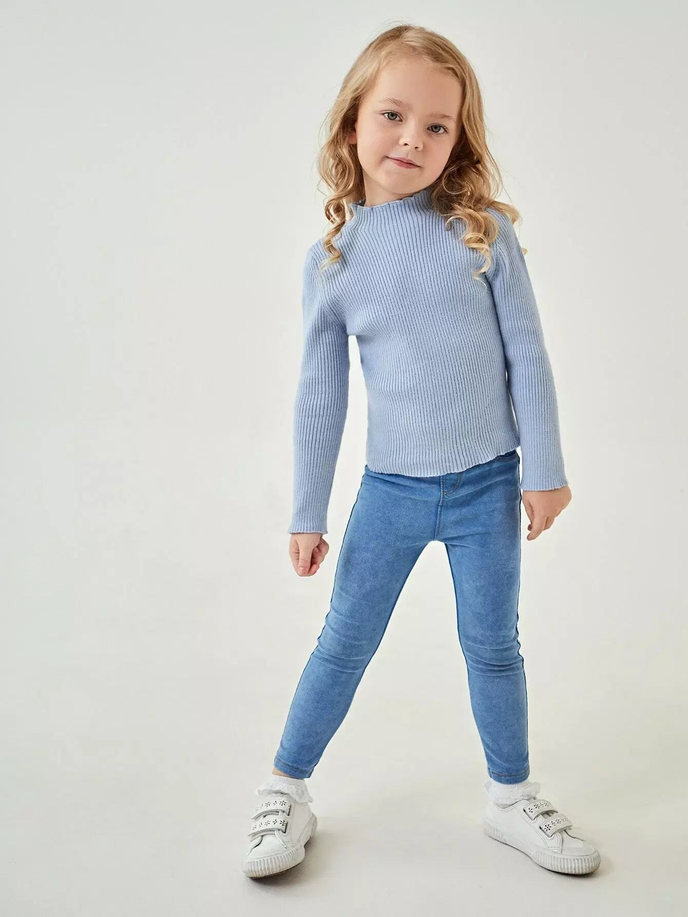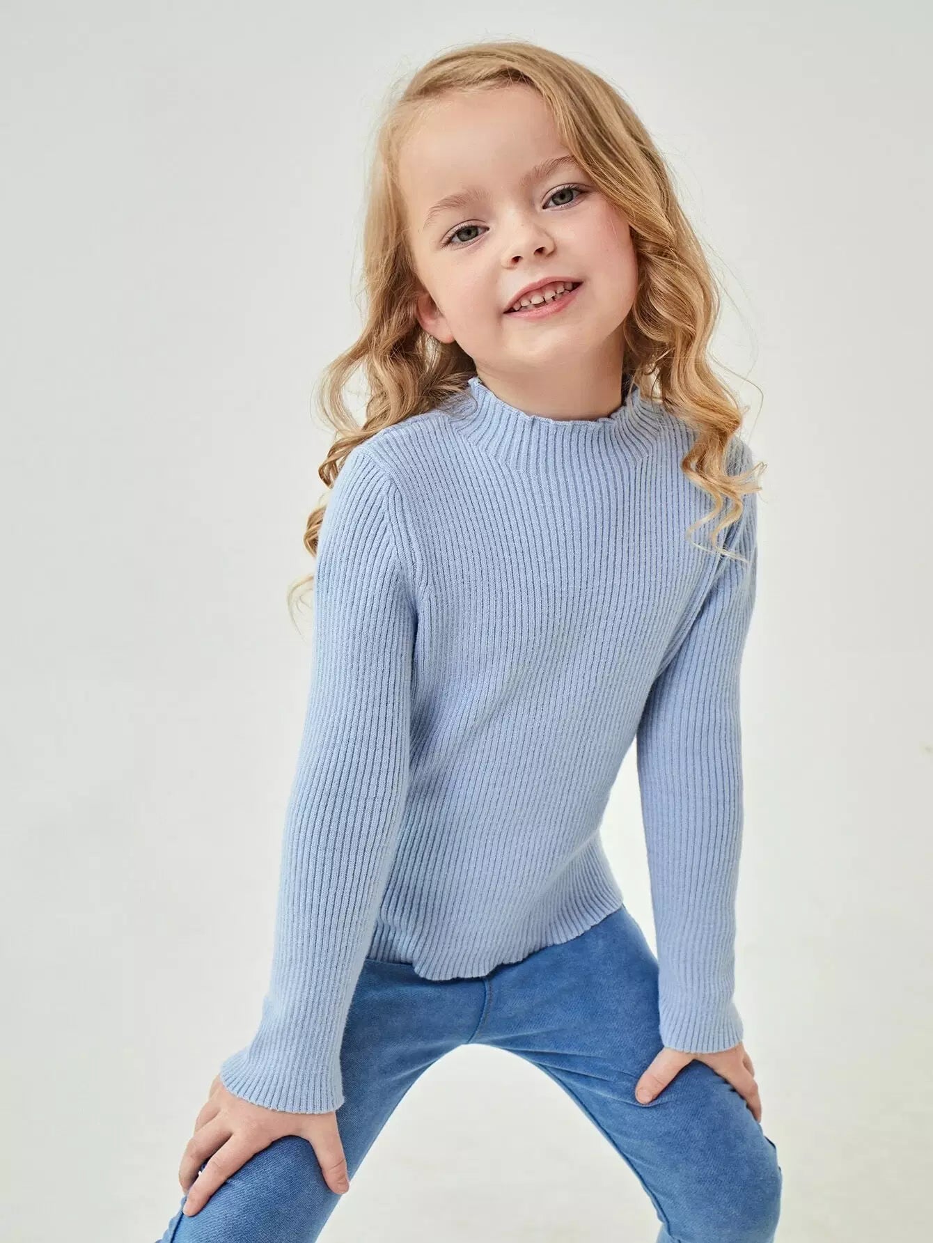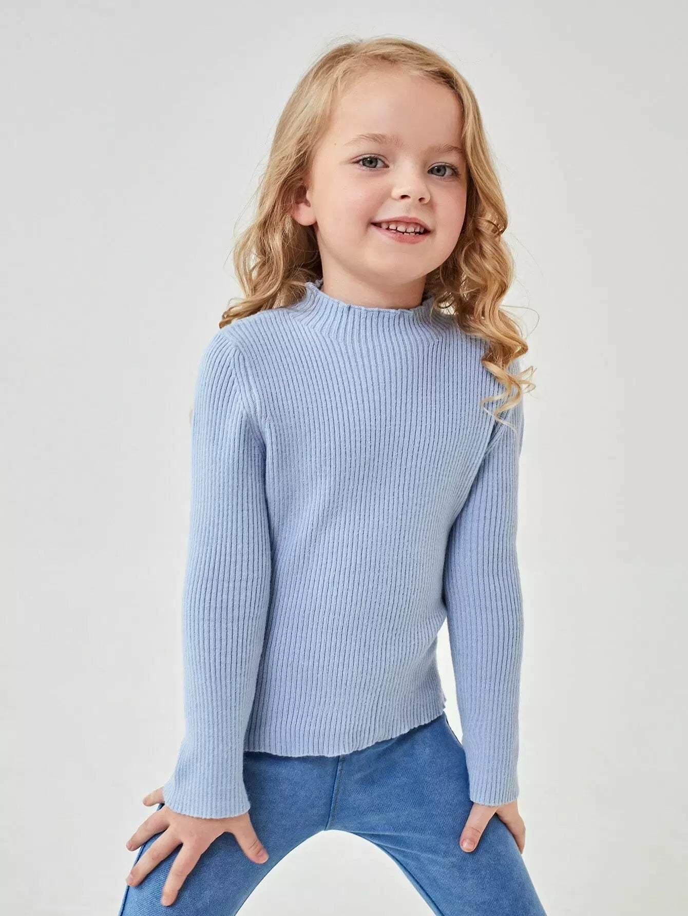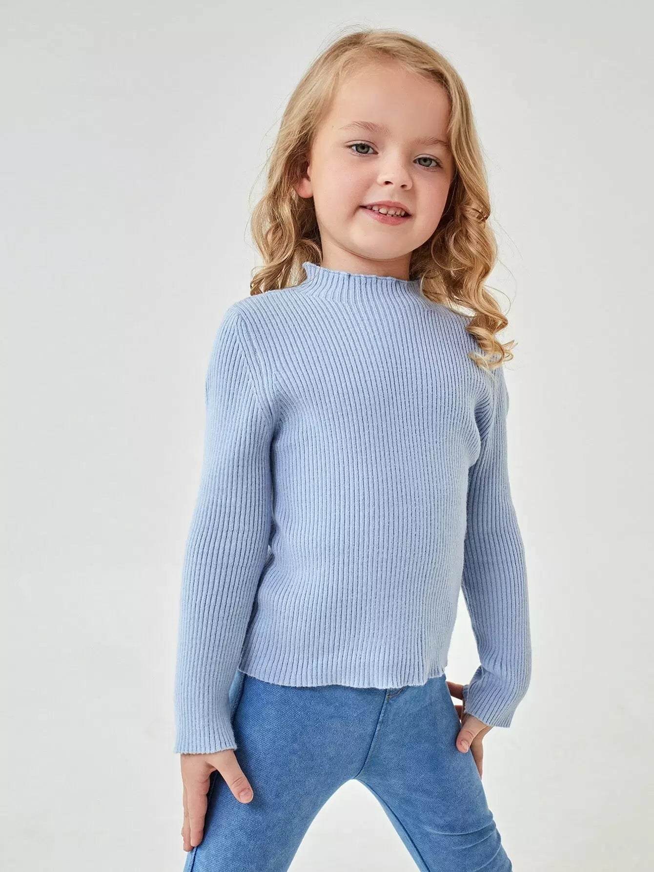 Toddler Girls Mock Neck Rib Knit Sweater