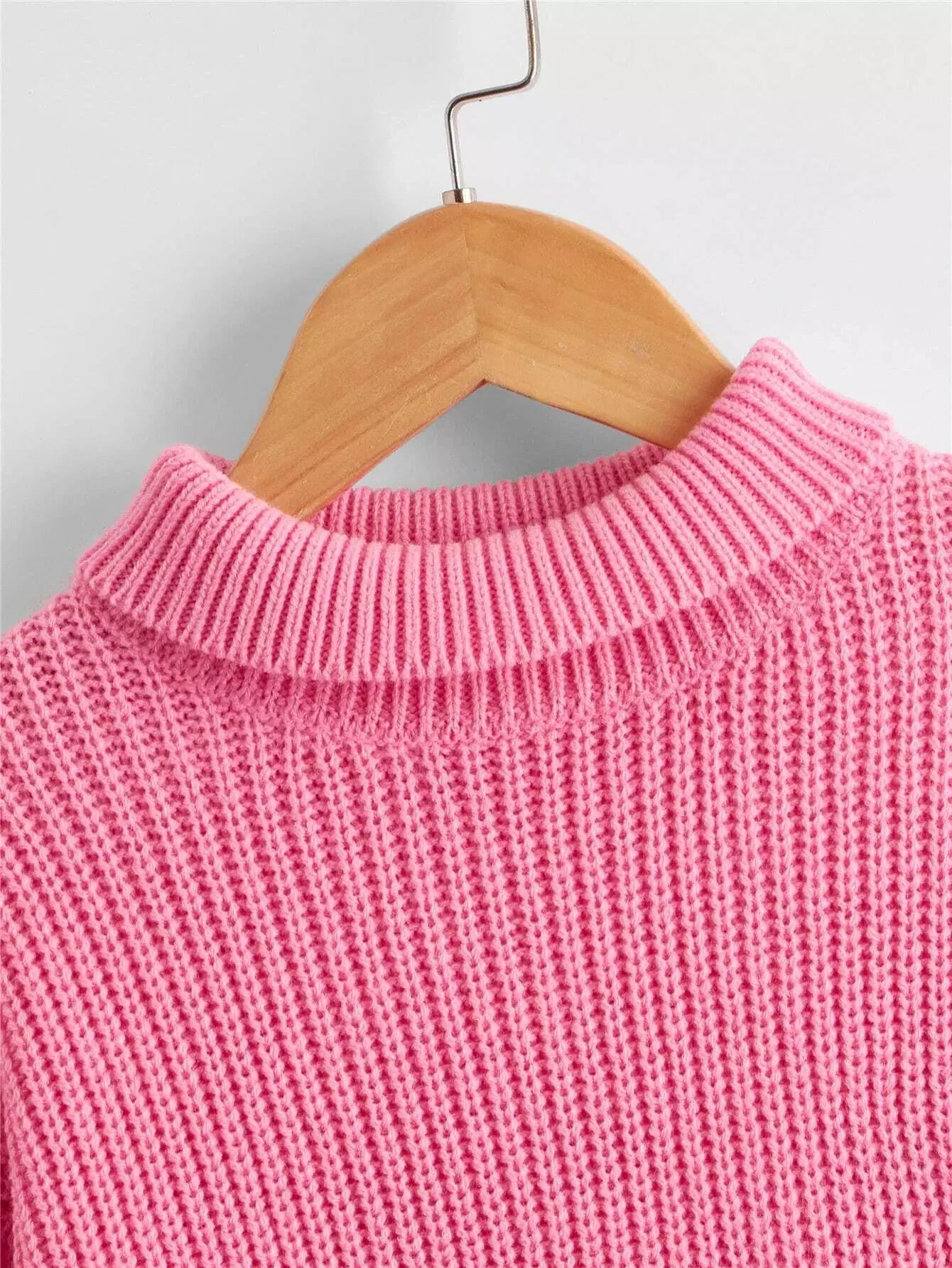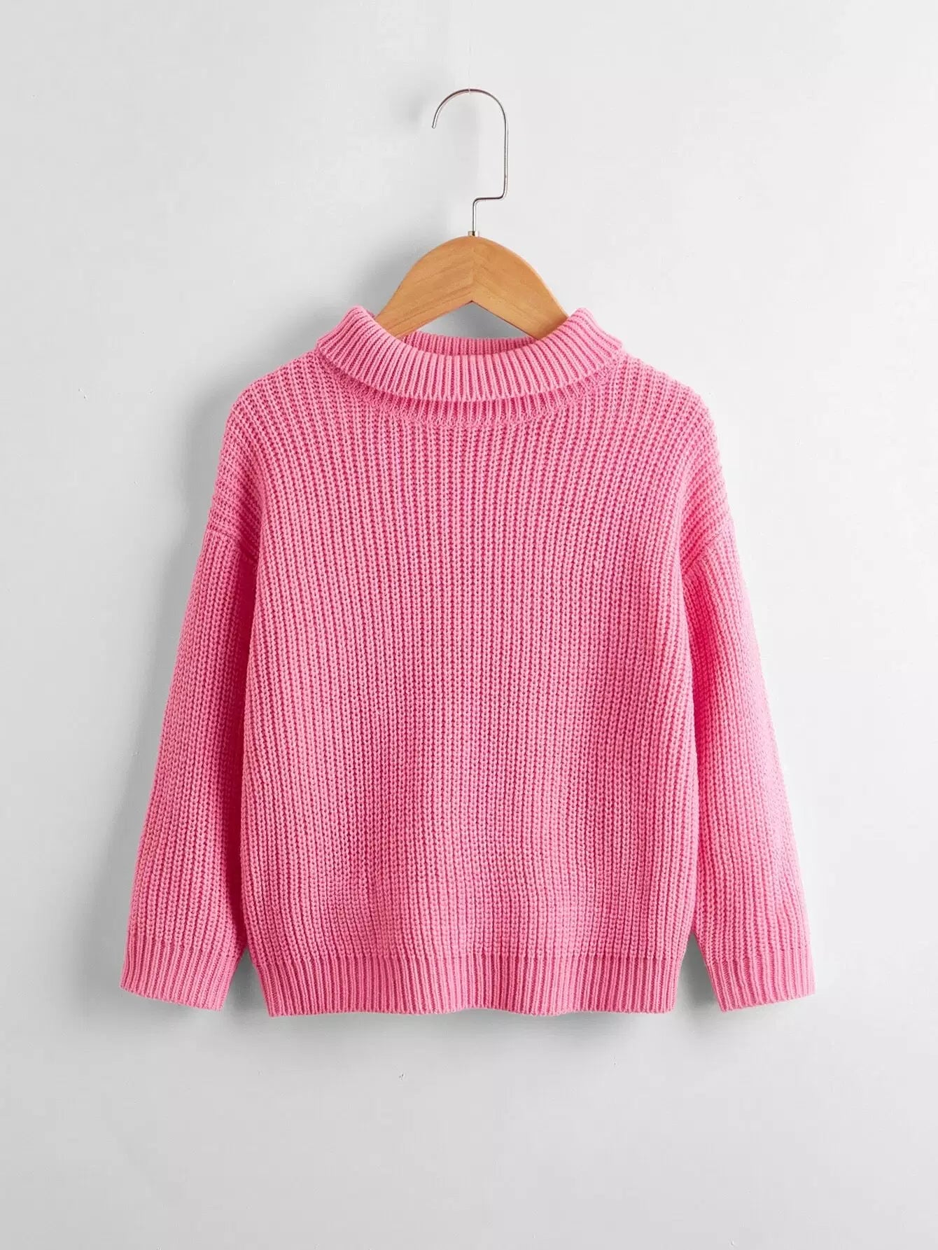 Toddler Girls Turtle Neck Drop Shoulder Sweater