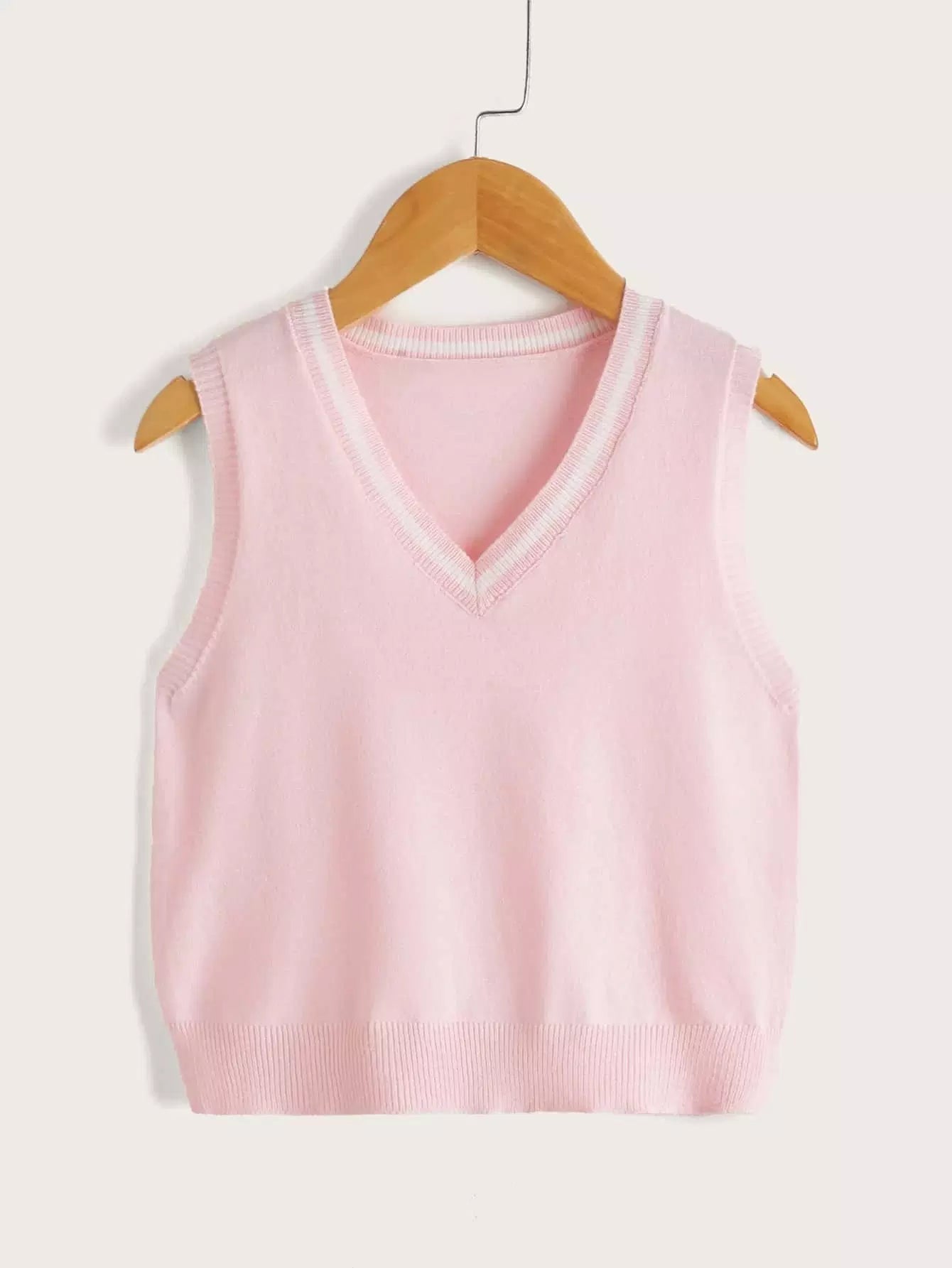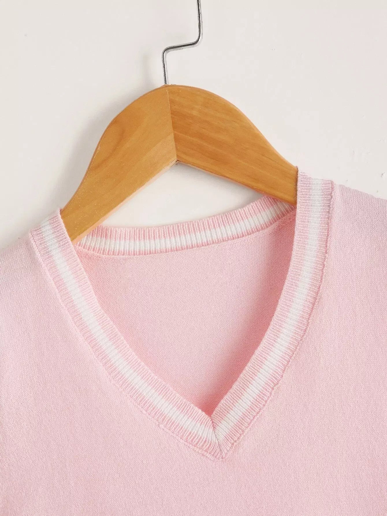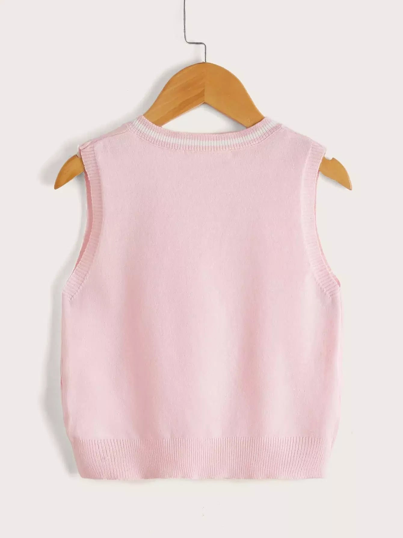 Toddler Girls V Neck Striped Pattern Sweater Vest
