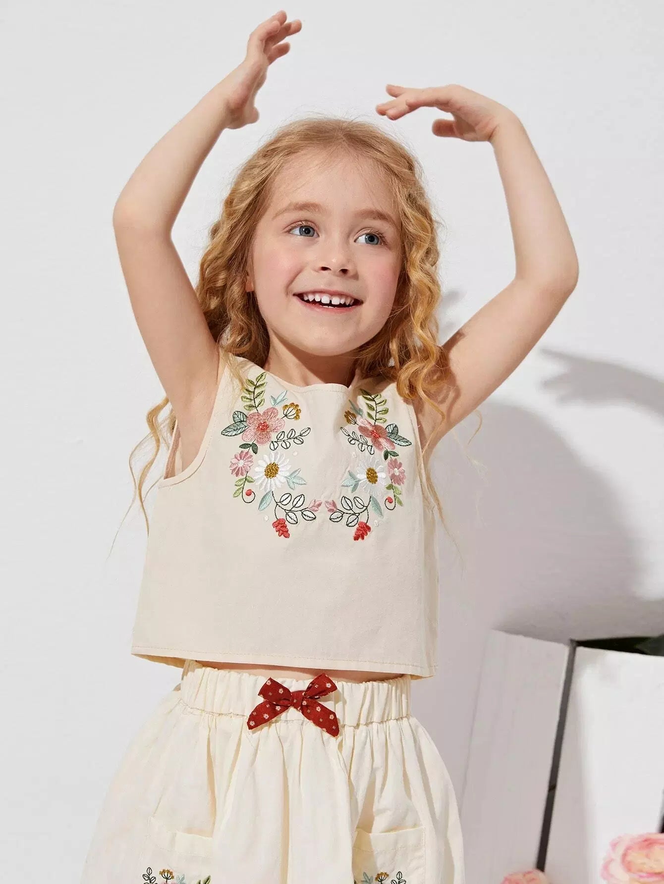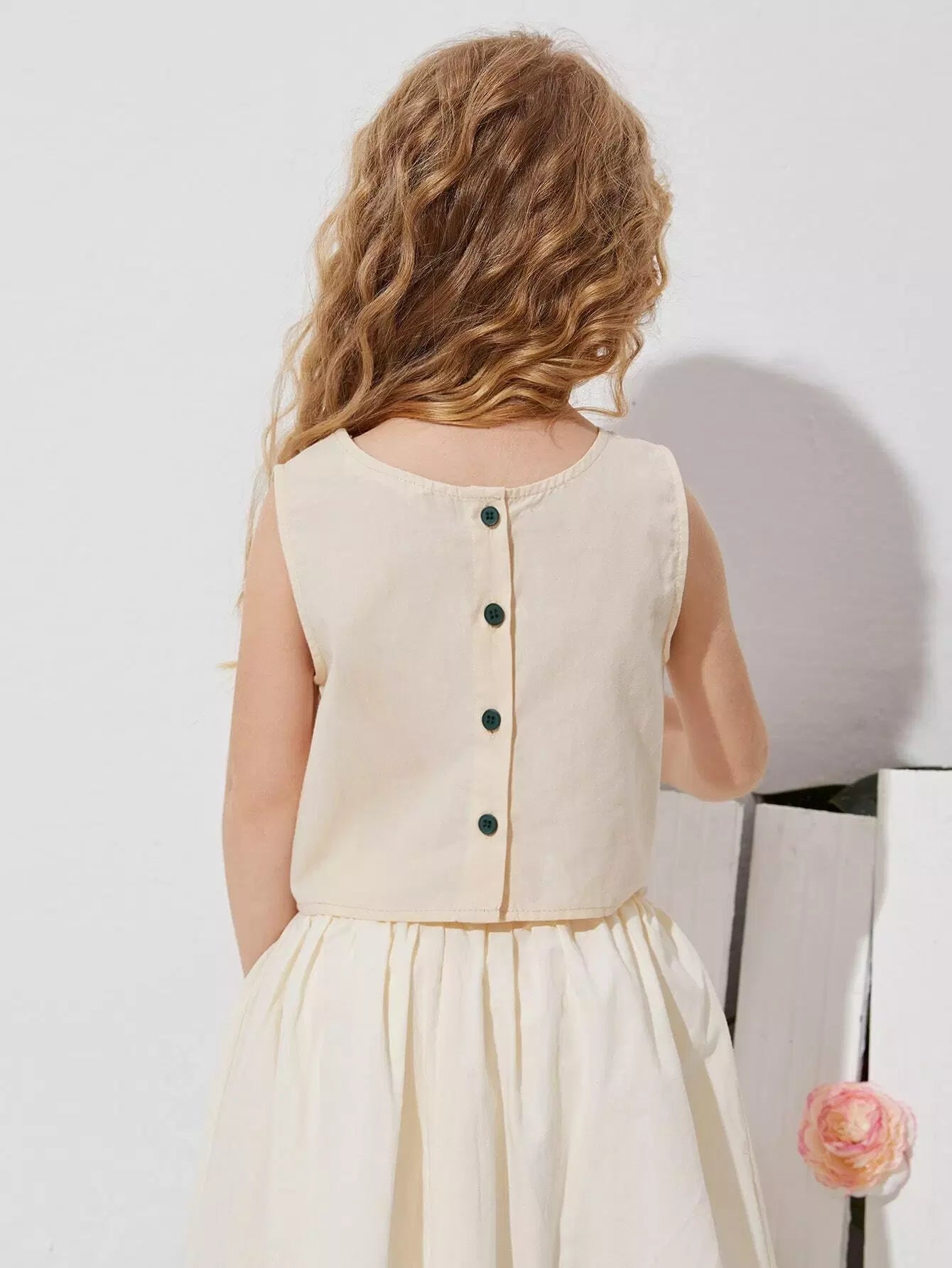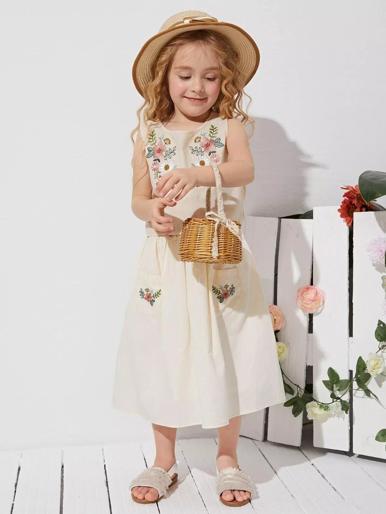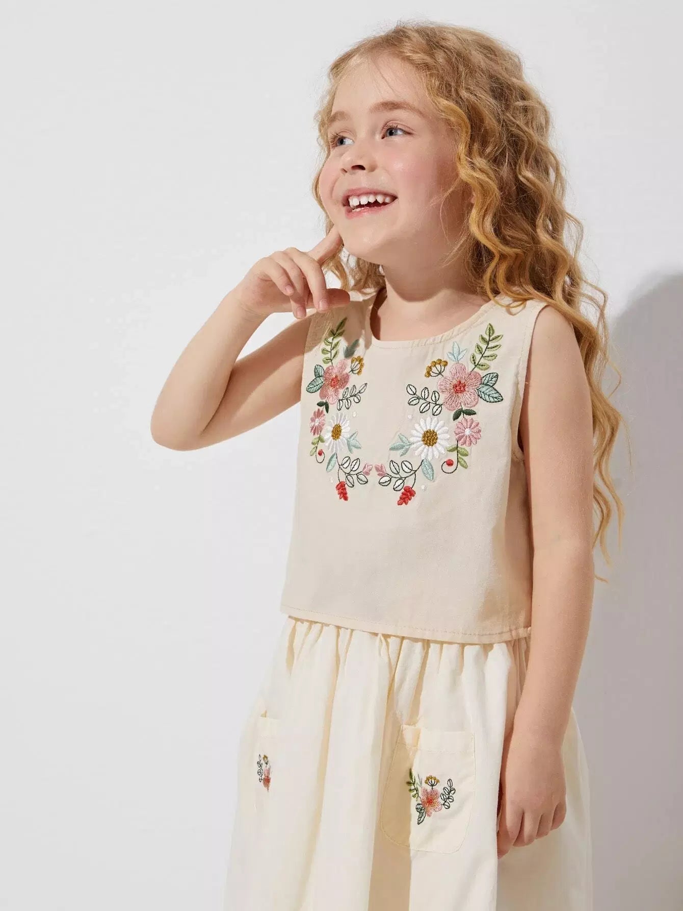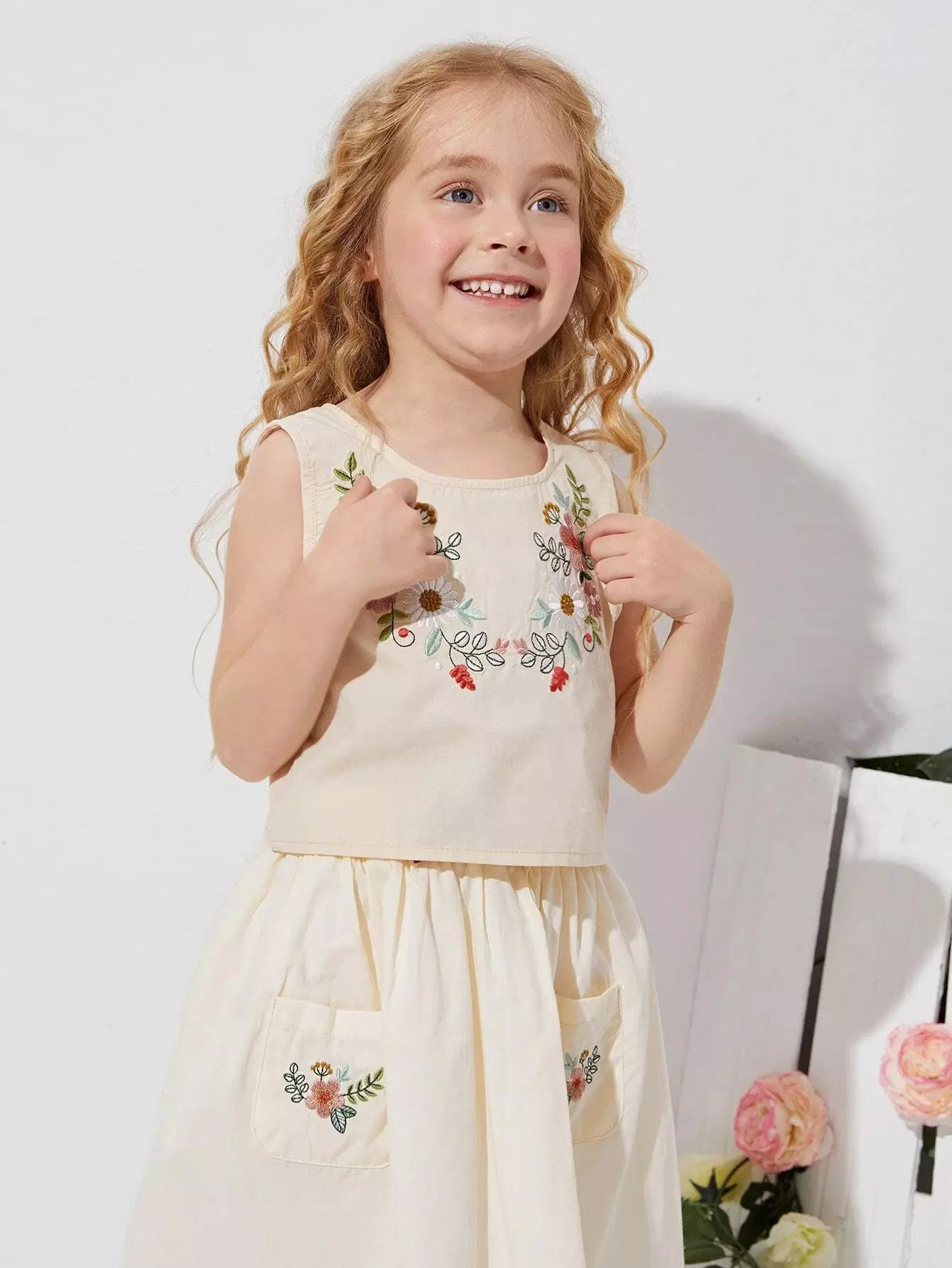Toddler Girls Floral Embroidered Button Back Tank Top