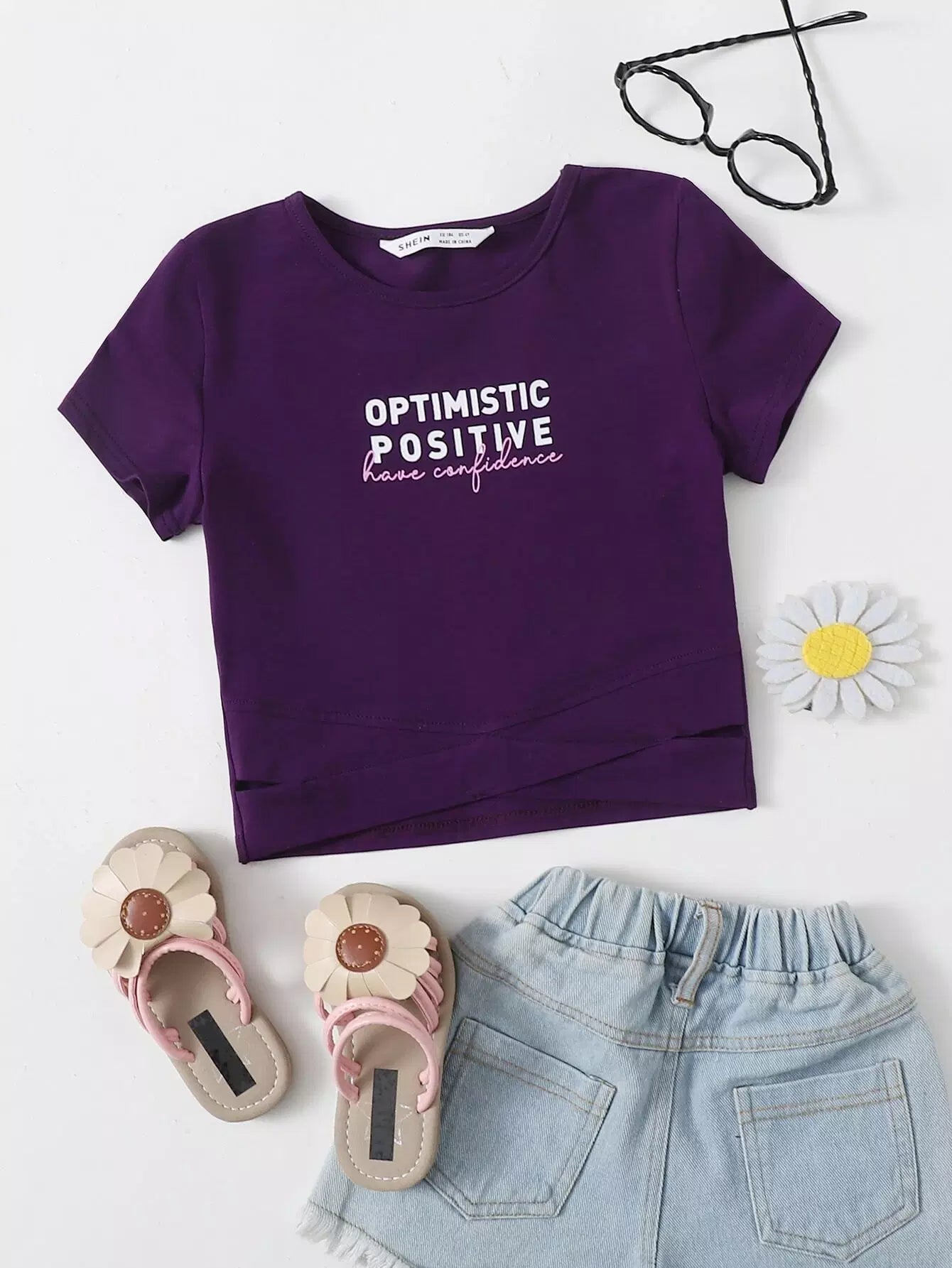 Toddler Girls Letter Graphic Crisscross Hem Top