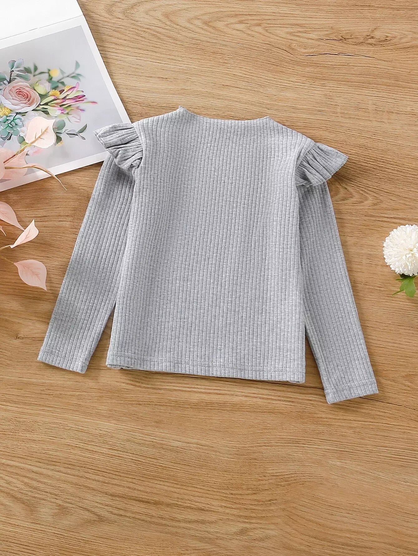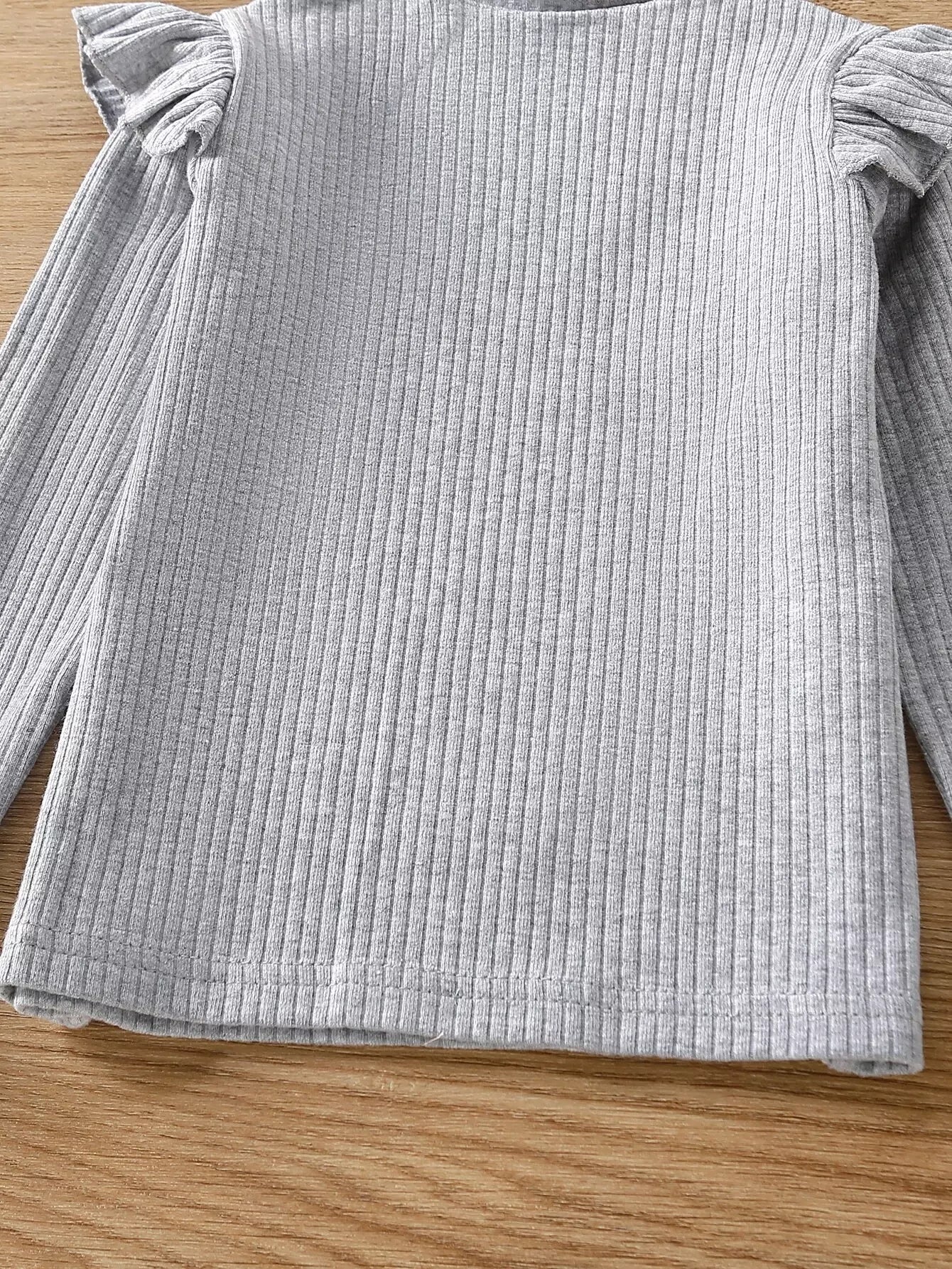 Toddler Girls Ruffle Trim Rib Knit Tee
