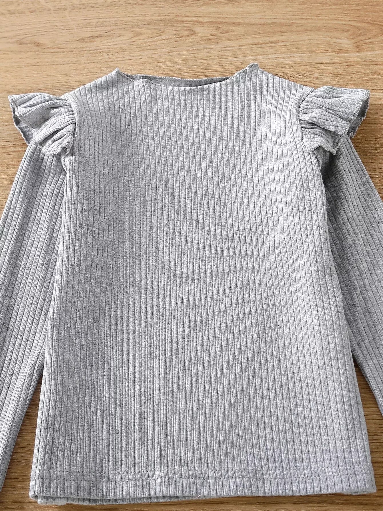 Toddler Girls Ruffle Trim Rib Knit Tee