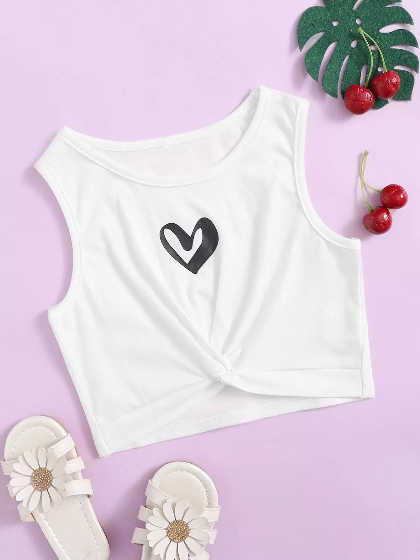 Toddler Girls Twist Hem Heart Print Tank Top