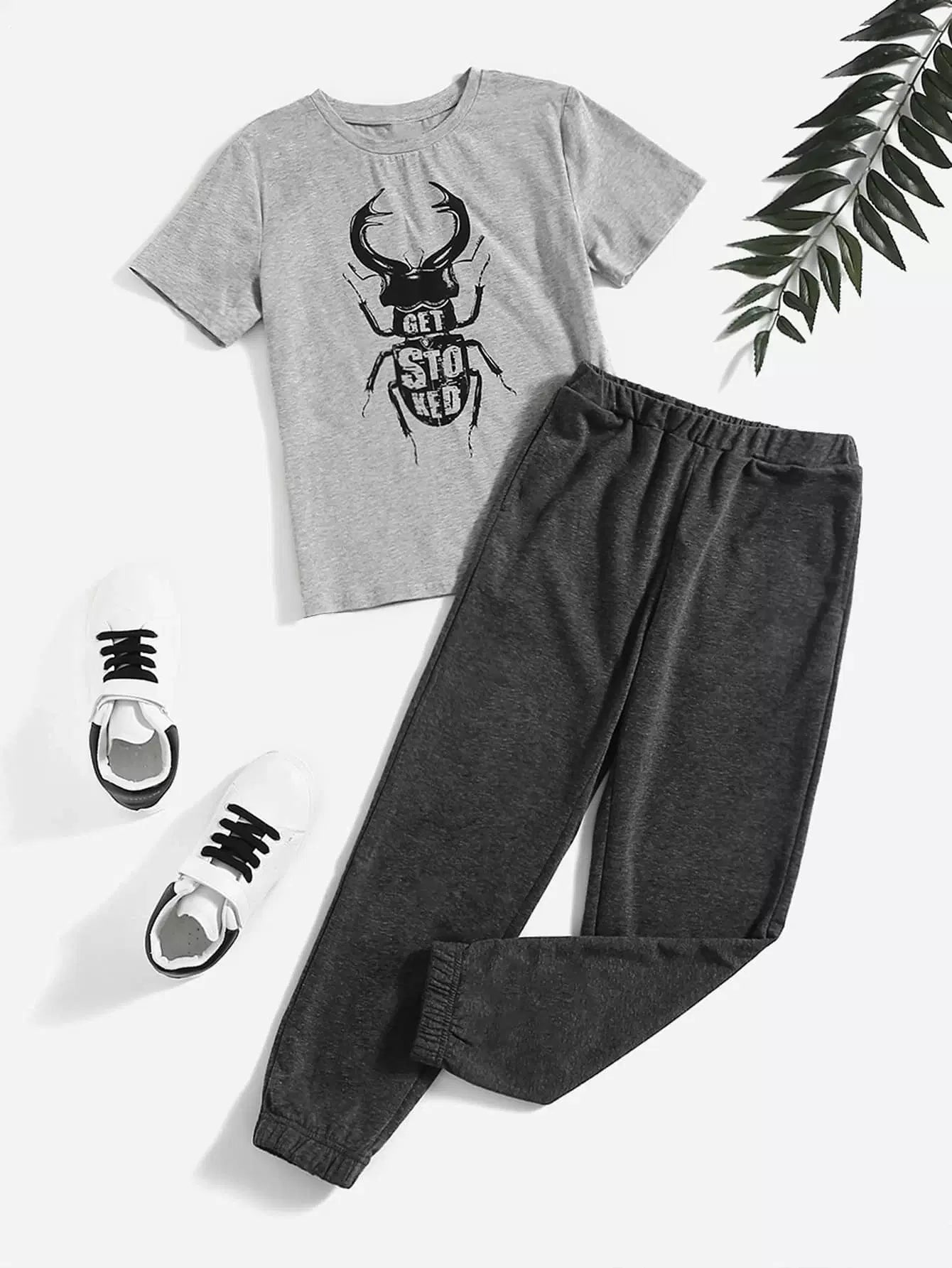 Boys Beetle Letter Graphic Tee & Sweatpants