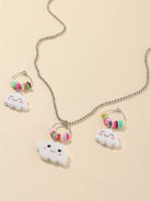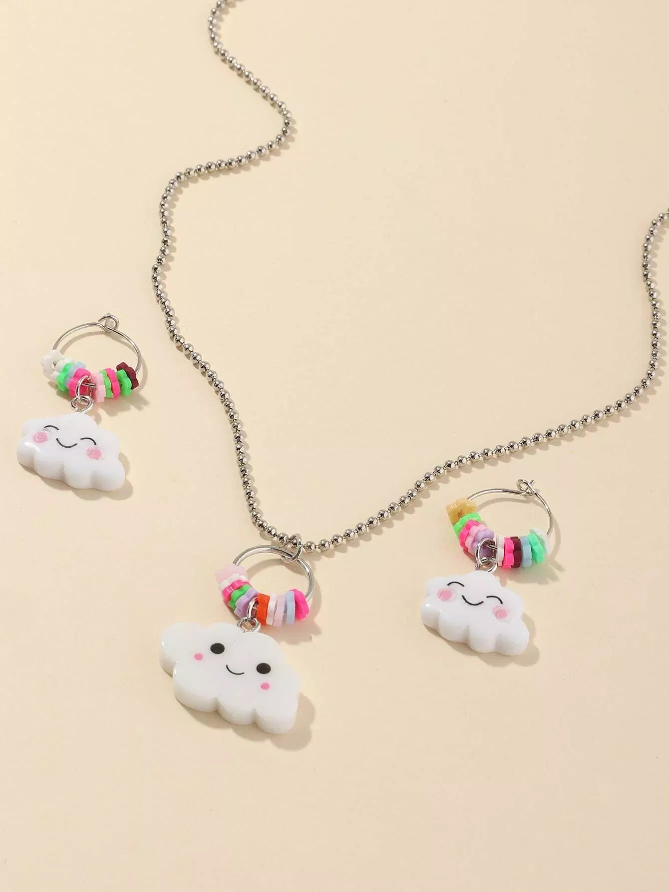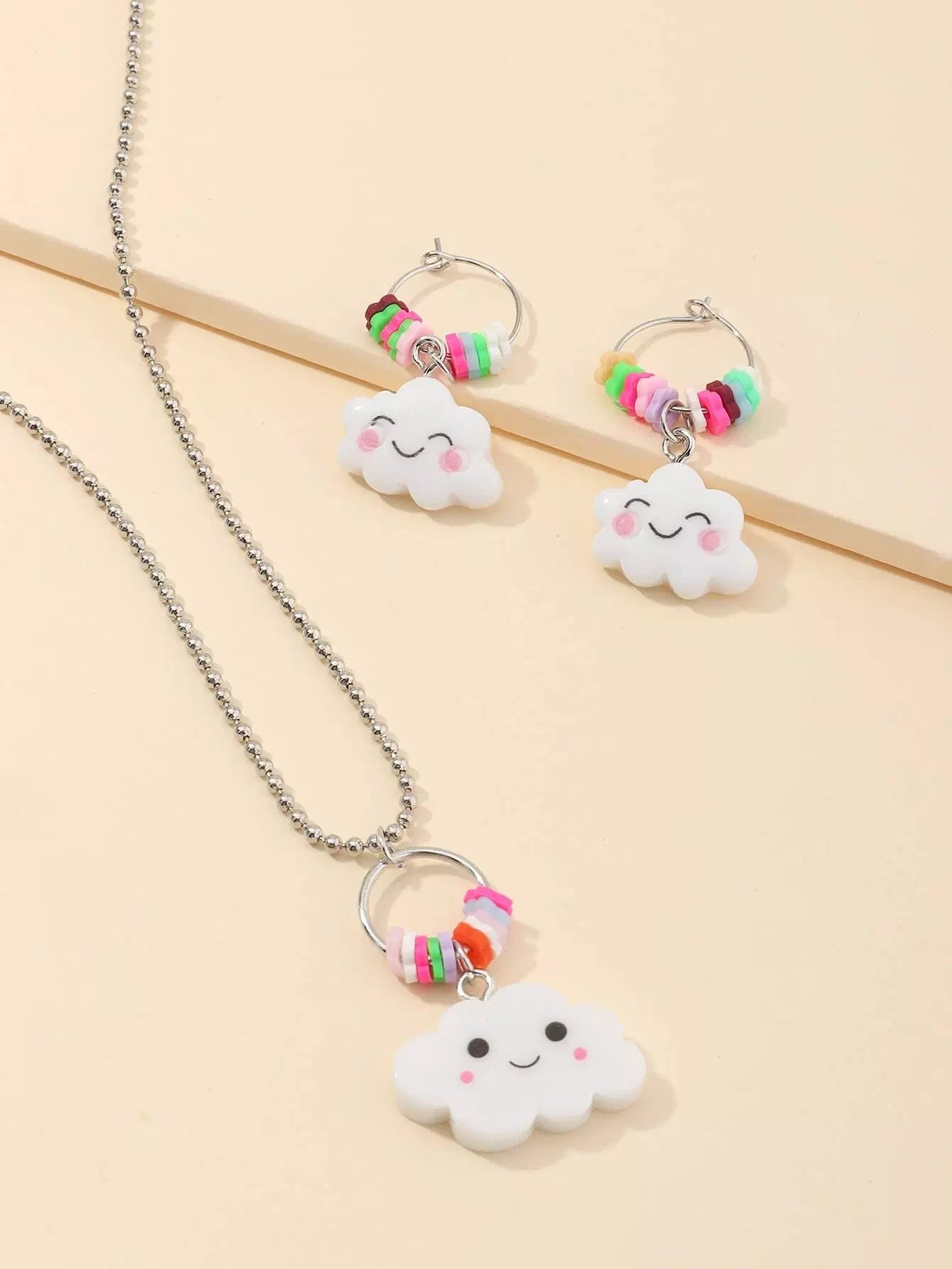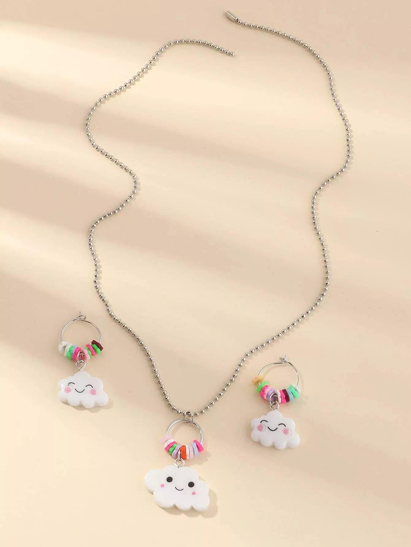 1pc Girls Cartoon Cloud Pendant Necklace & 1pair Earrings