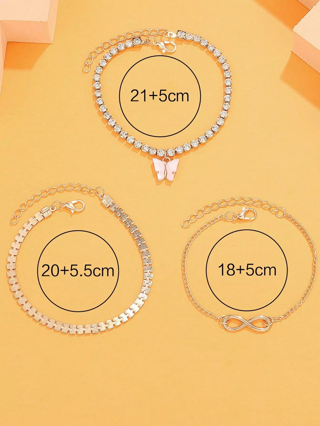 Kids - 3pcs Girls Butterfly Charm Anklet