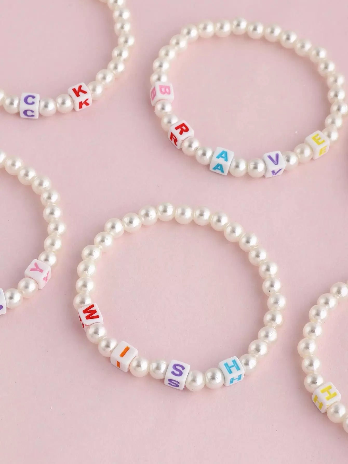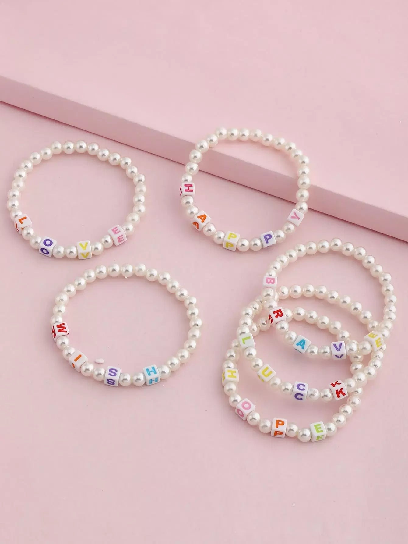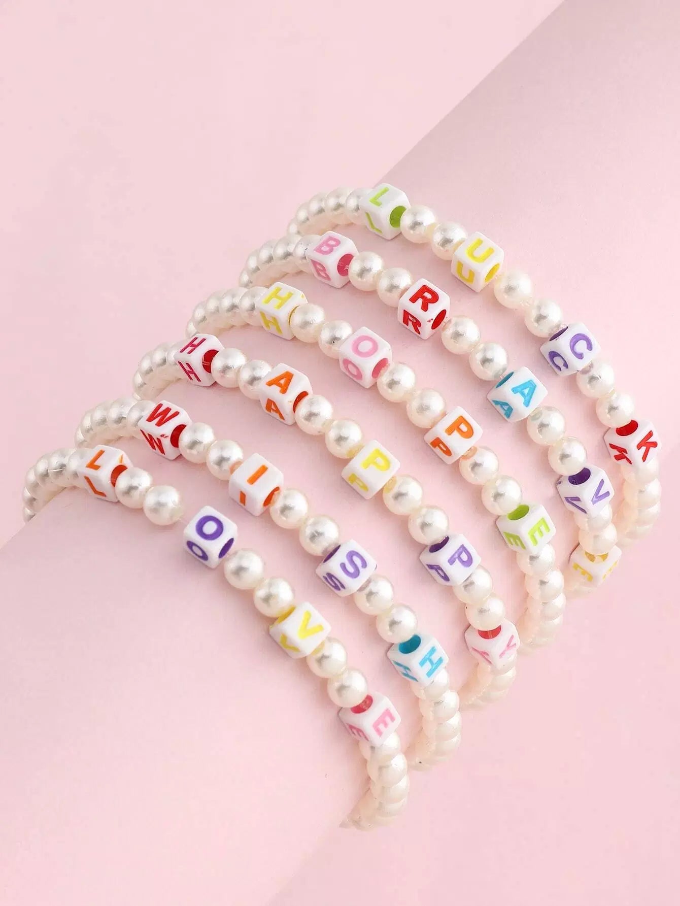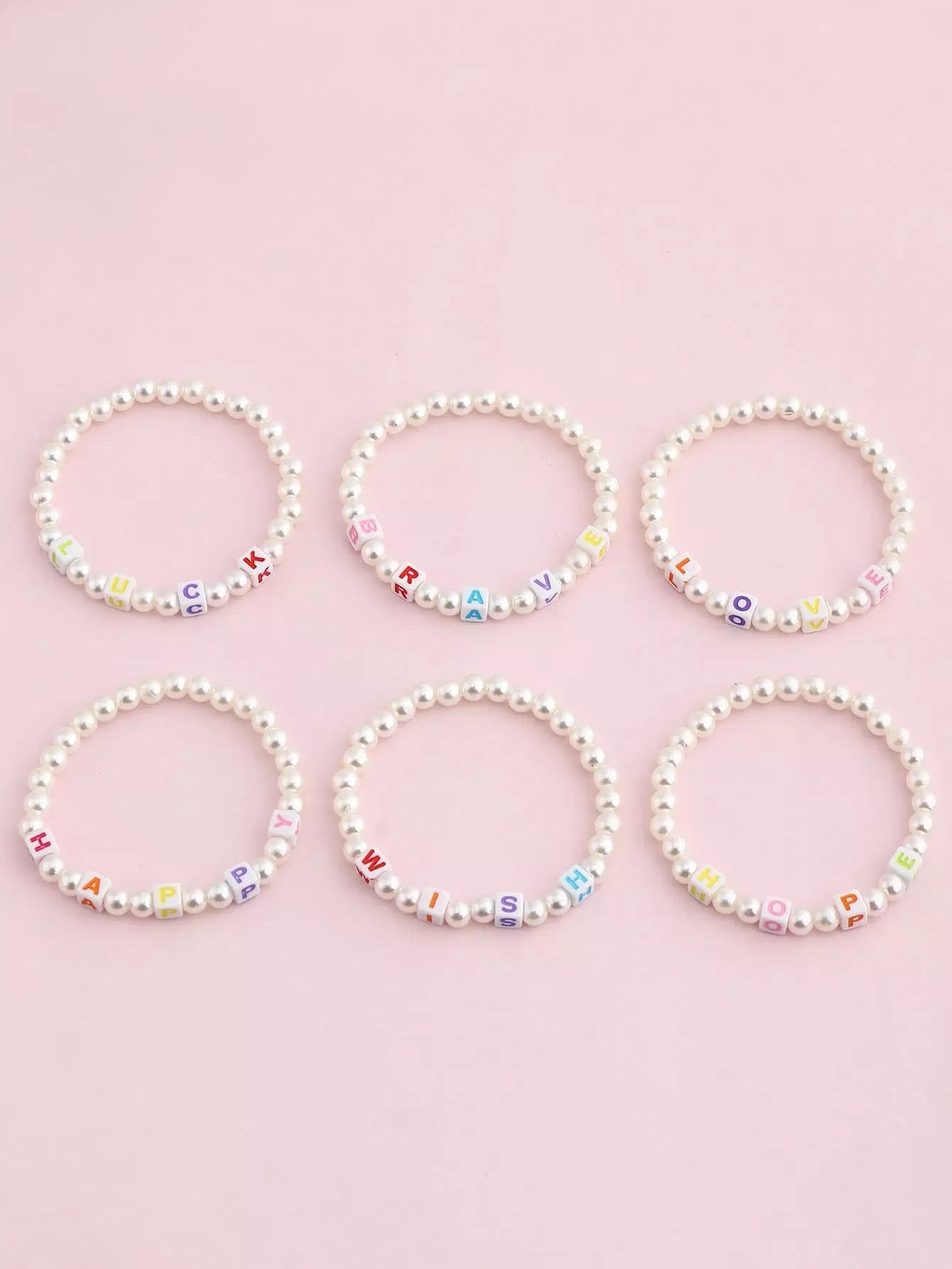 6pcs Toddler Girls Letter Decor Faux Pearl Beaded Bracelet