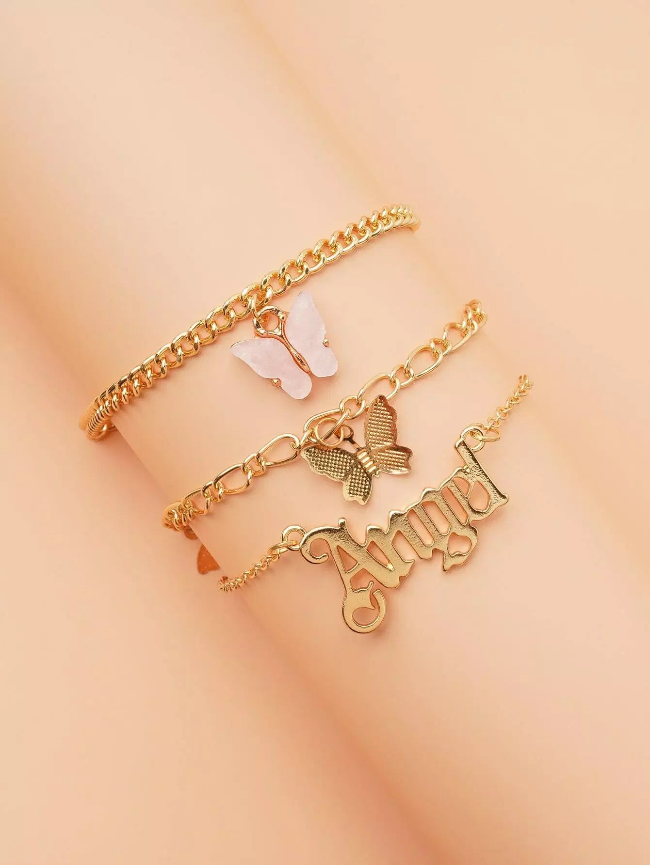 Kids - 3pcs Girls Butterfly Charm Anklet