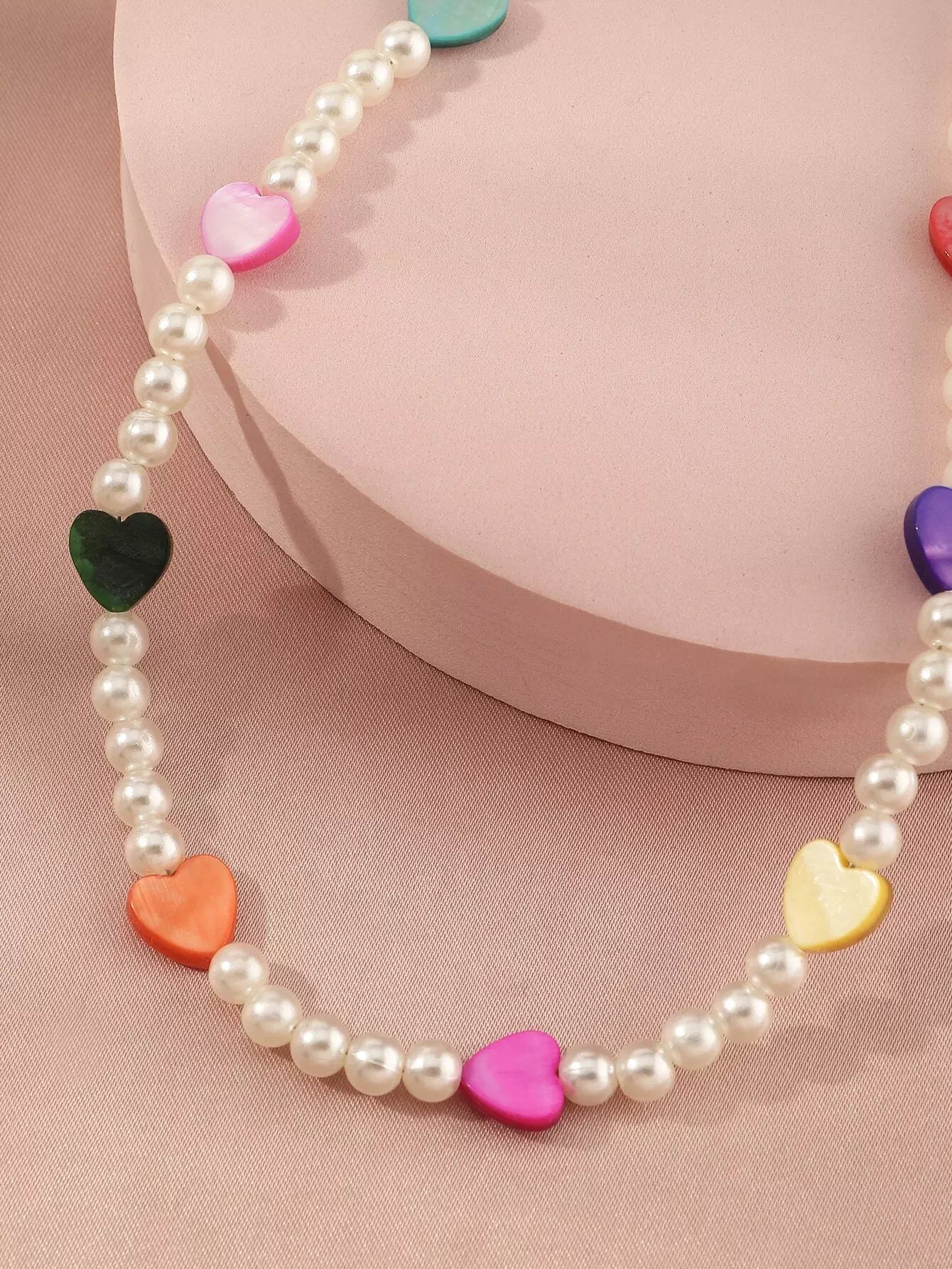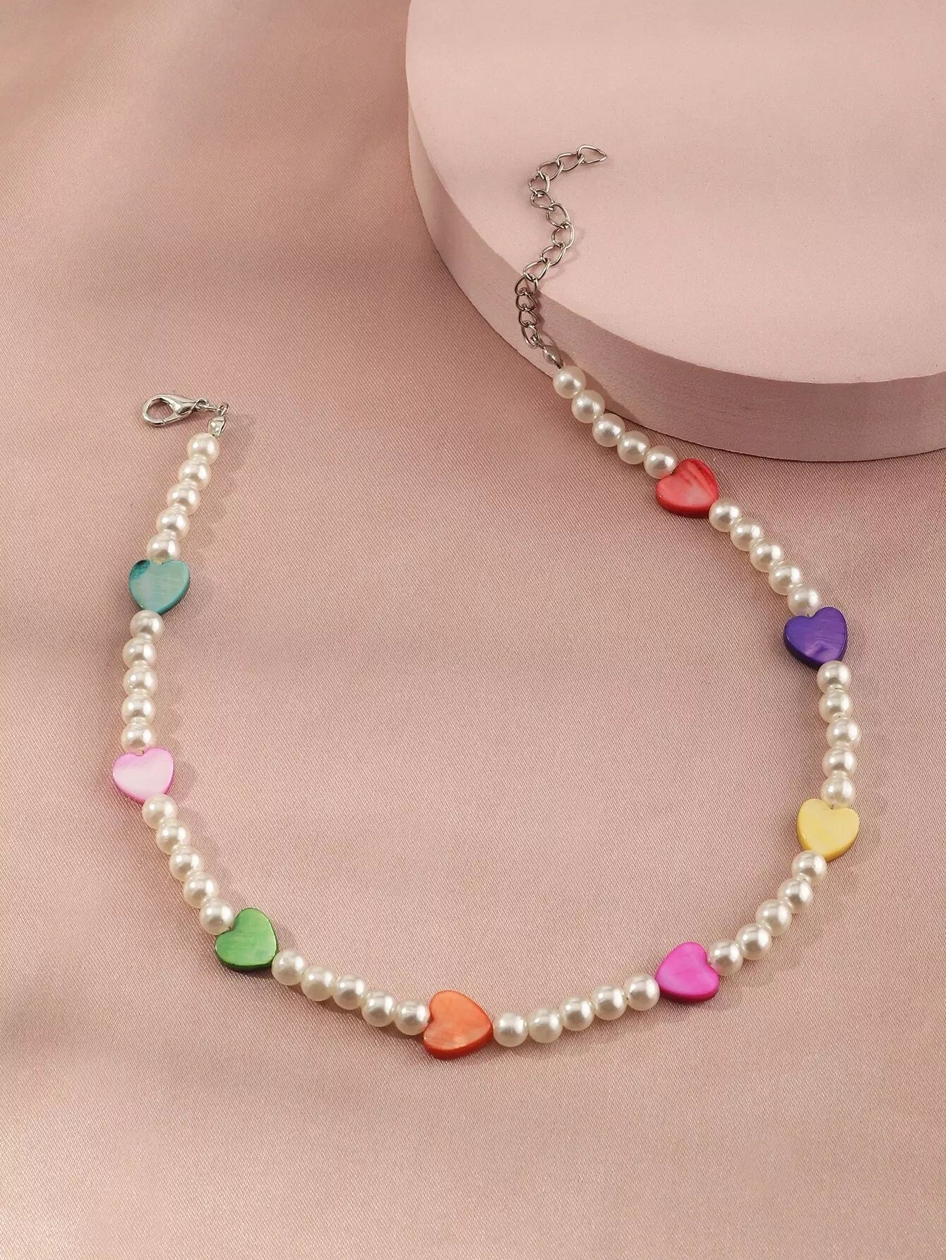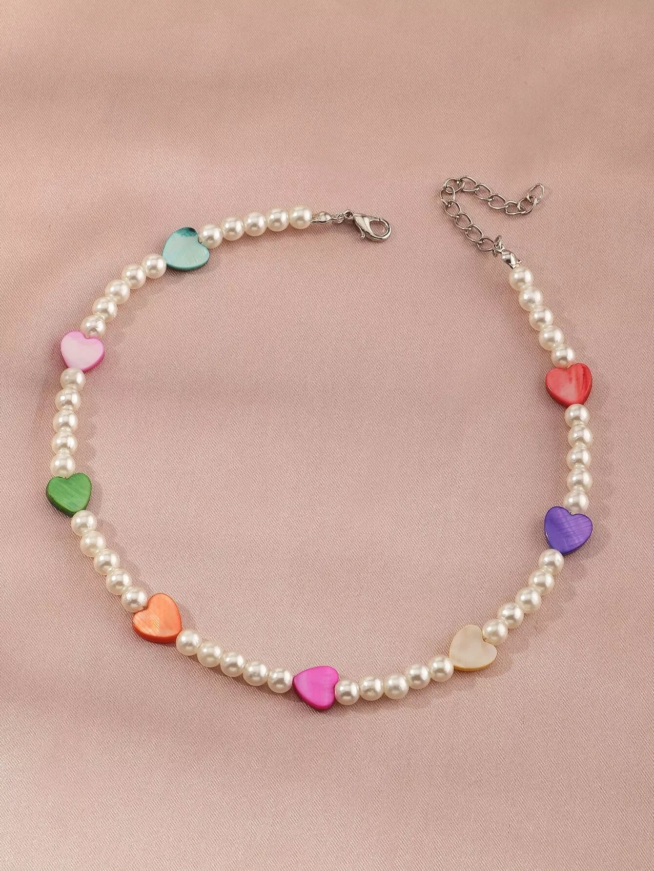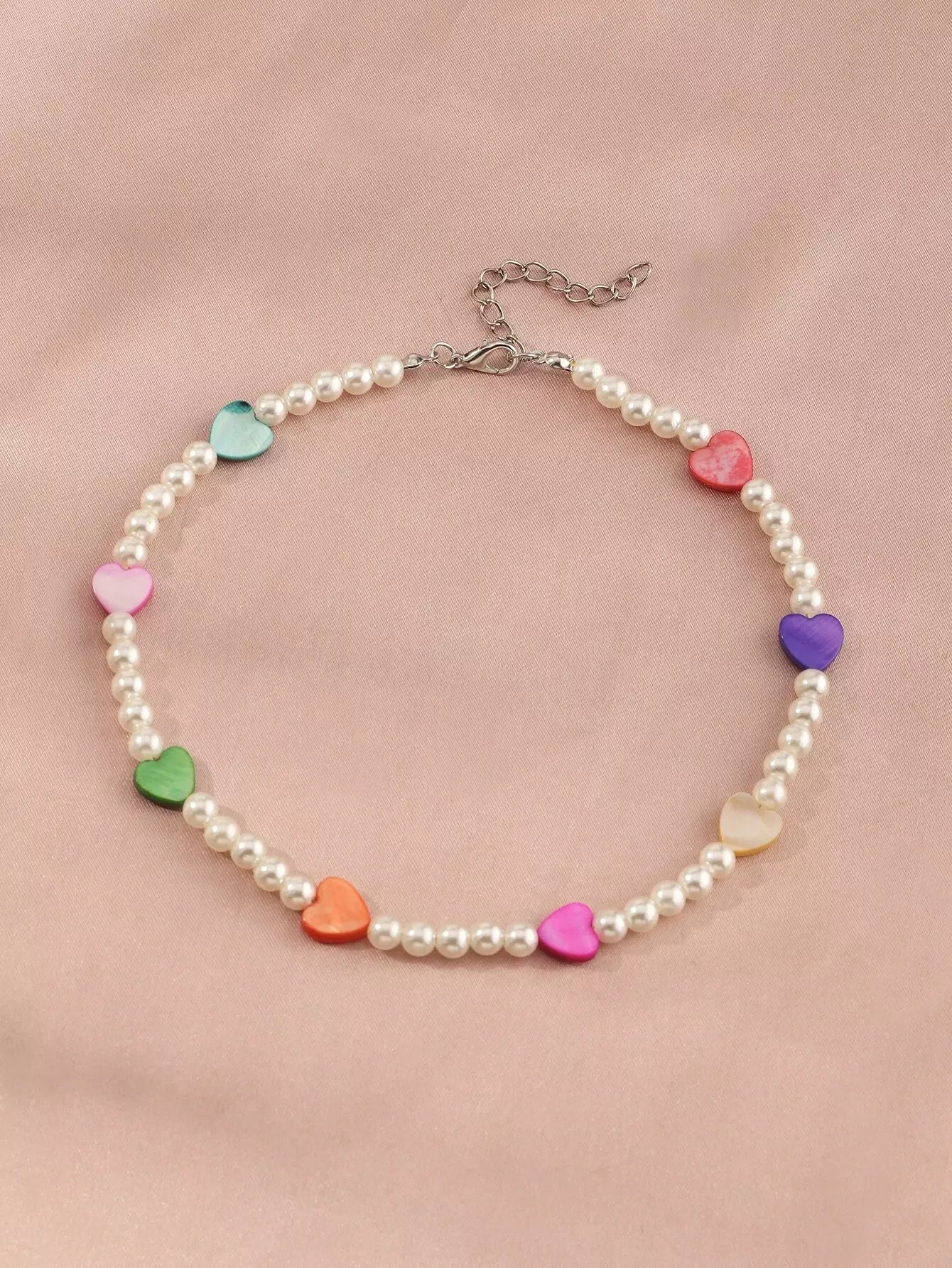 Girls Heart Decor Faux Pearl Beaded Necklace