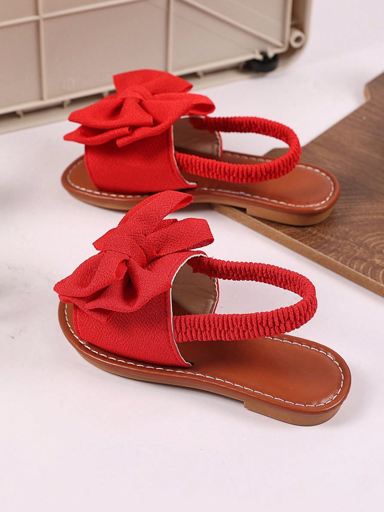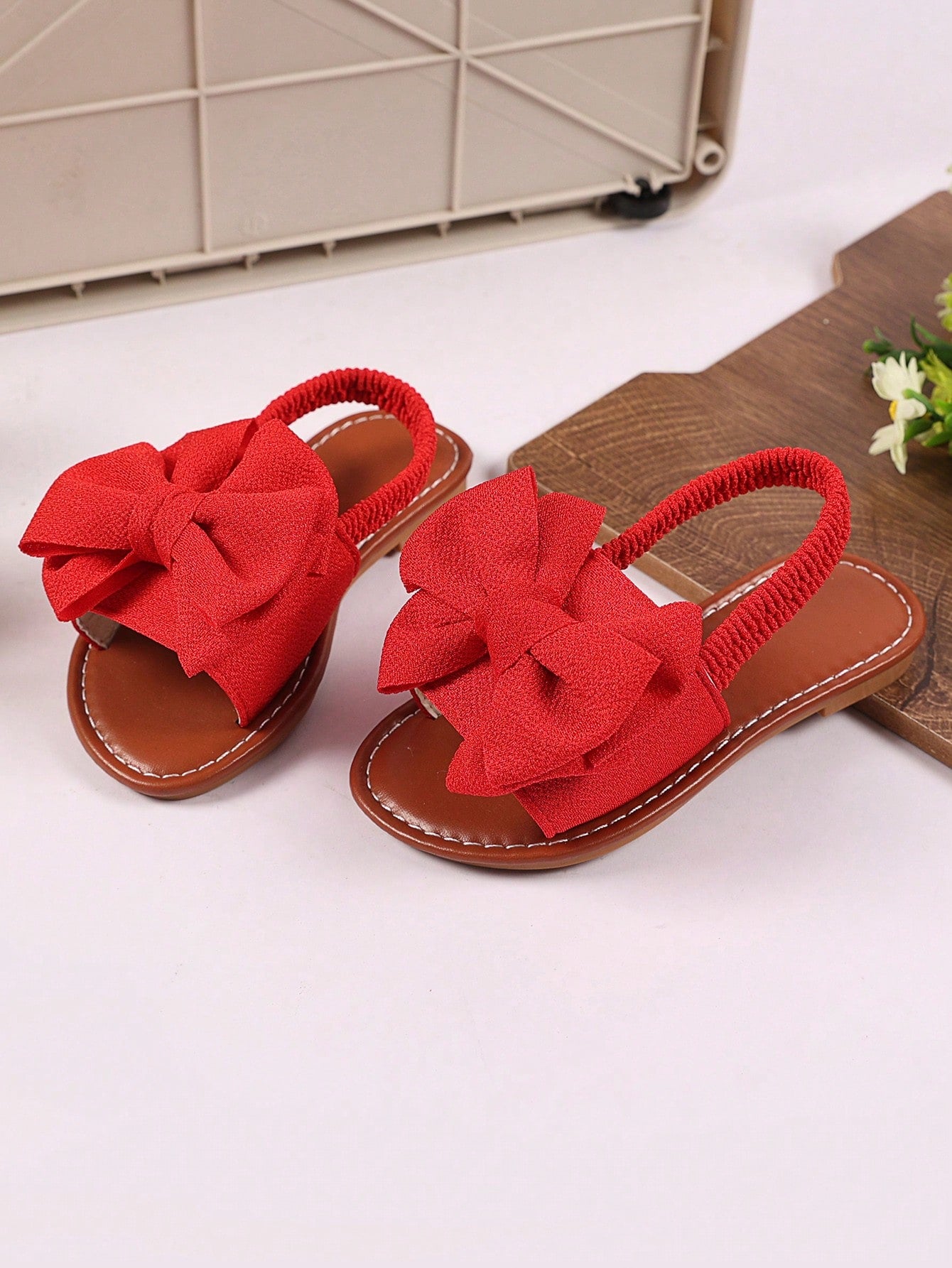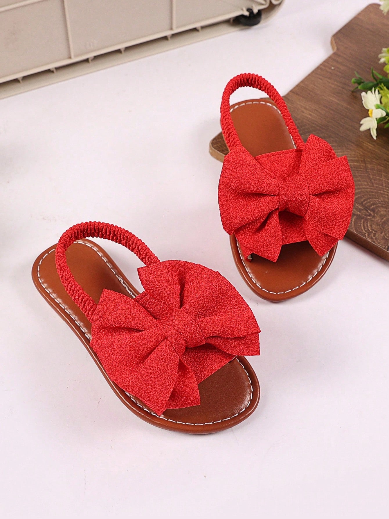 kids 1 Pair Plus Size Toddler/Little Girls Red Flat Sandals With Woven Butterfly Decor