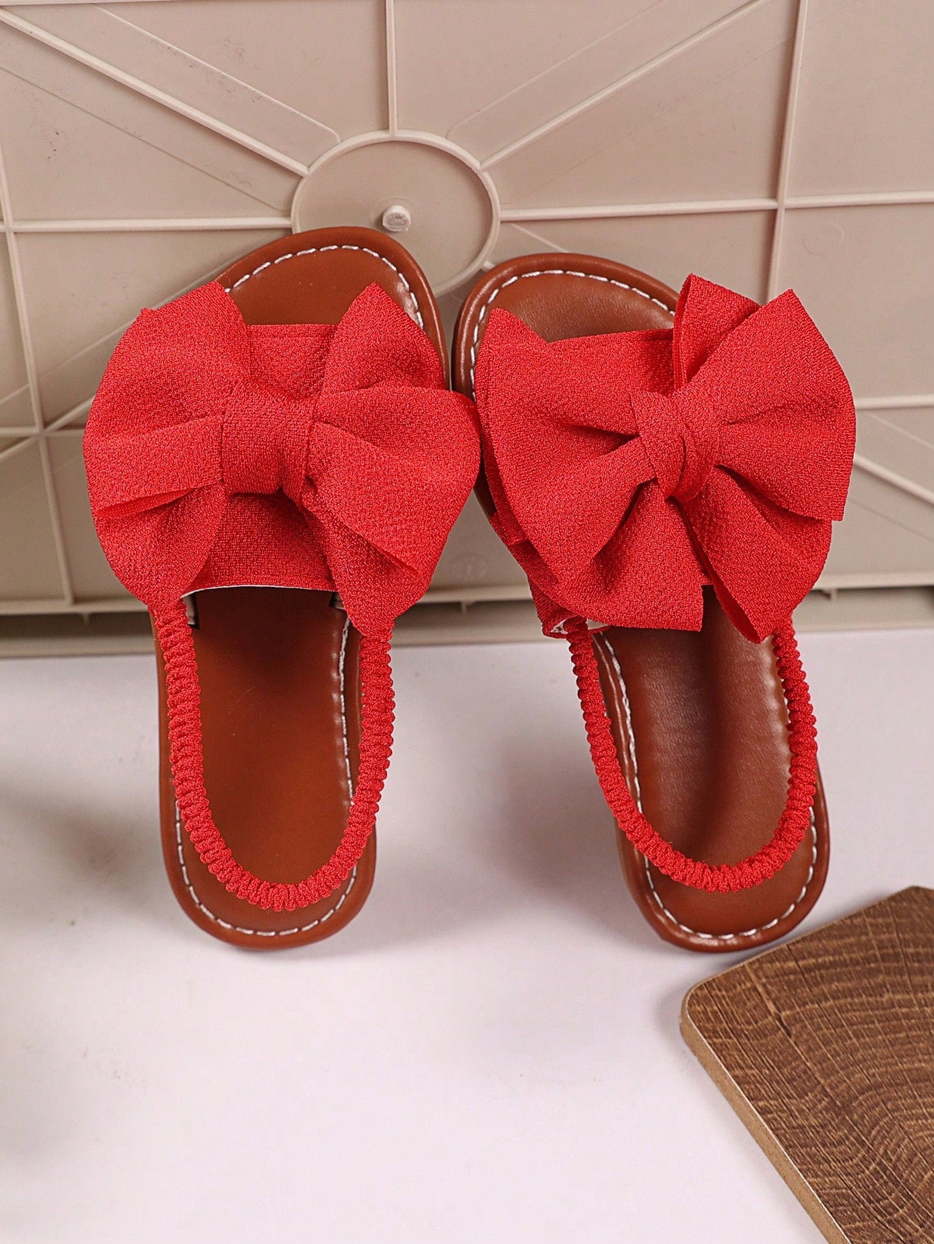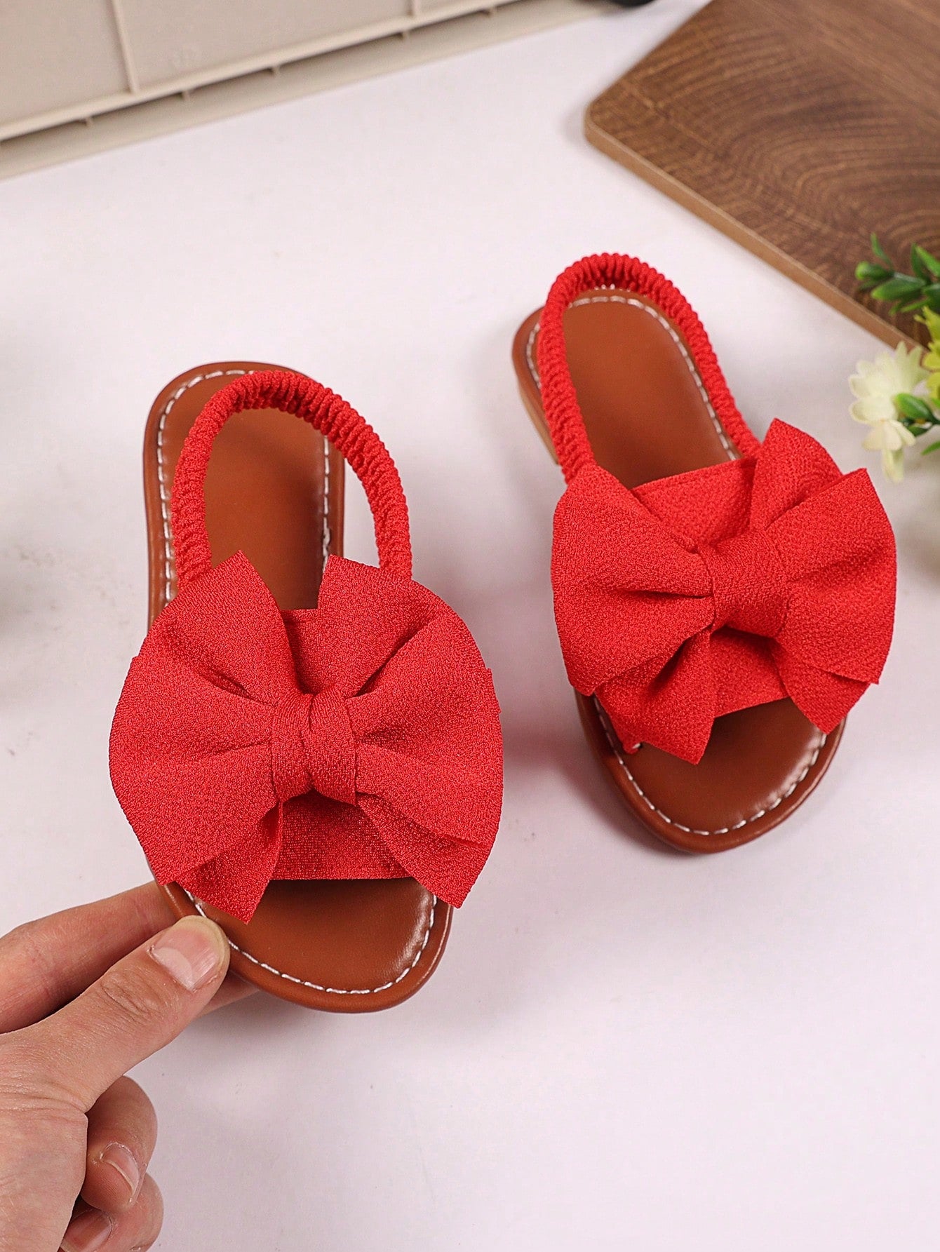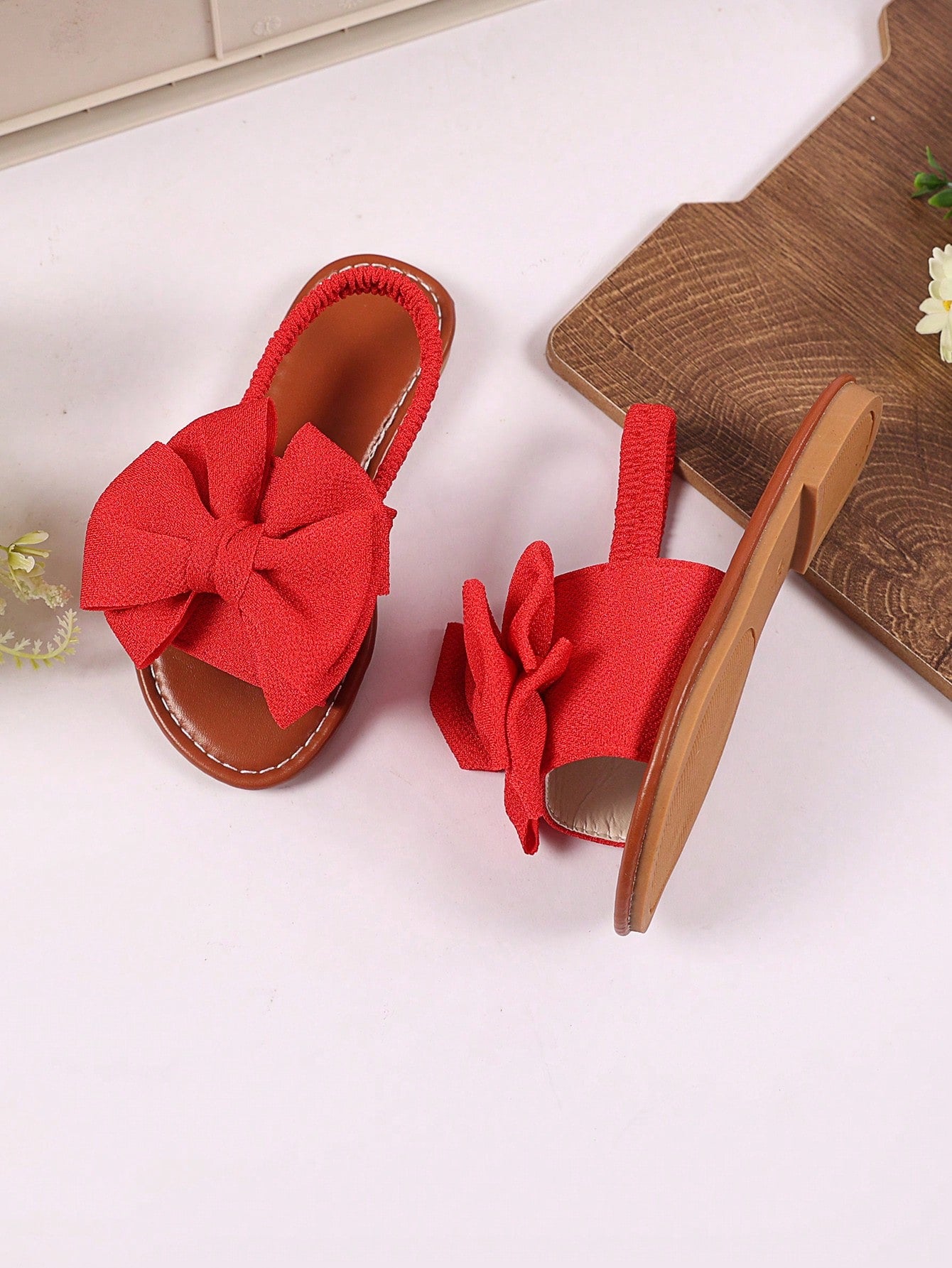 kids 1 Pair Plus Size Toddler/Little Girls Red Flat Sandals With Woven Butterfly Decor