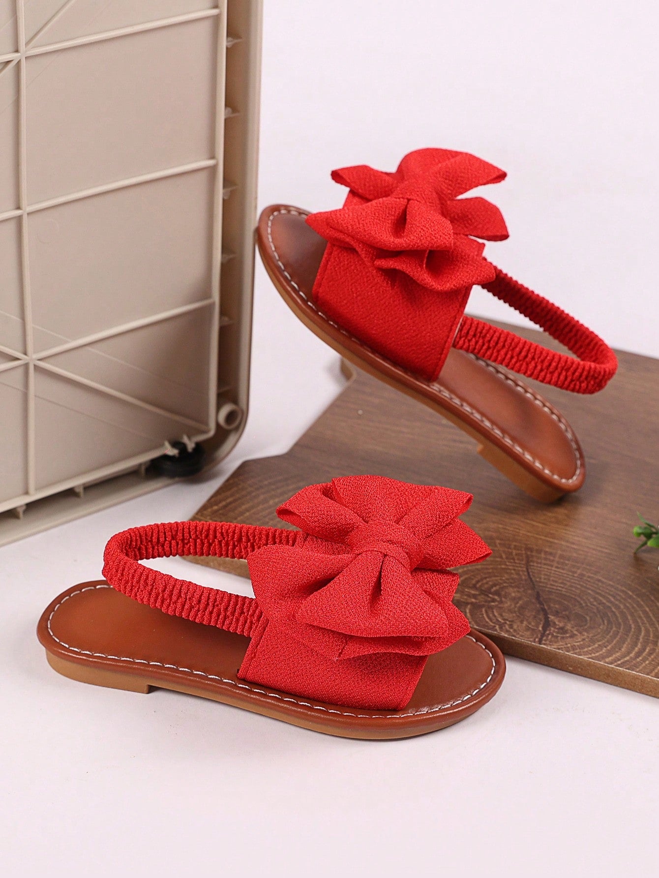 1 Pair Plus Size Toddler/Little Girls Red Flat Sandals With Woven Butterfly Decor