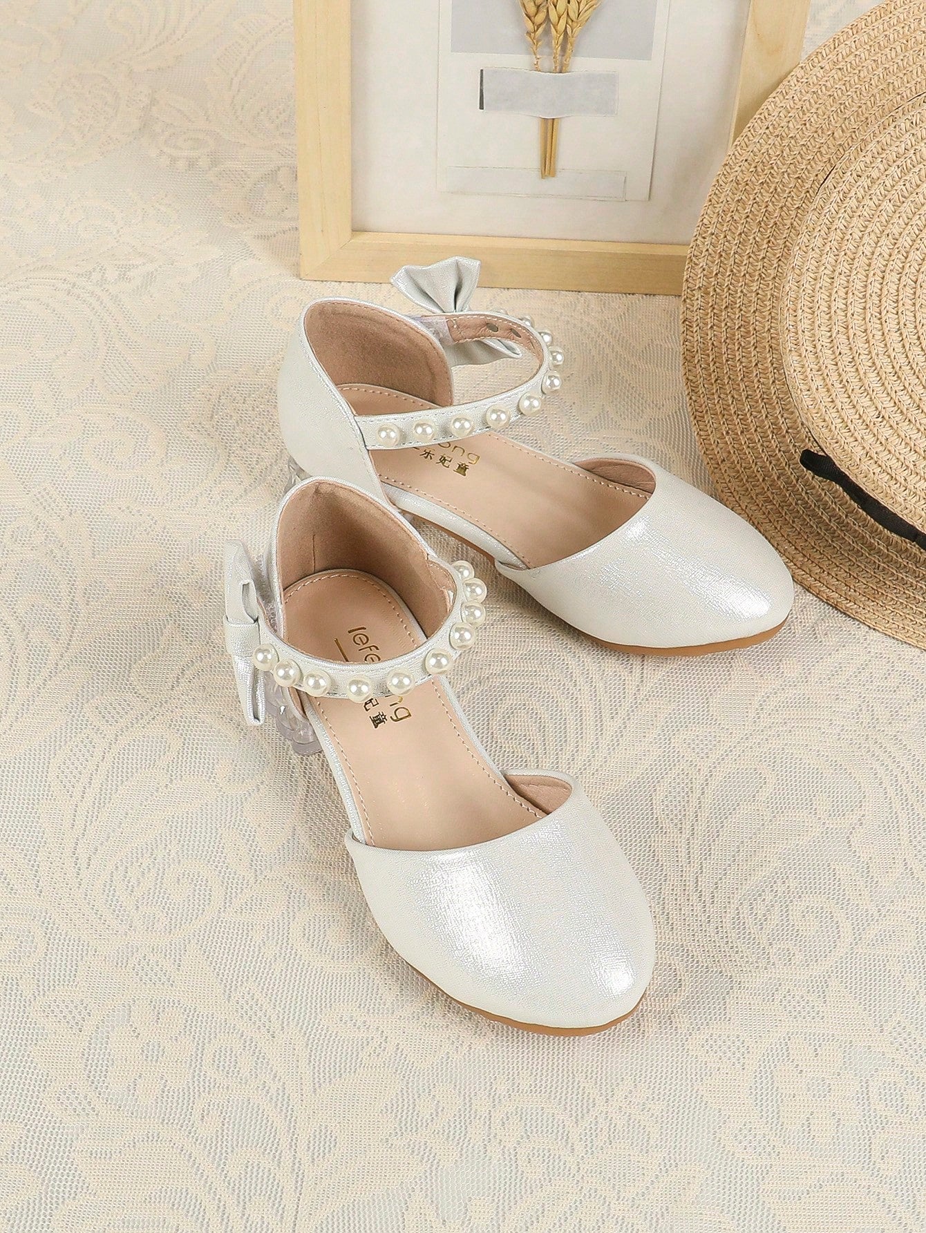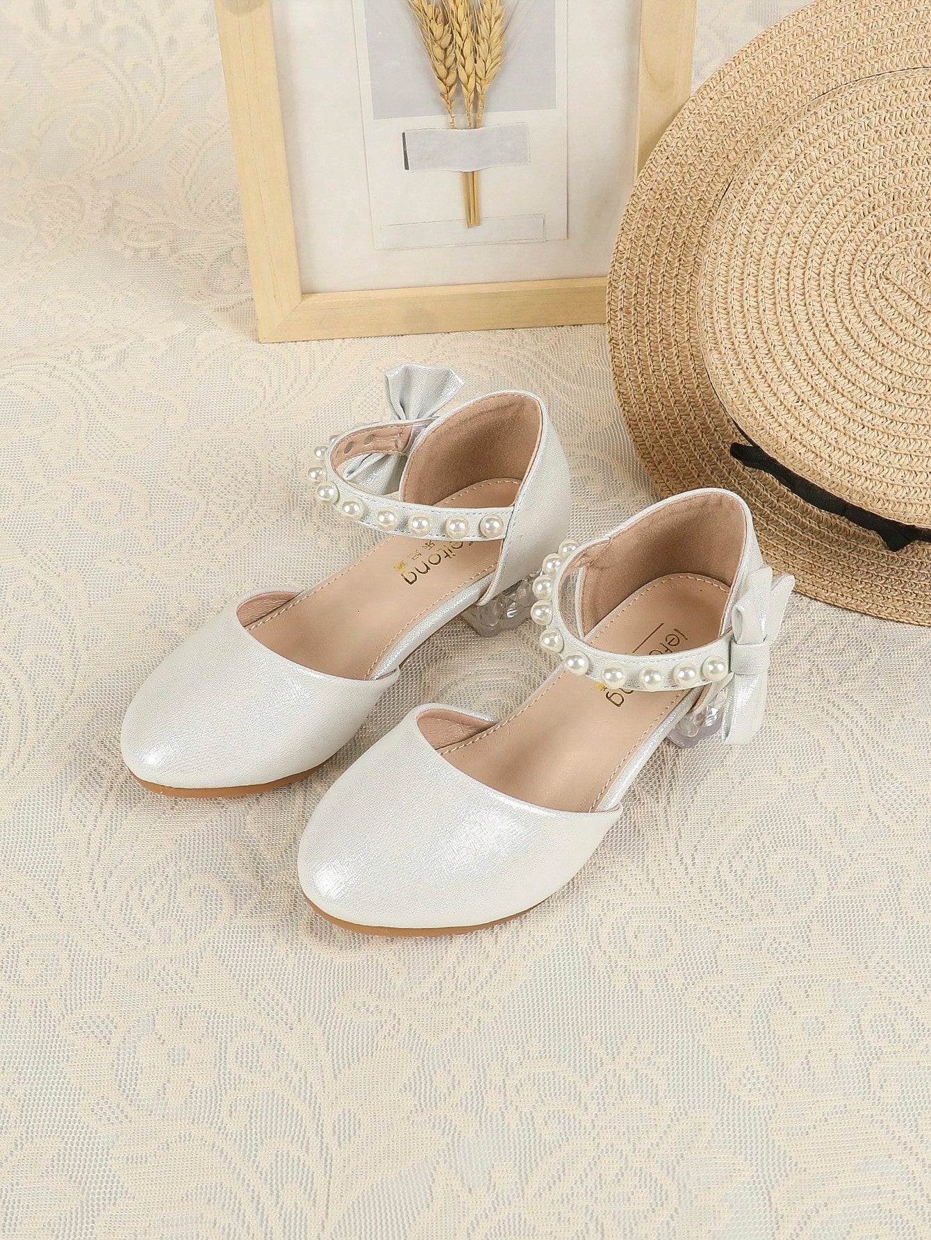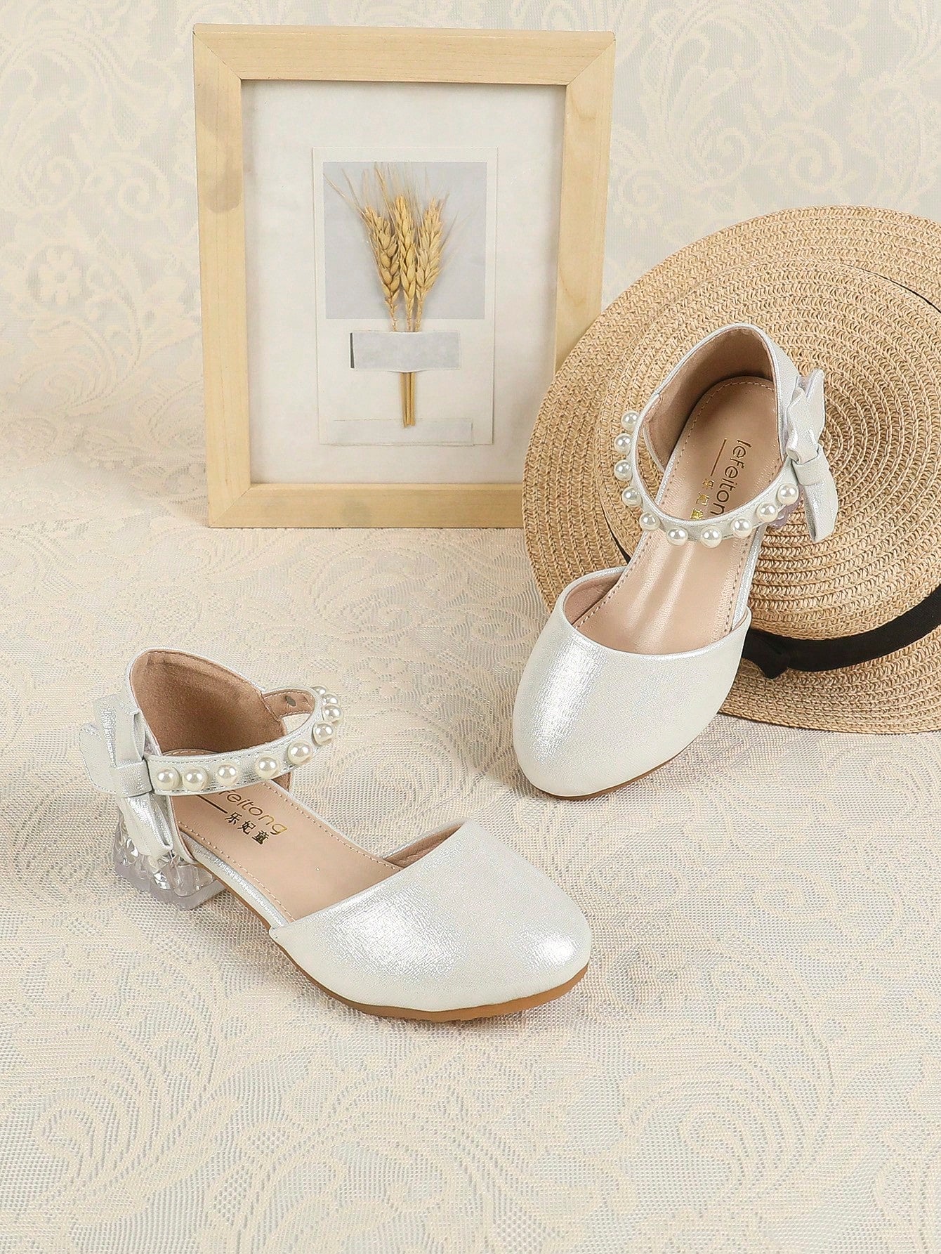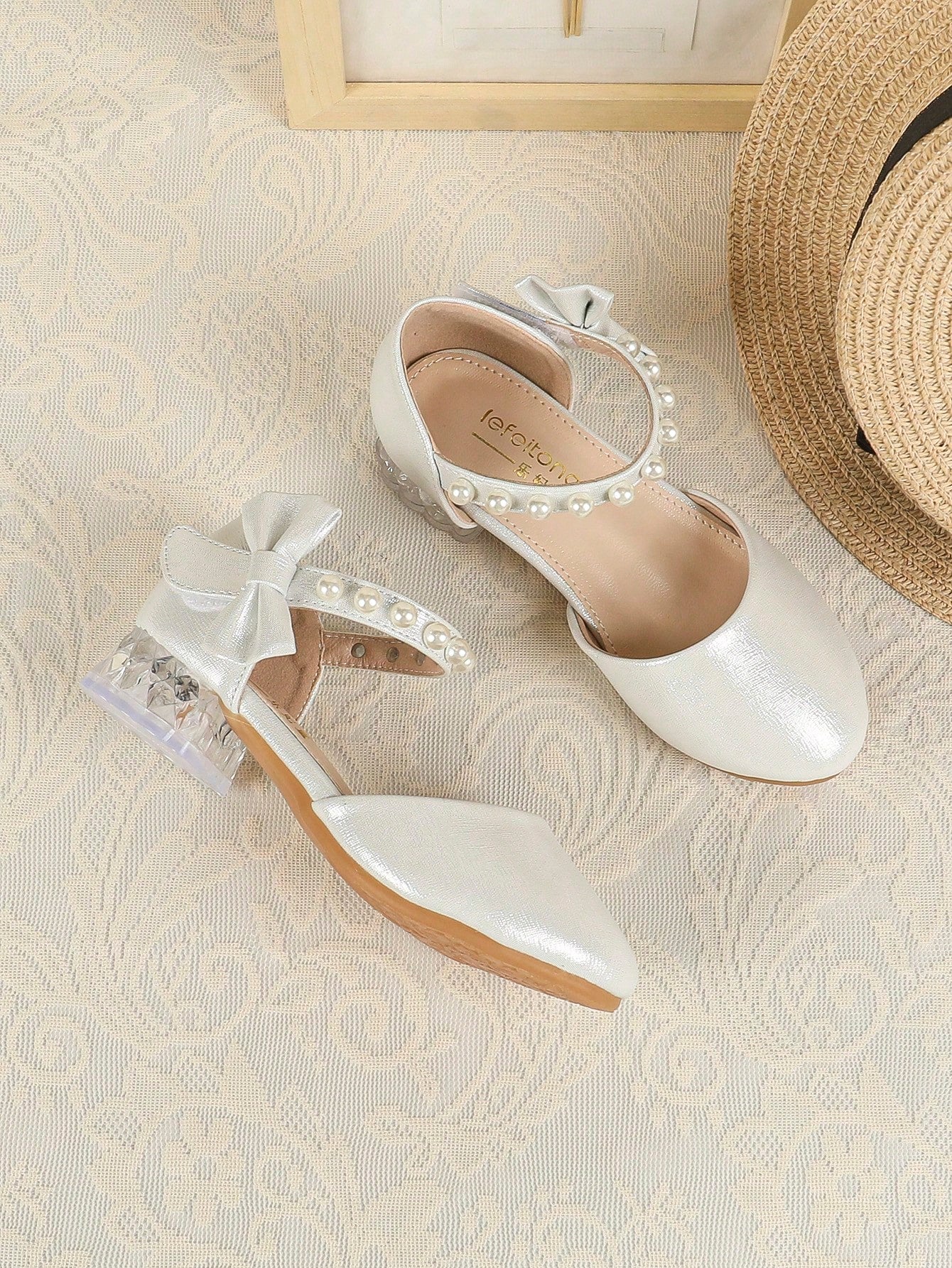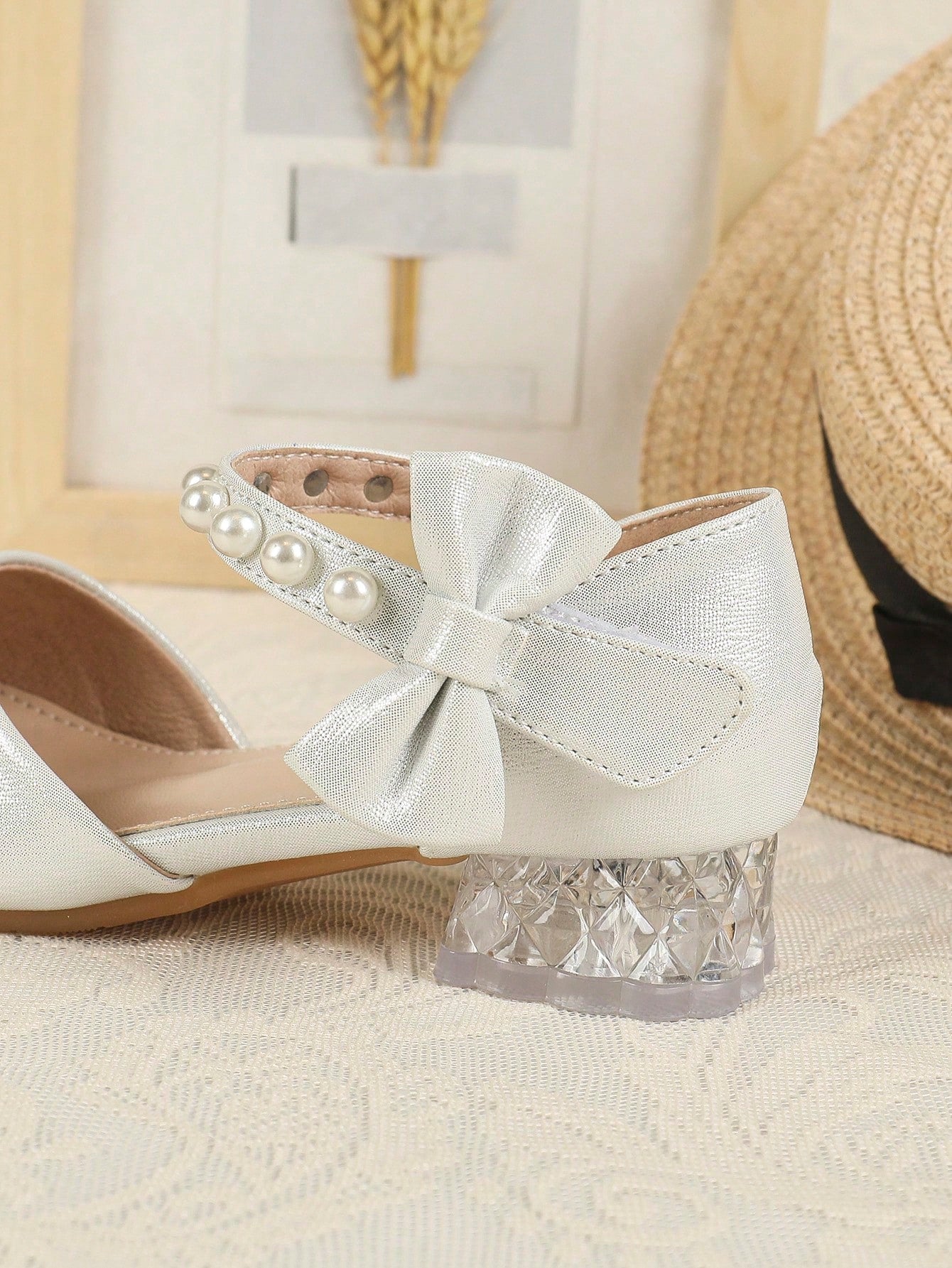 kids Girls" High Heels Crystal Heels Butterfly & Pearl Decor Hollow Out Sandals