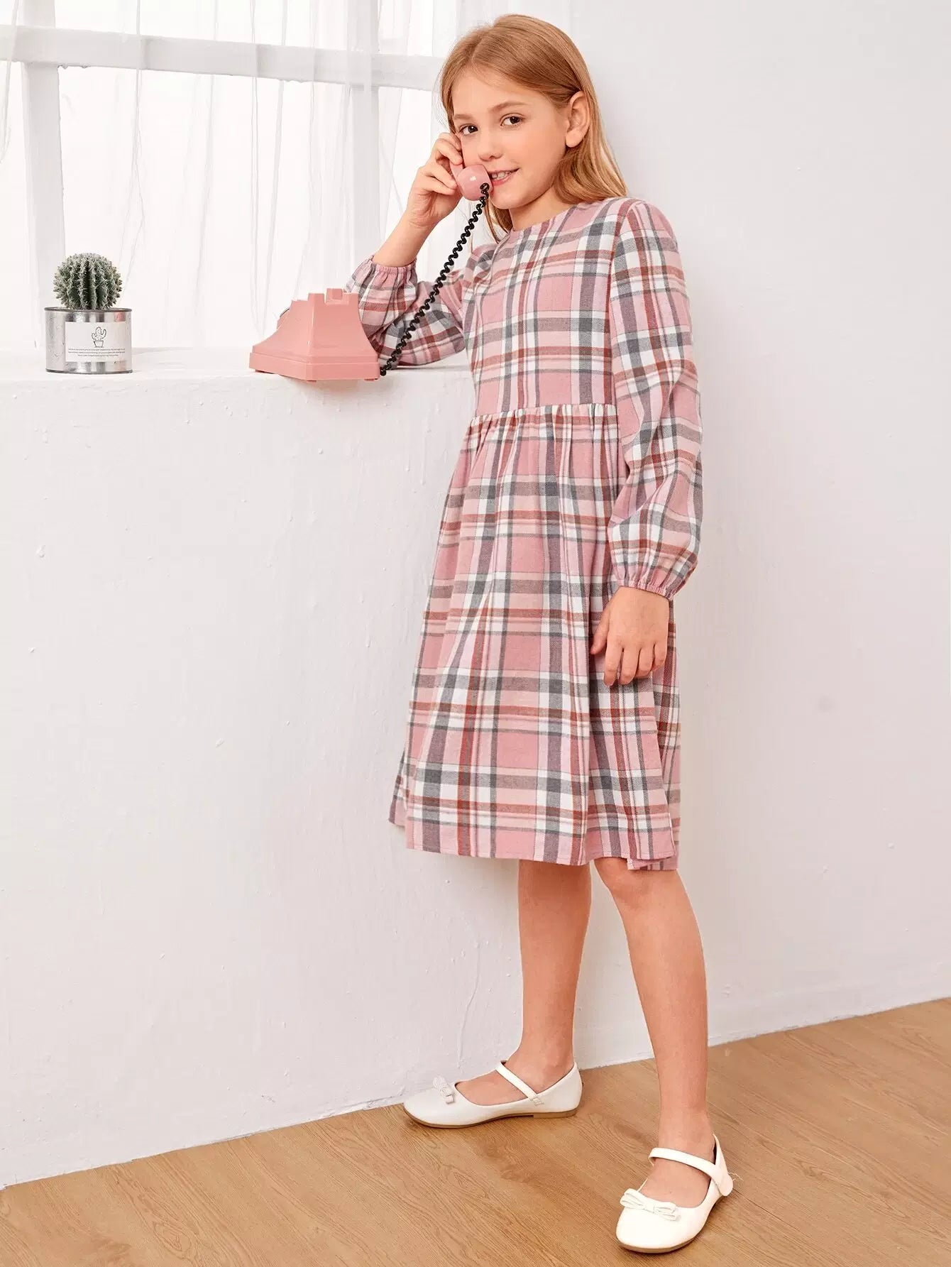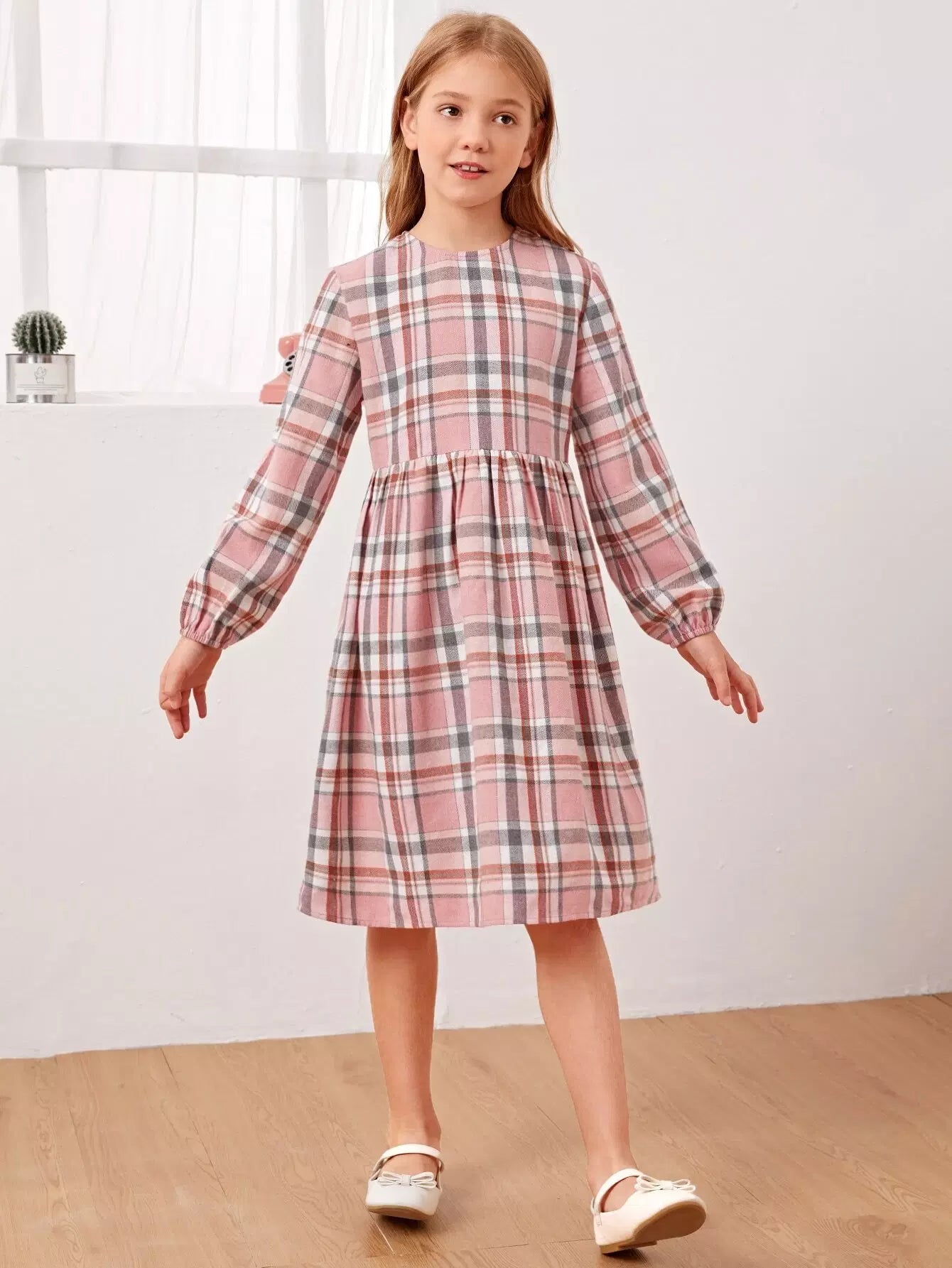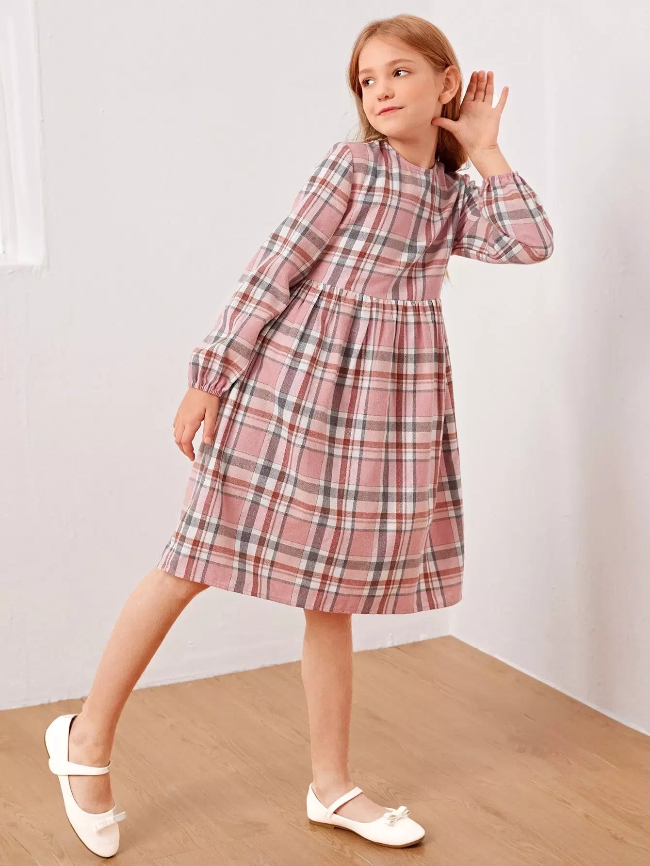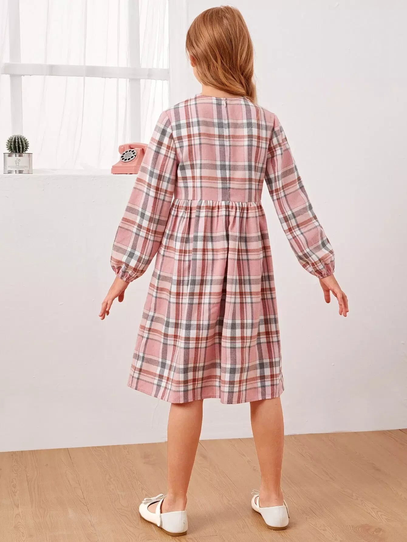 Girls Plaid Zip Back Dress