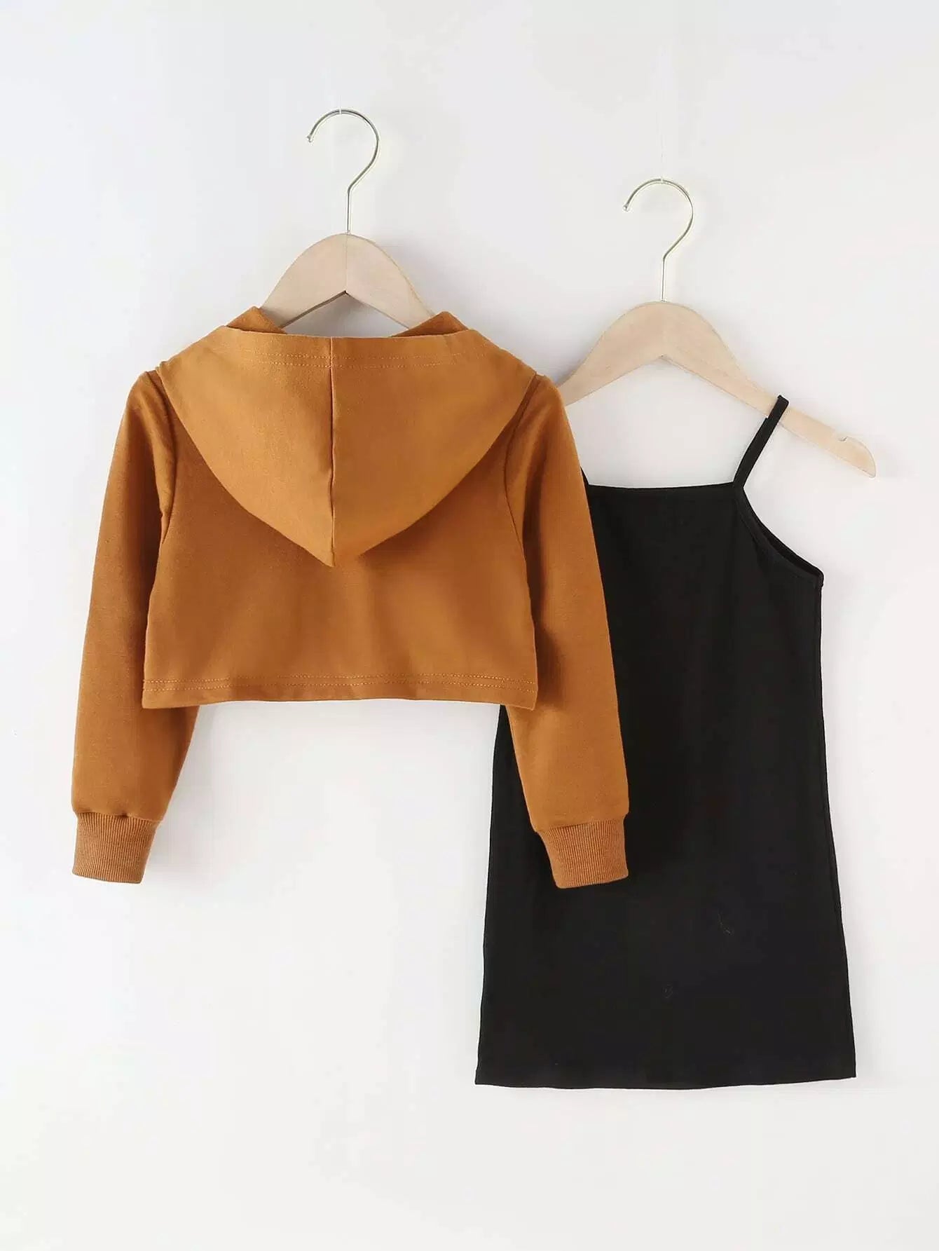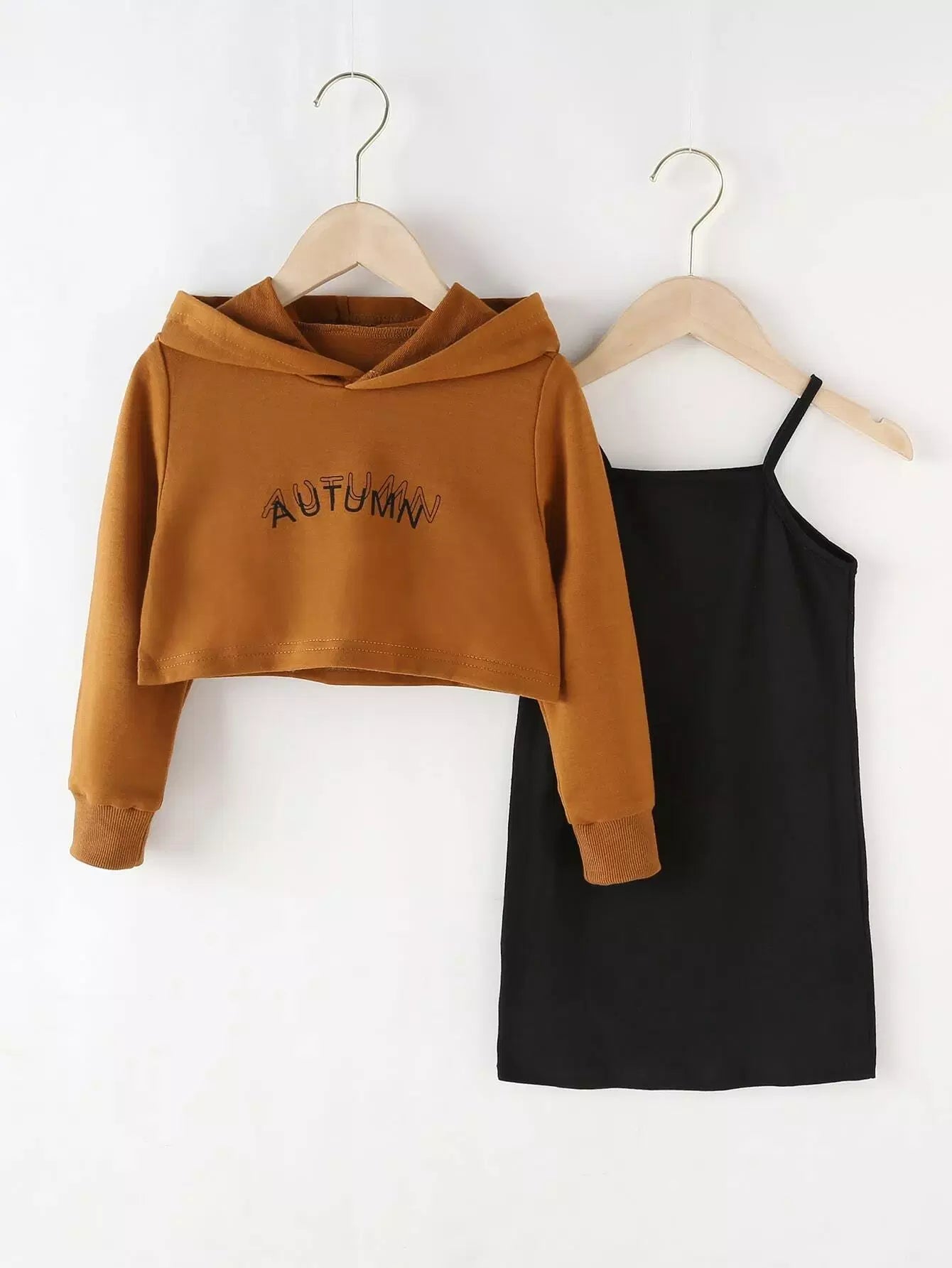 Toddler Girls Letter Graphic Hoodie And Solid Cami Dress