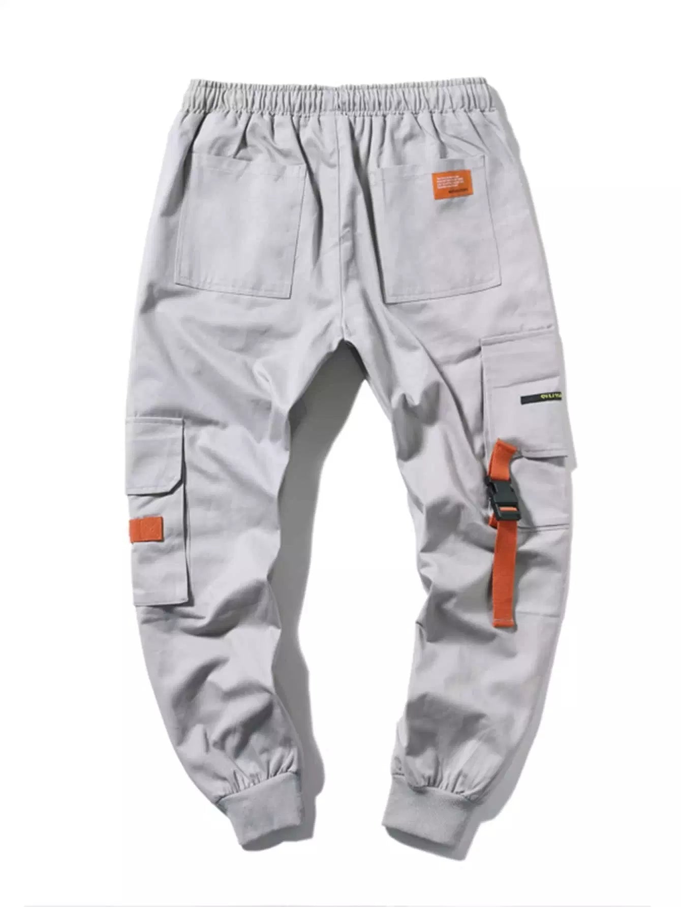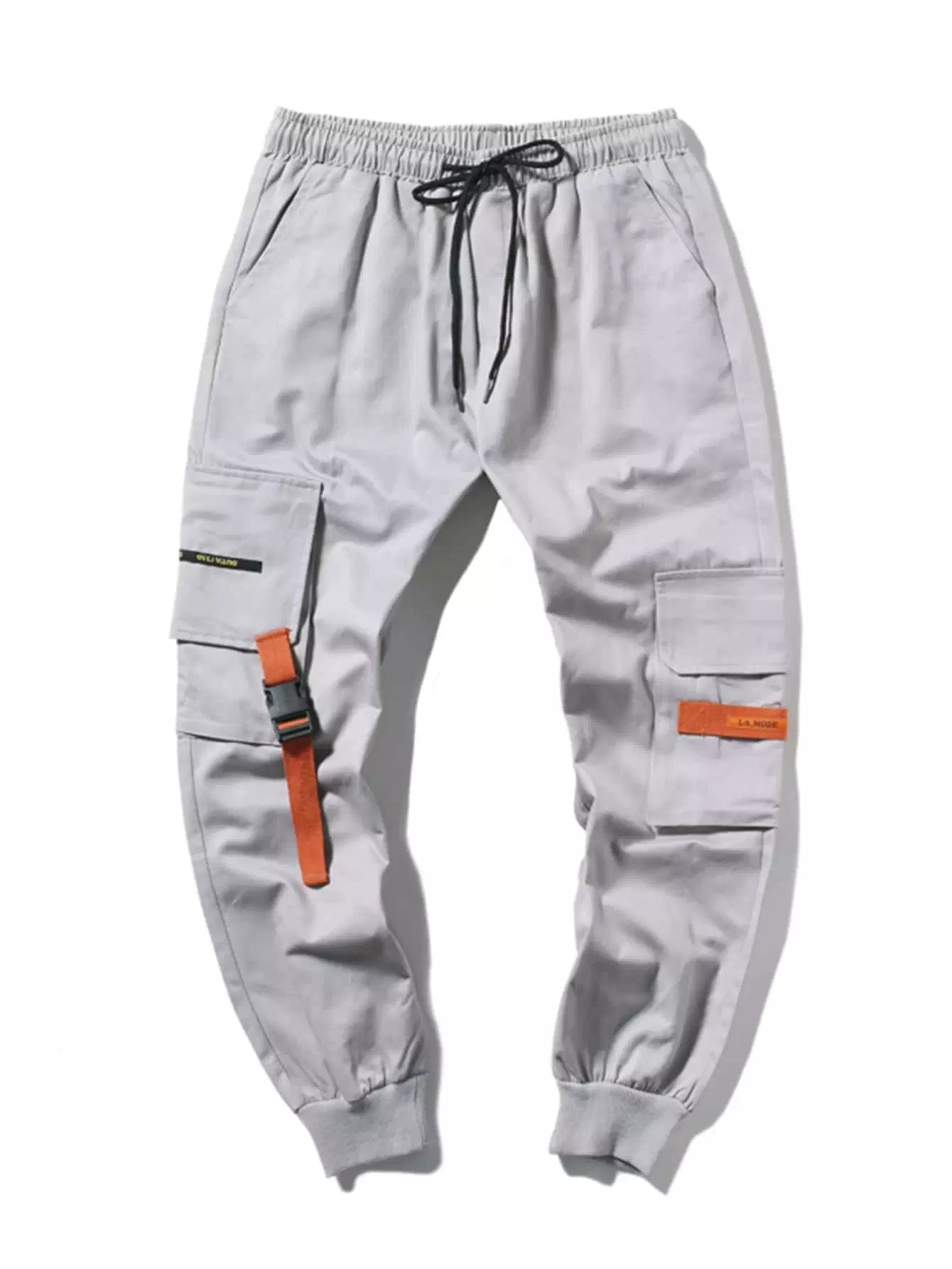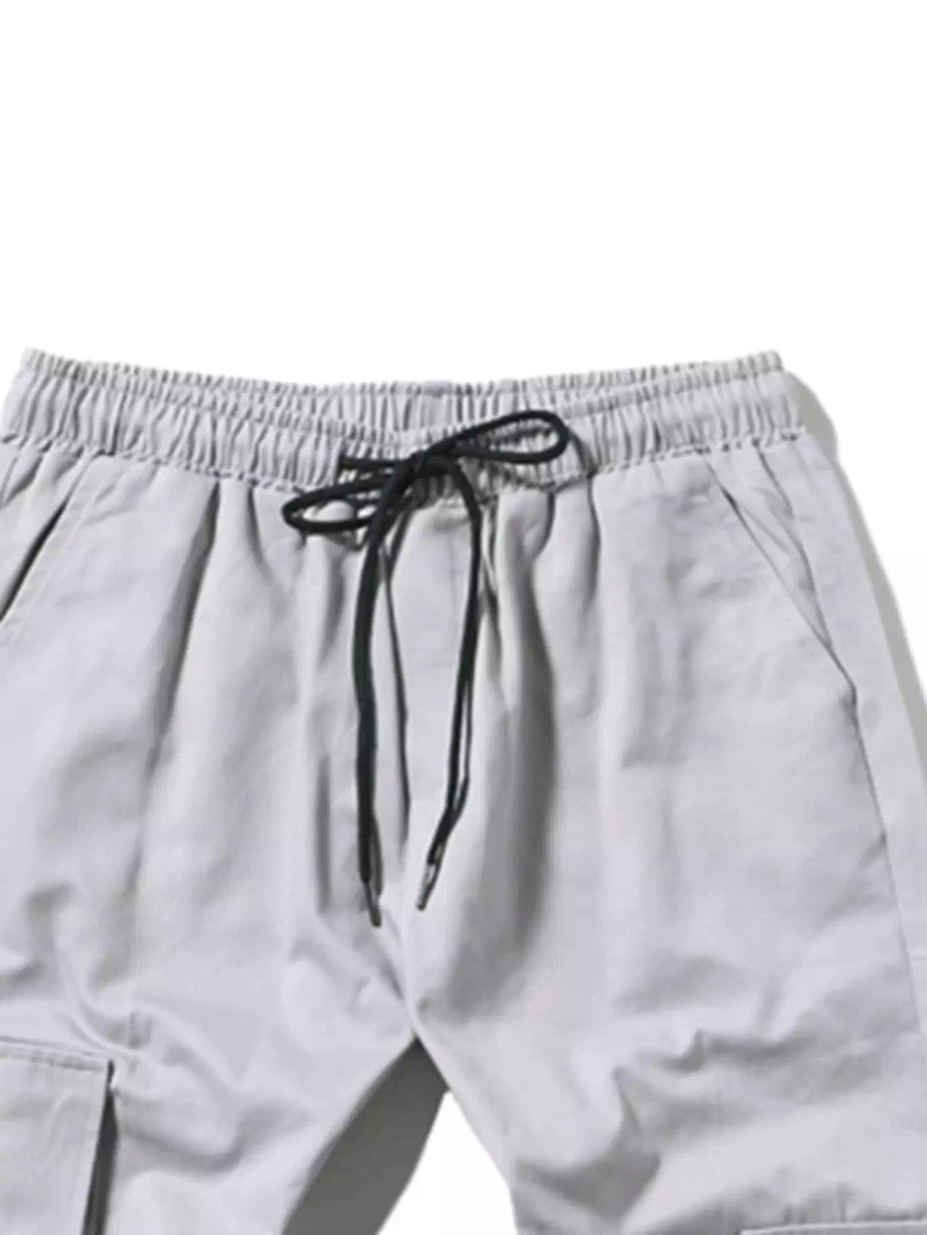 Men Buckle Ribbon Drawstring Waist Cargo Pants