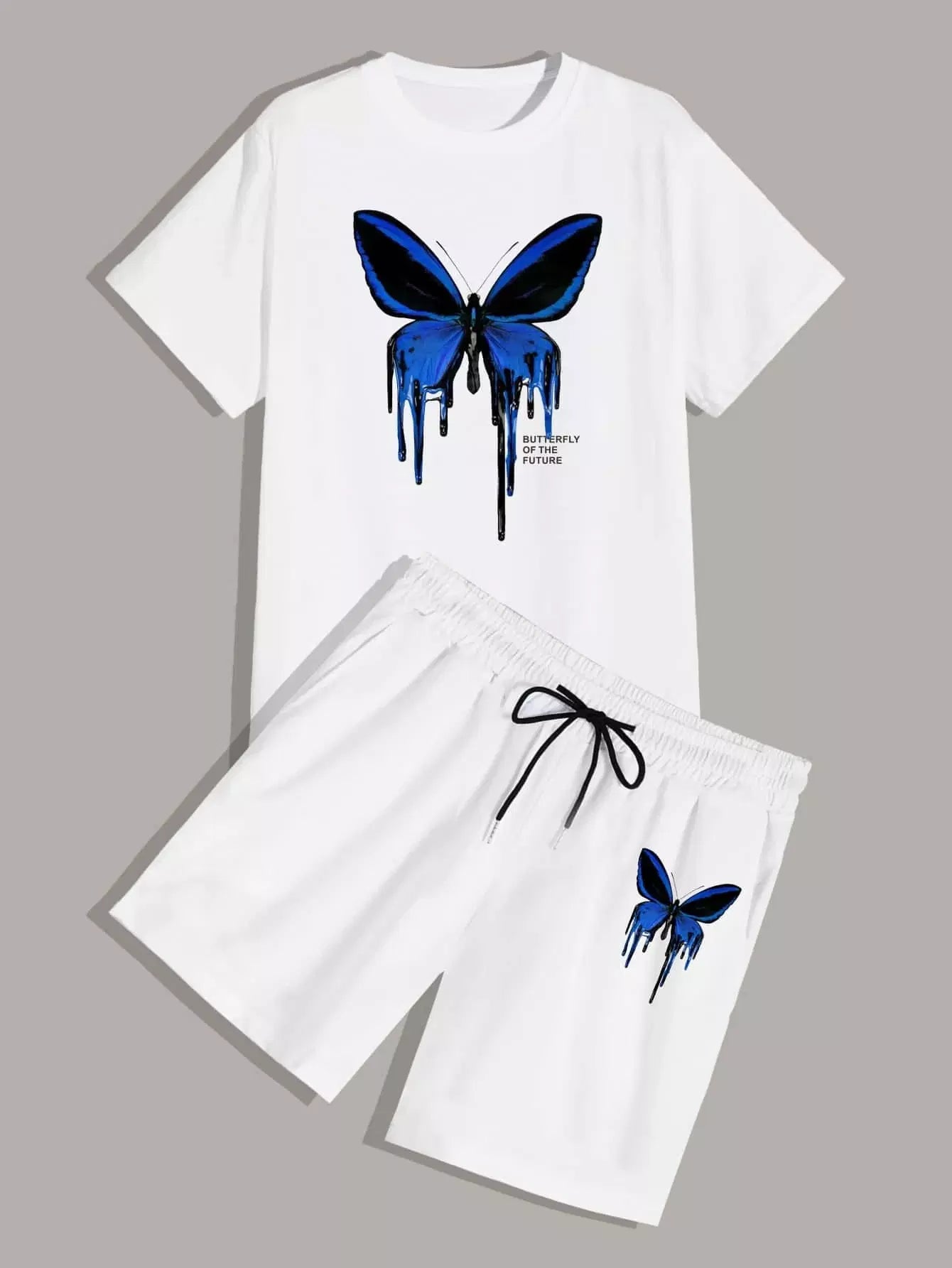 Men Butterfly And Letter Graphic Tee With Drawstring Waist Shorts