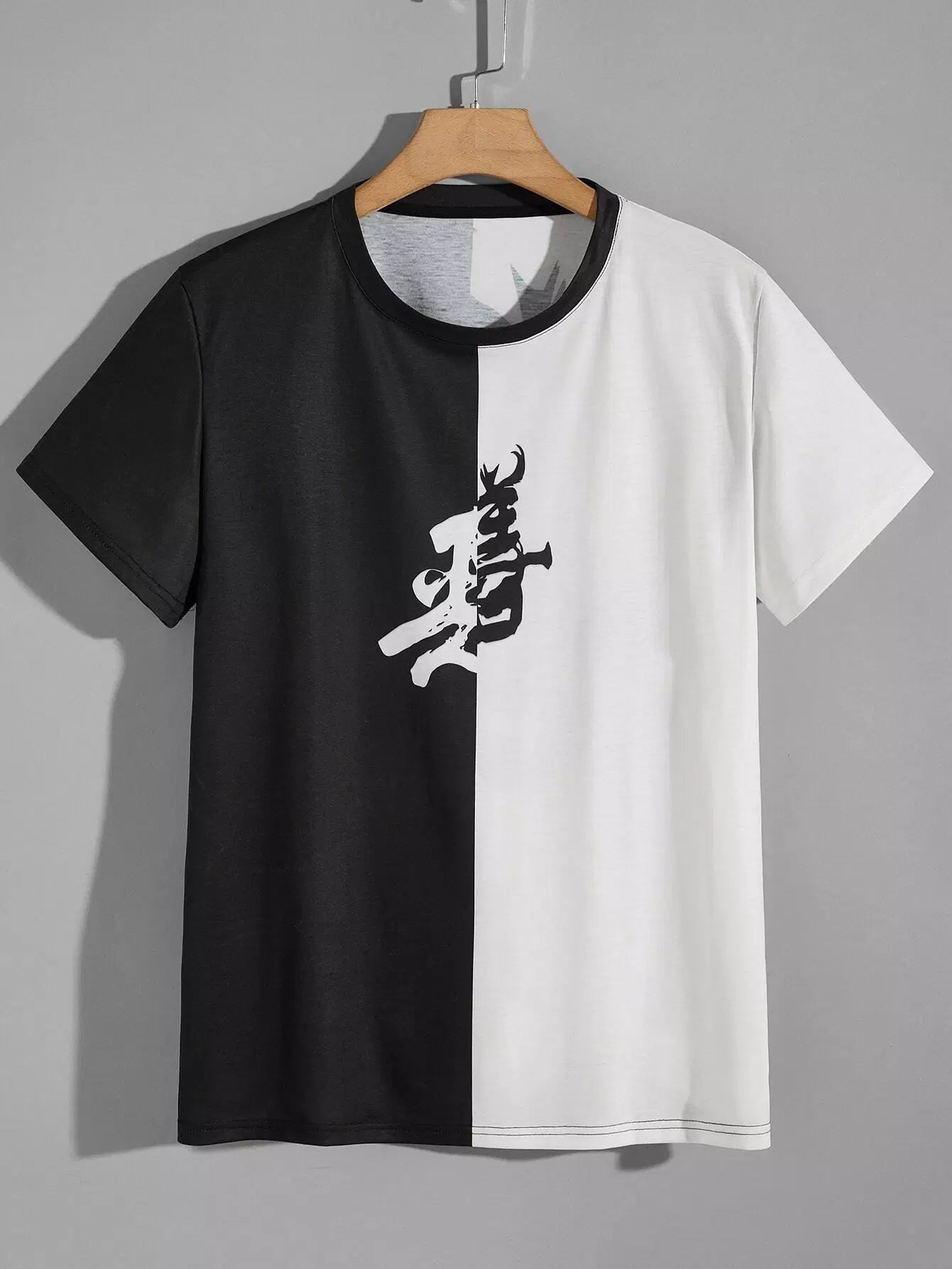 Men Chinese Letter Graphic Spliced Tee