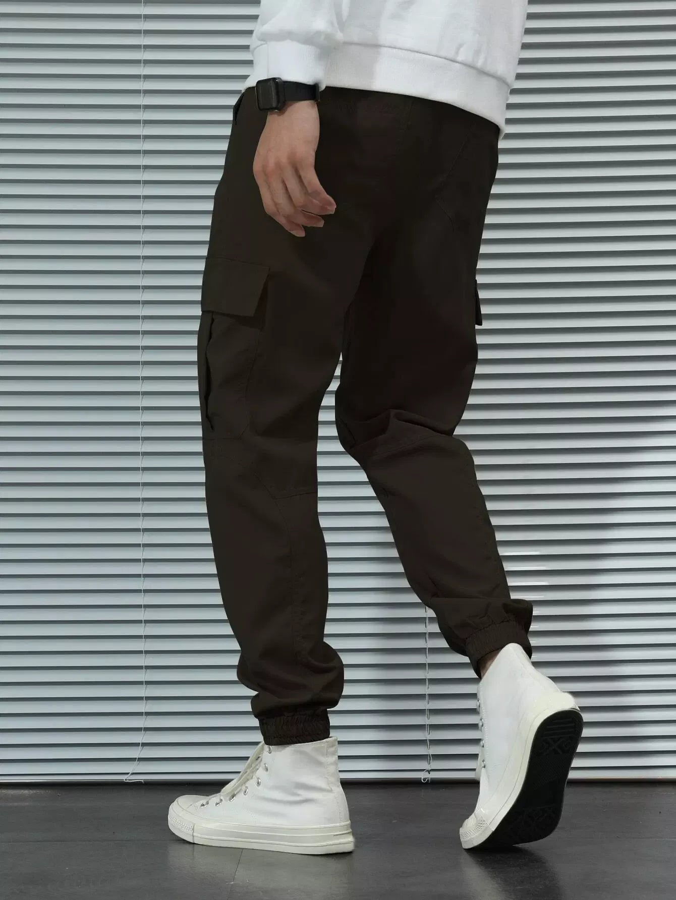 Men Drawstring Detail Flap Pockets Cargo Pants