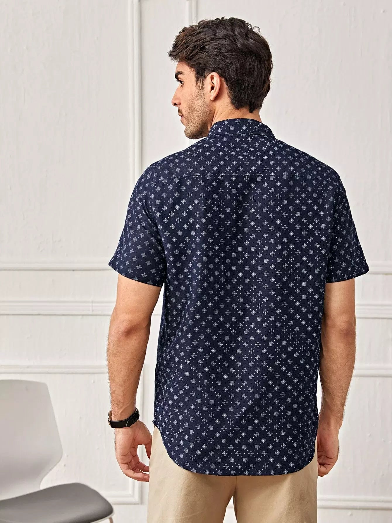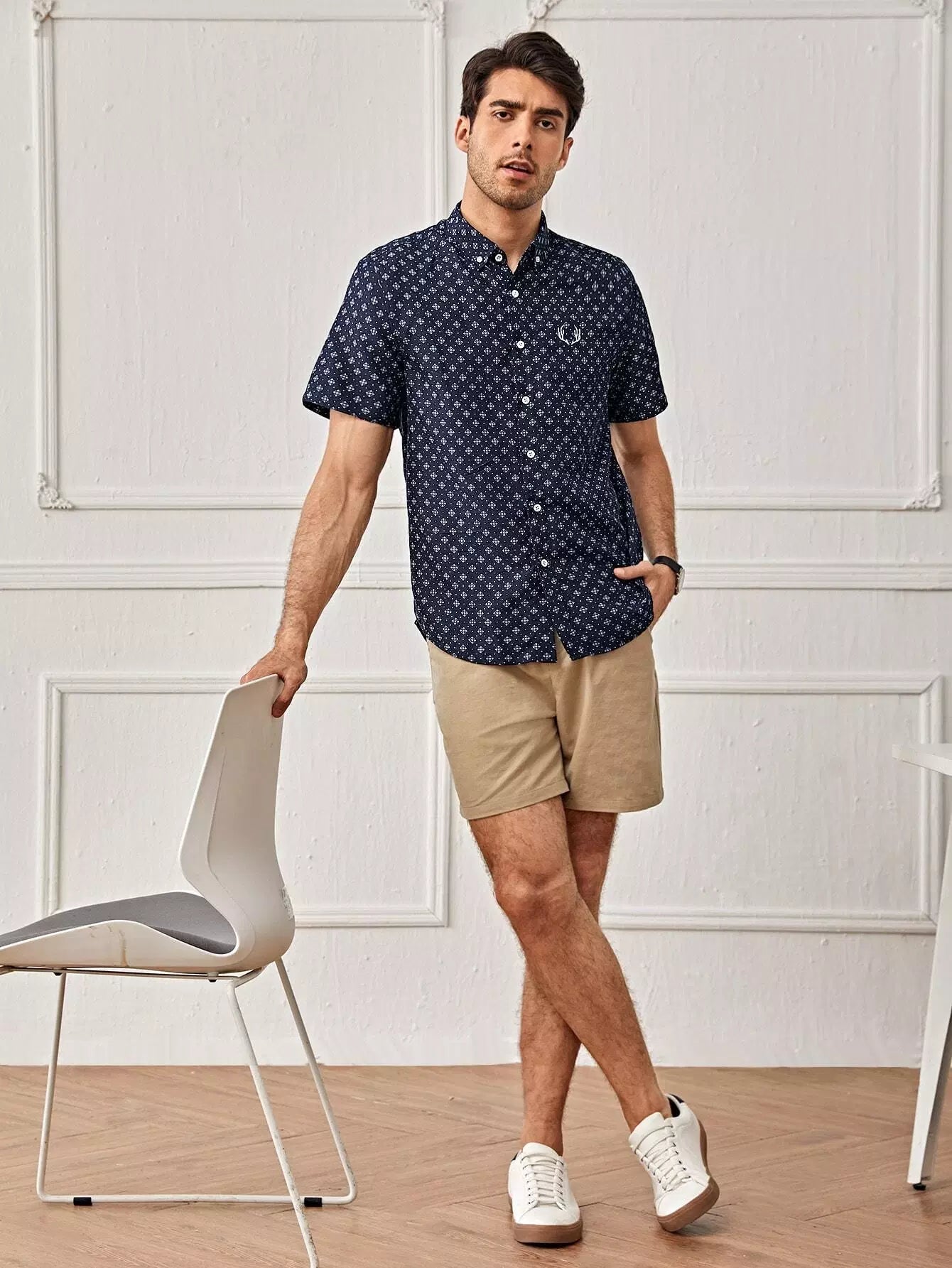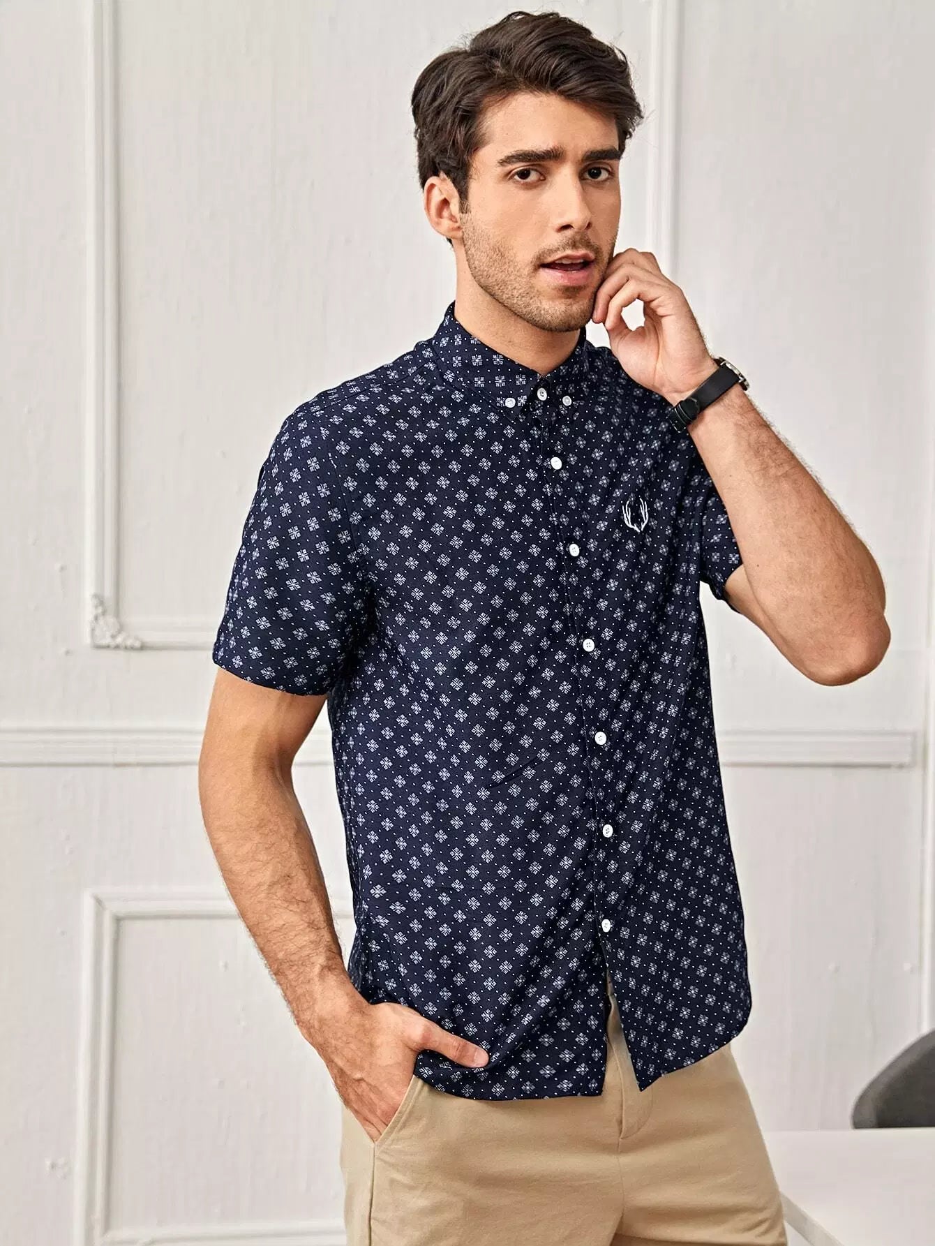 Men Embroidery Detail Allover Print Shirt
