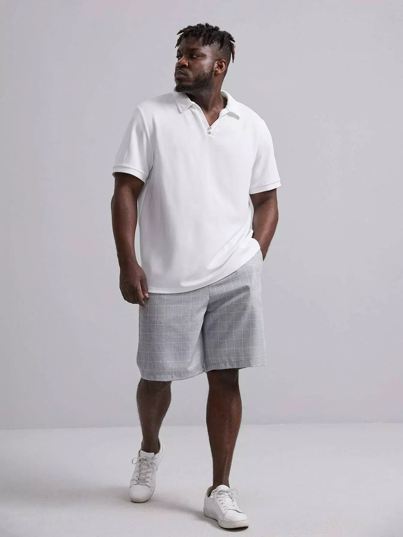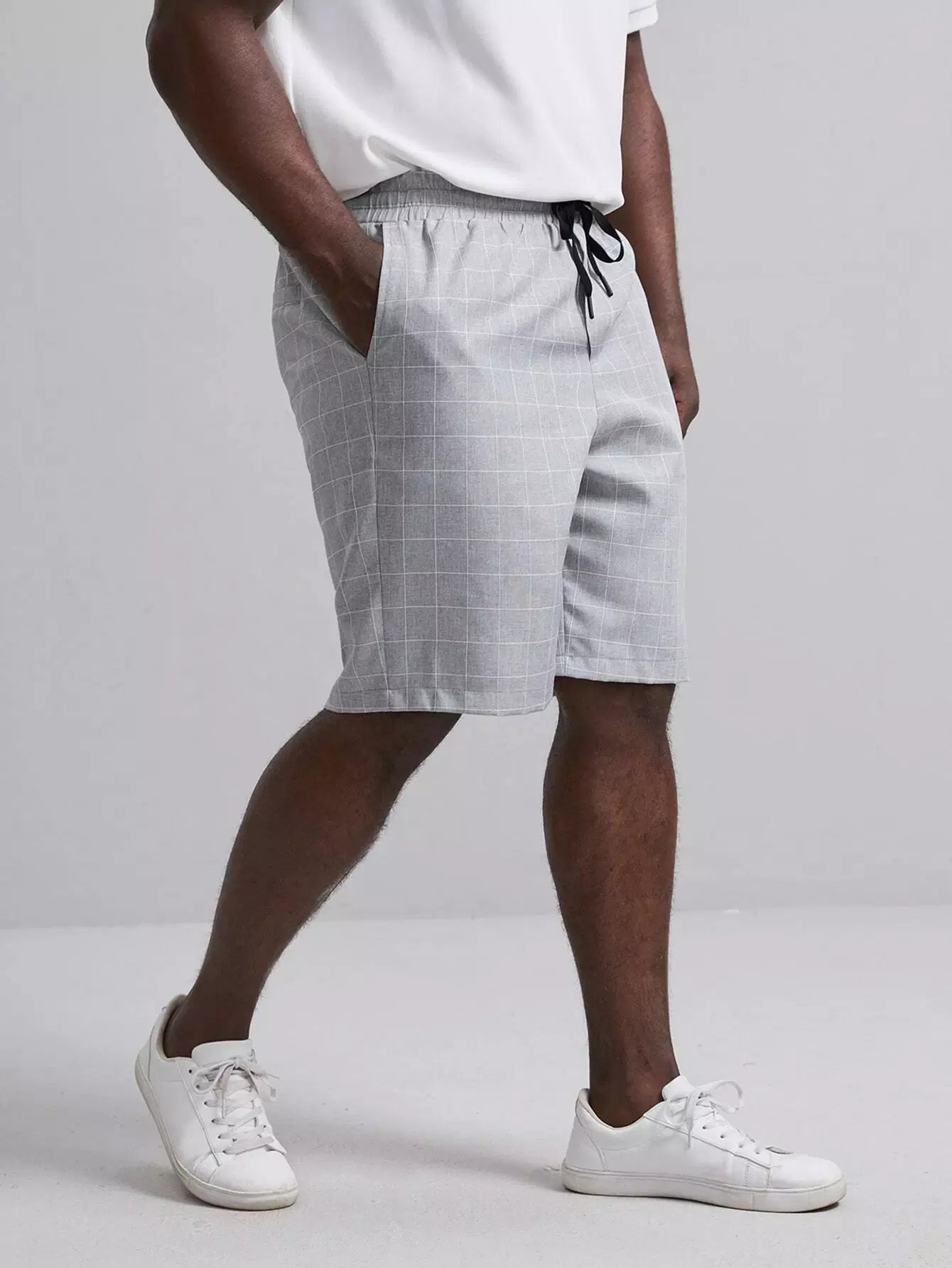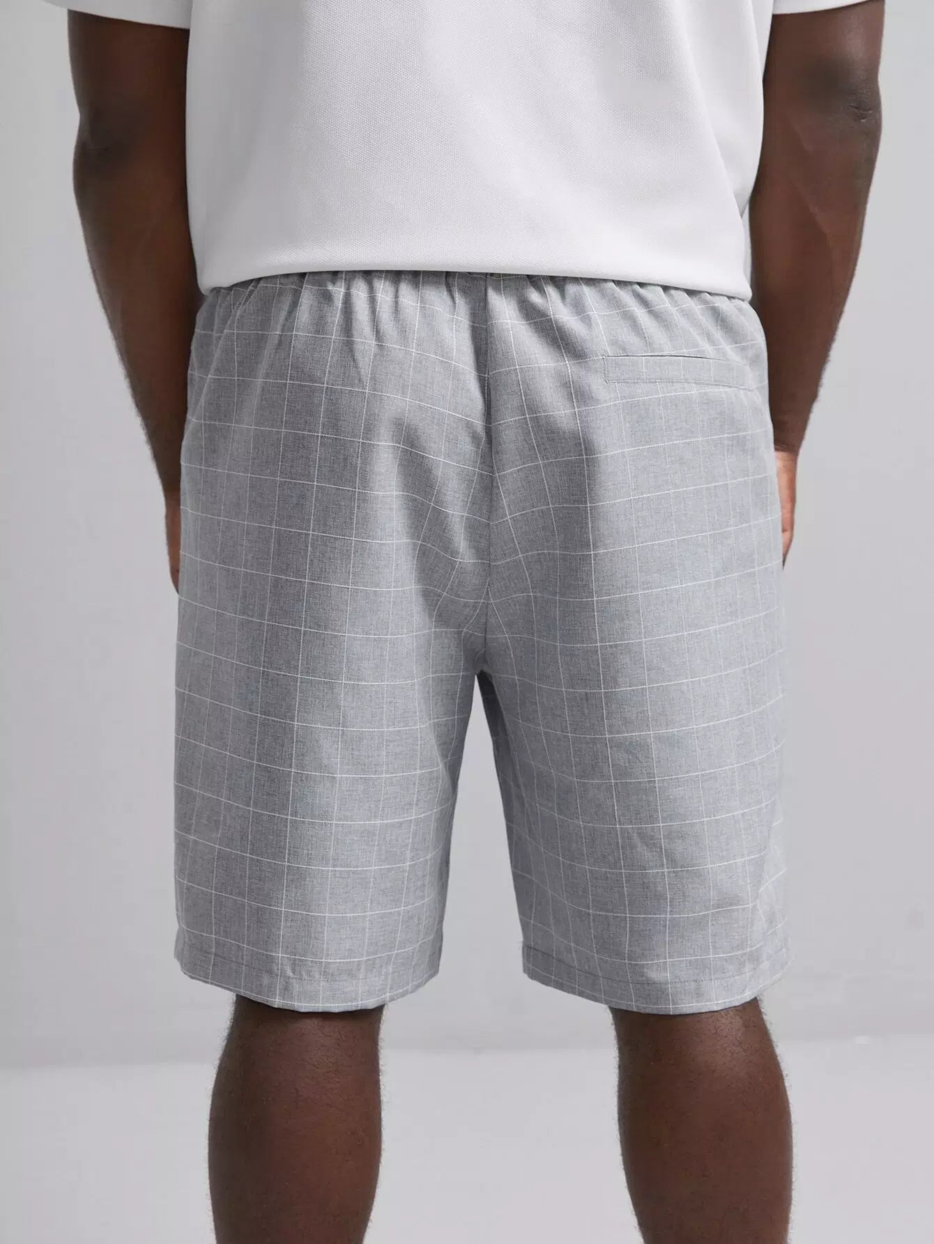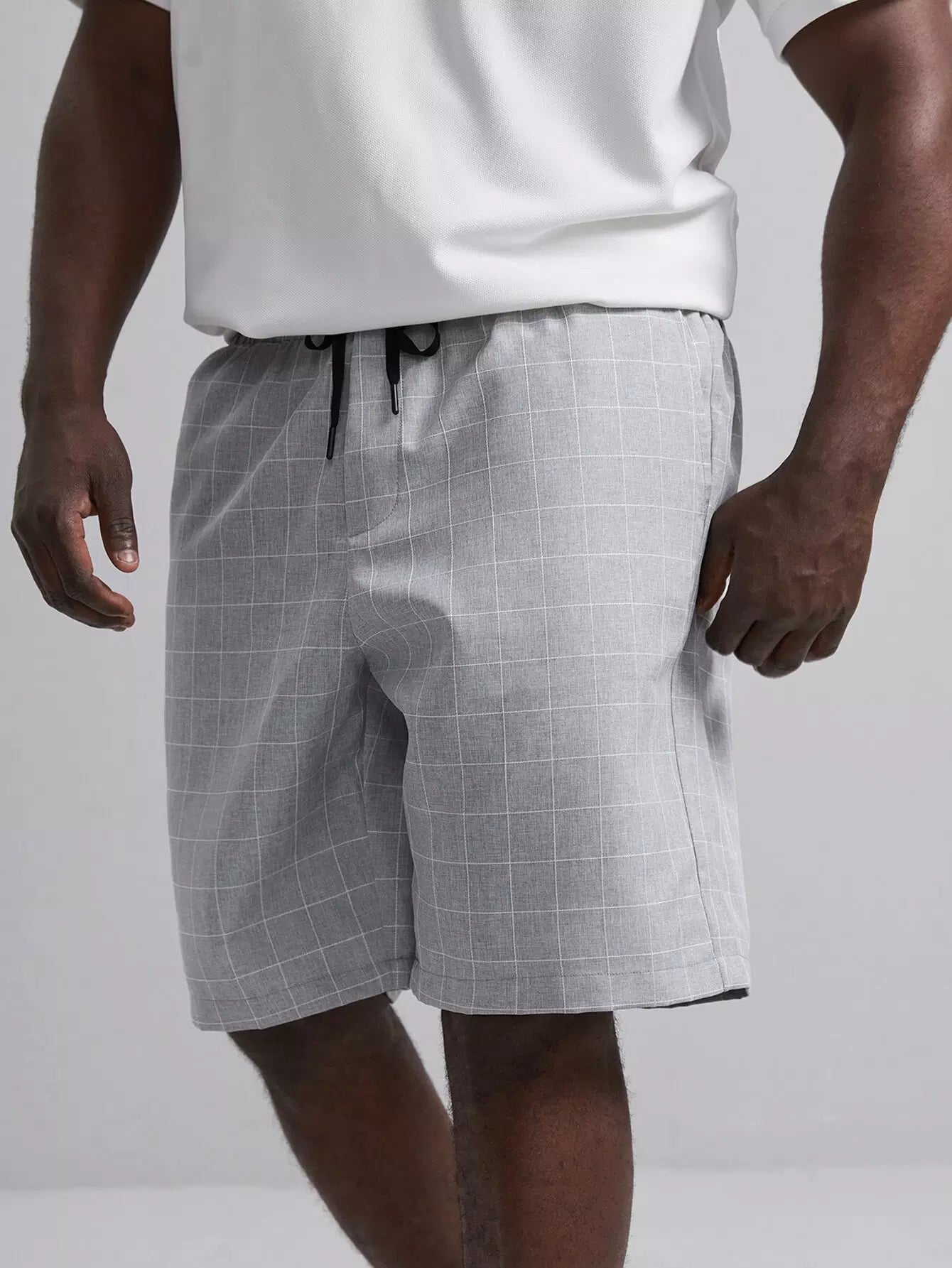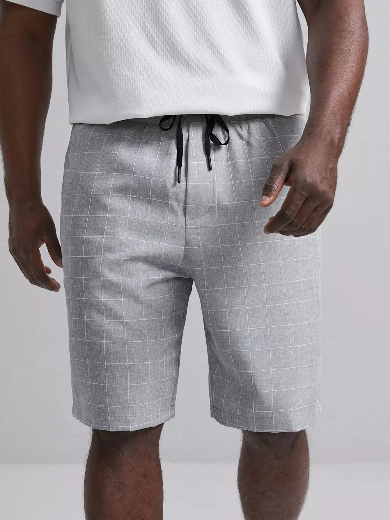 Men Grid Print Drawstring Waist Shorts