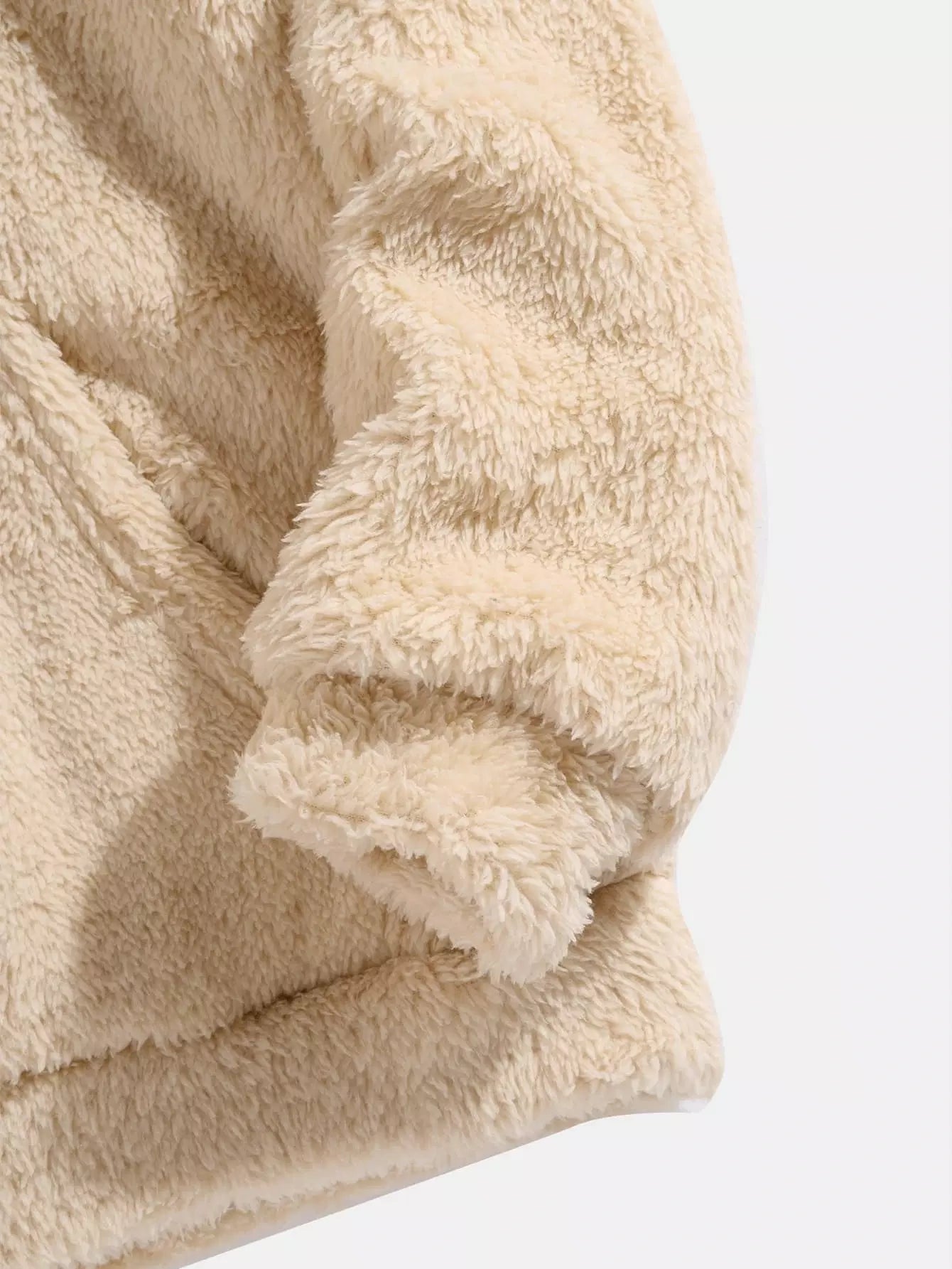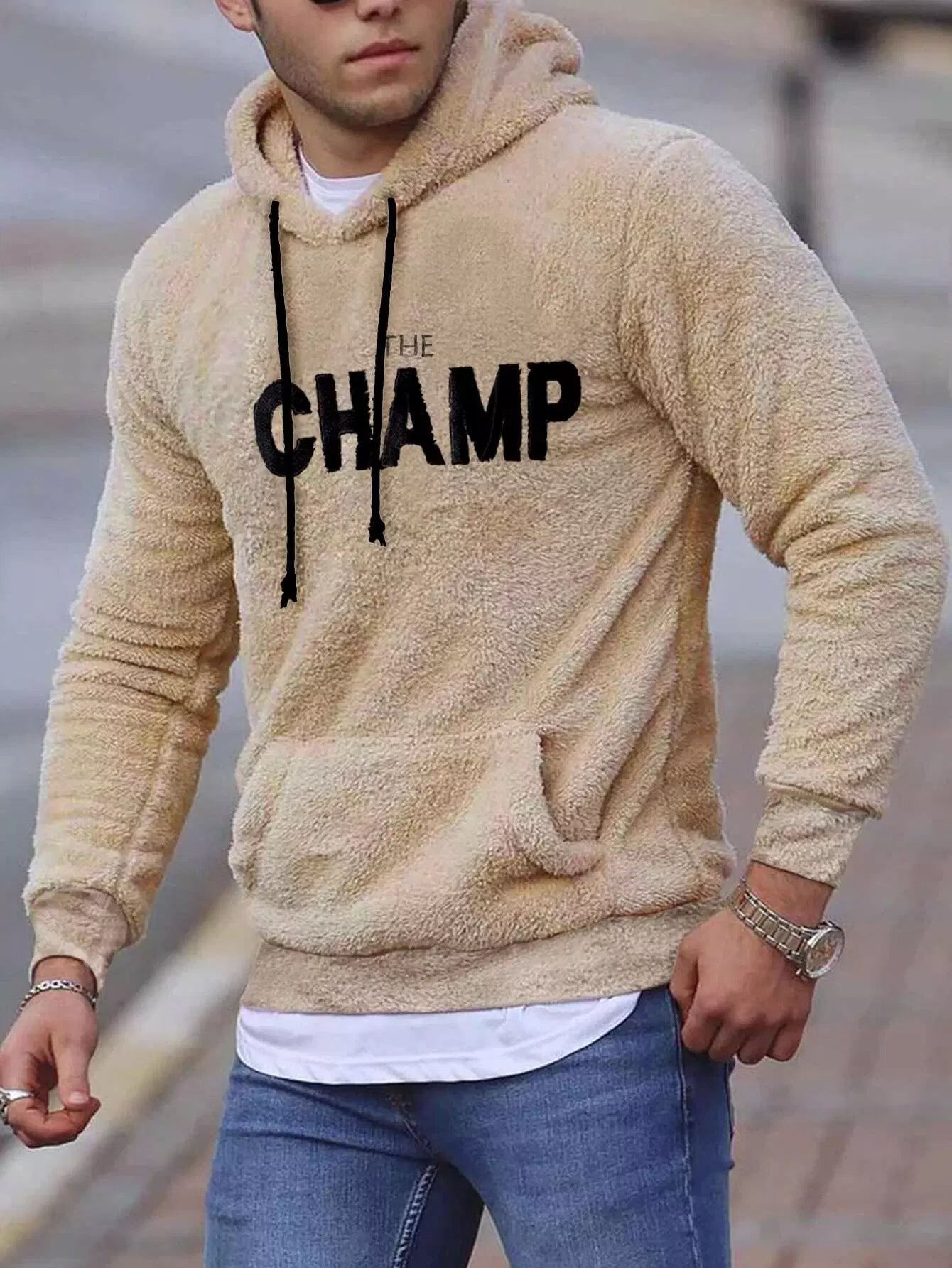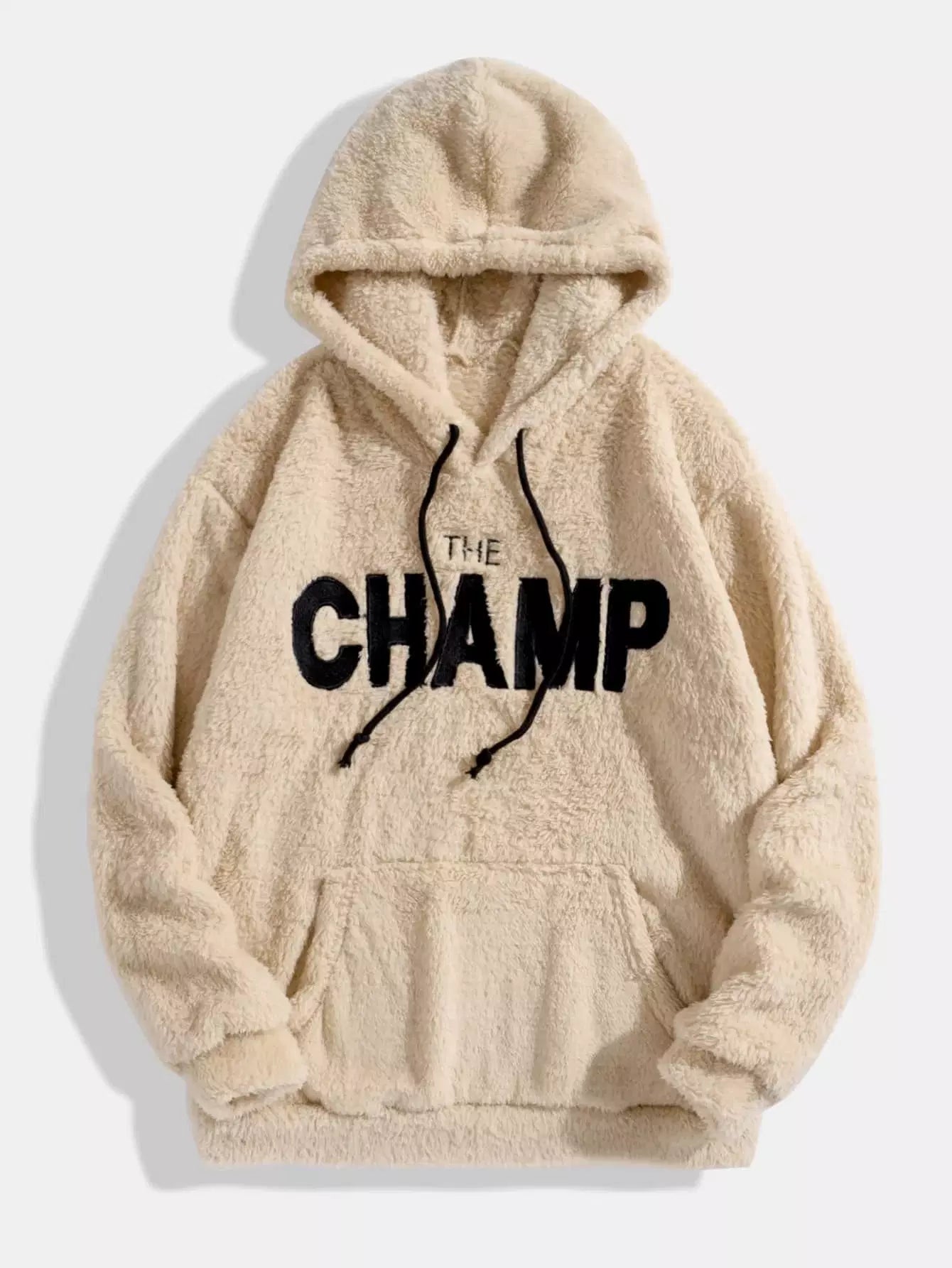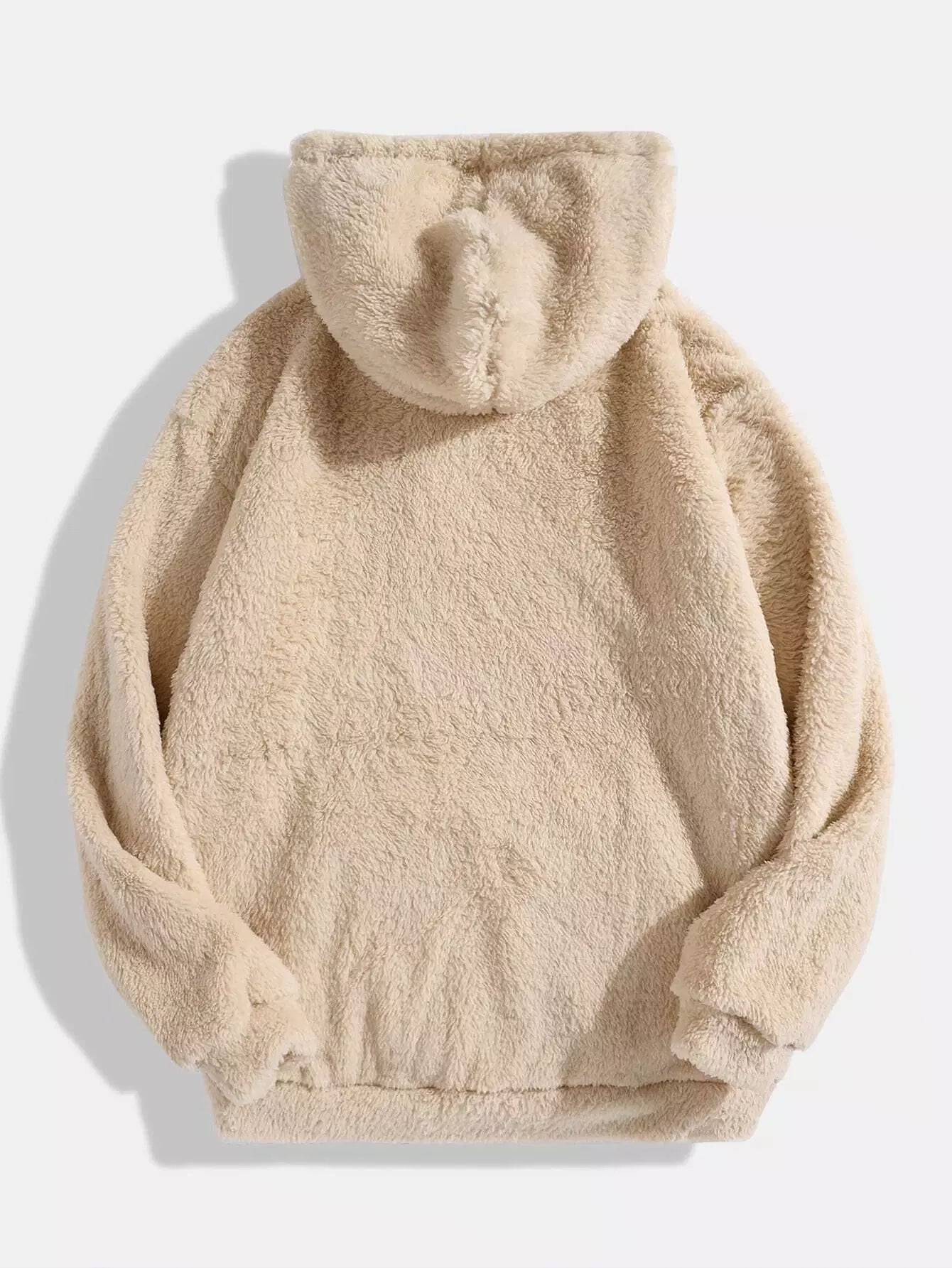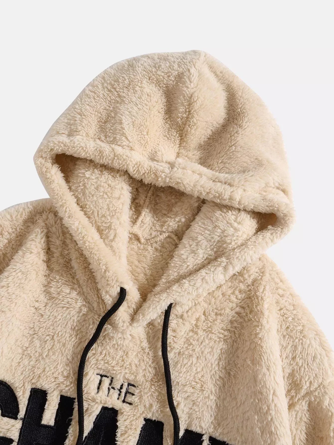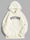 Men Letter Embroidery Kangaroo Pocket Drawstring Teddy Hoodie