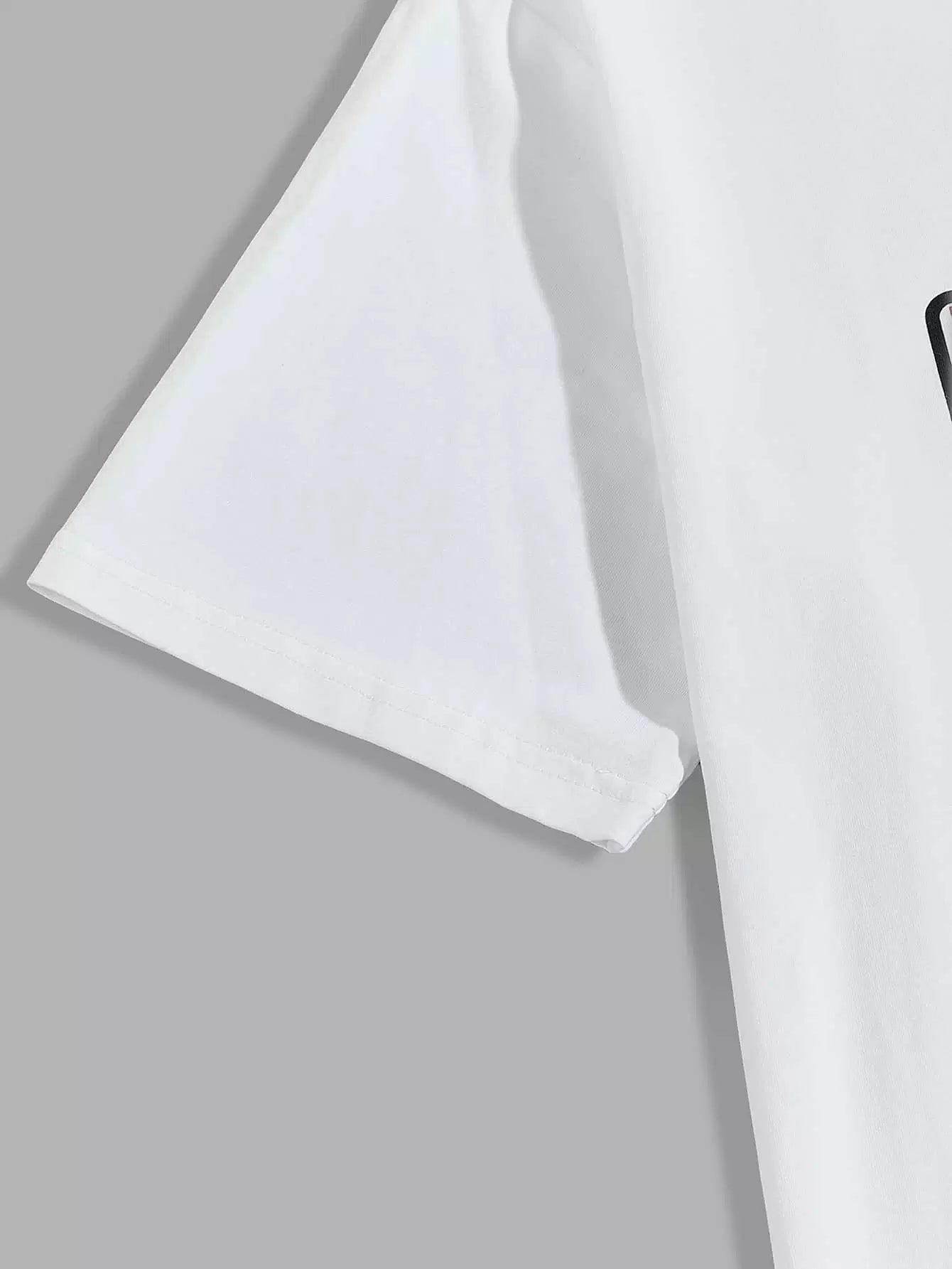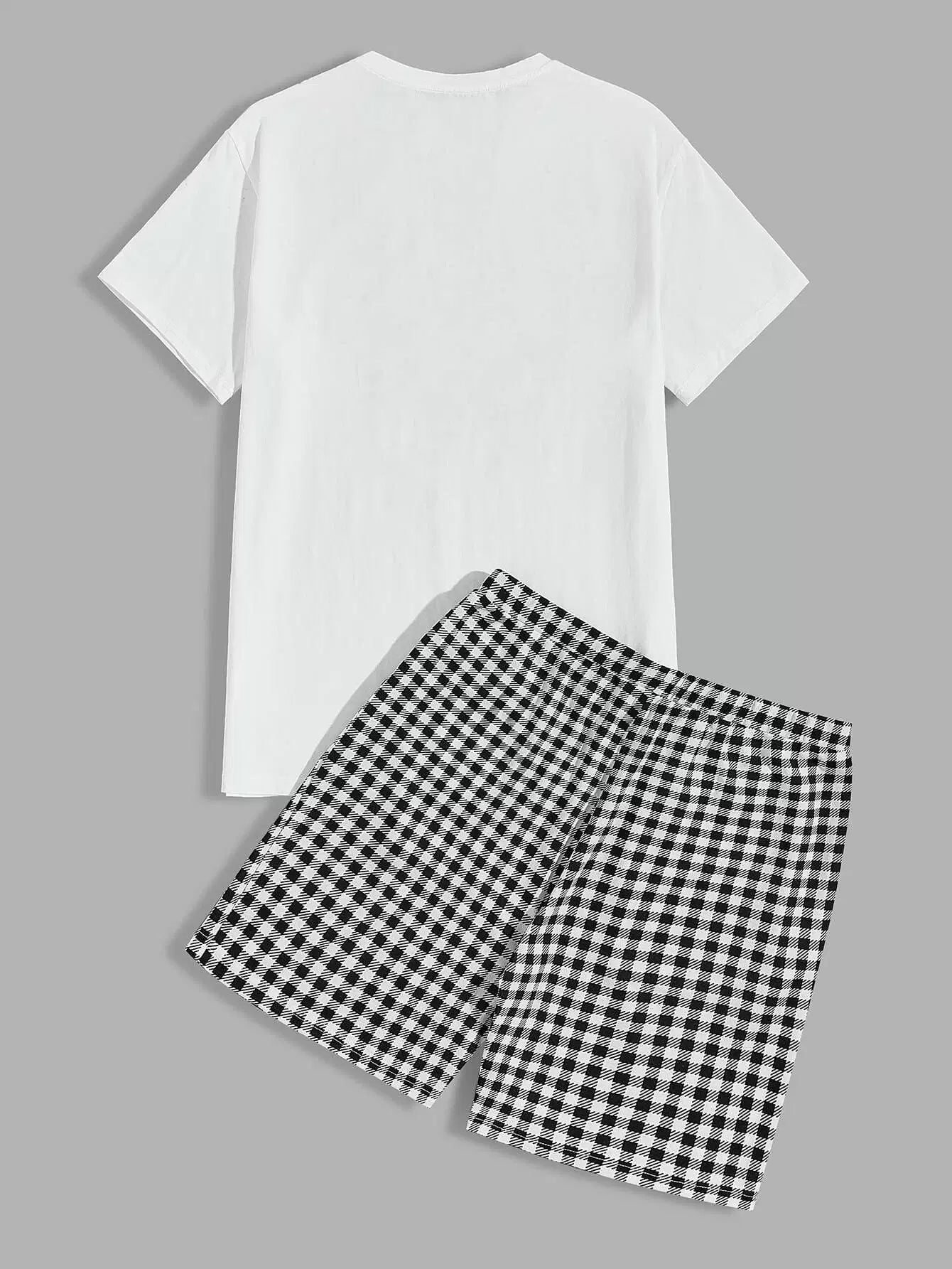 Men Letter Graphic Top & Gingham Shorts PJ Set