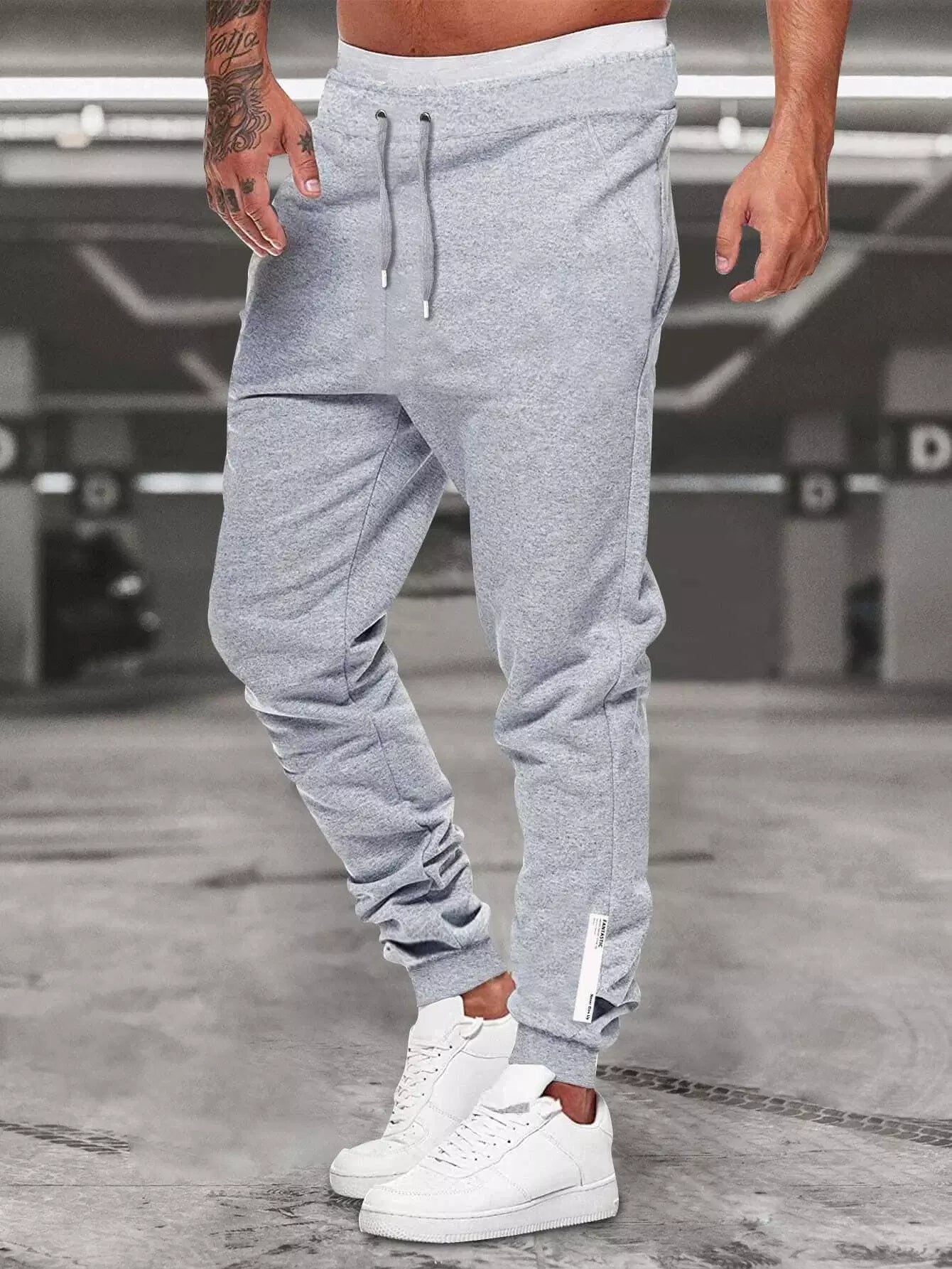 Men Letter Patched Drawstring Waist Sweatpants