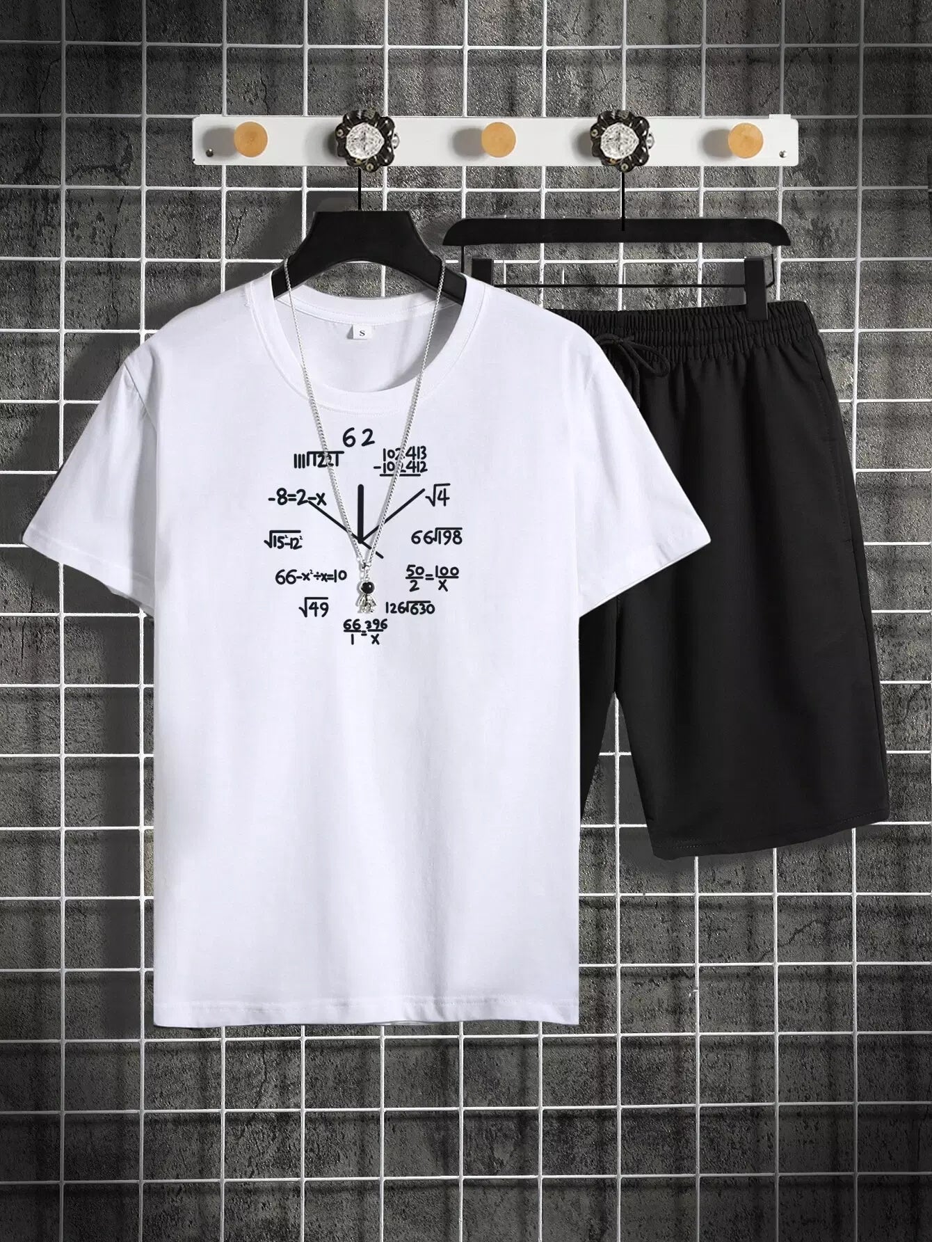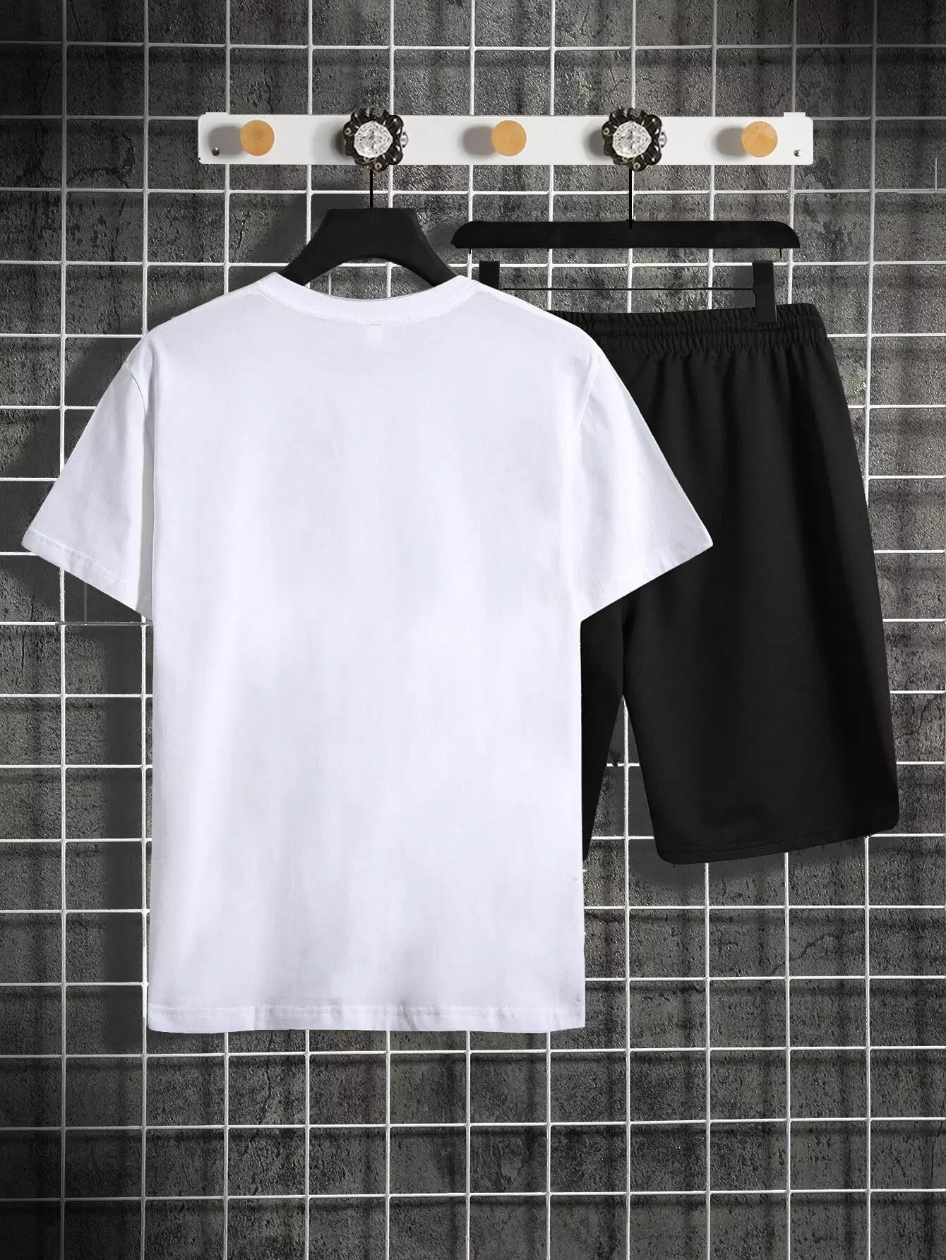 Men Number Print Tee & Track Shorts