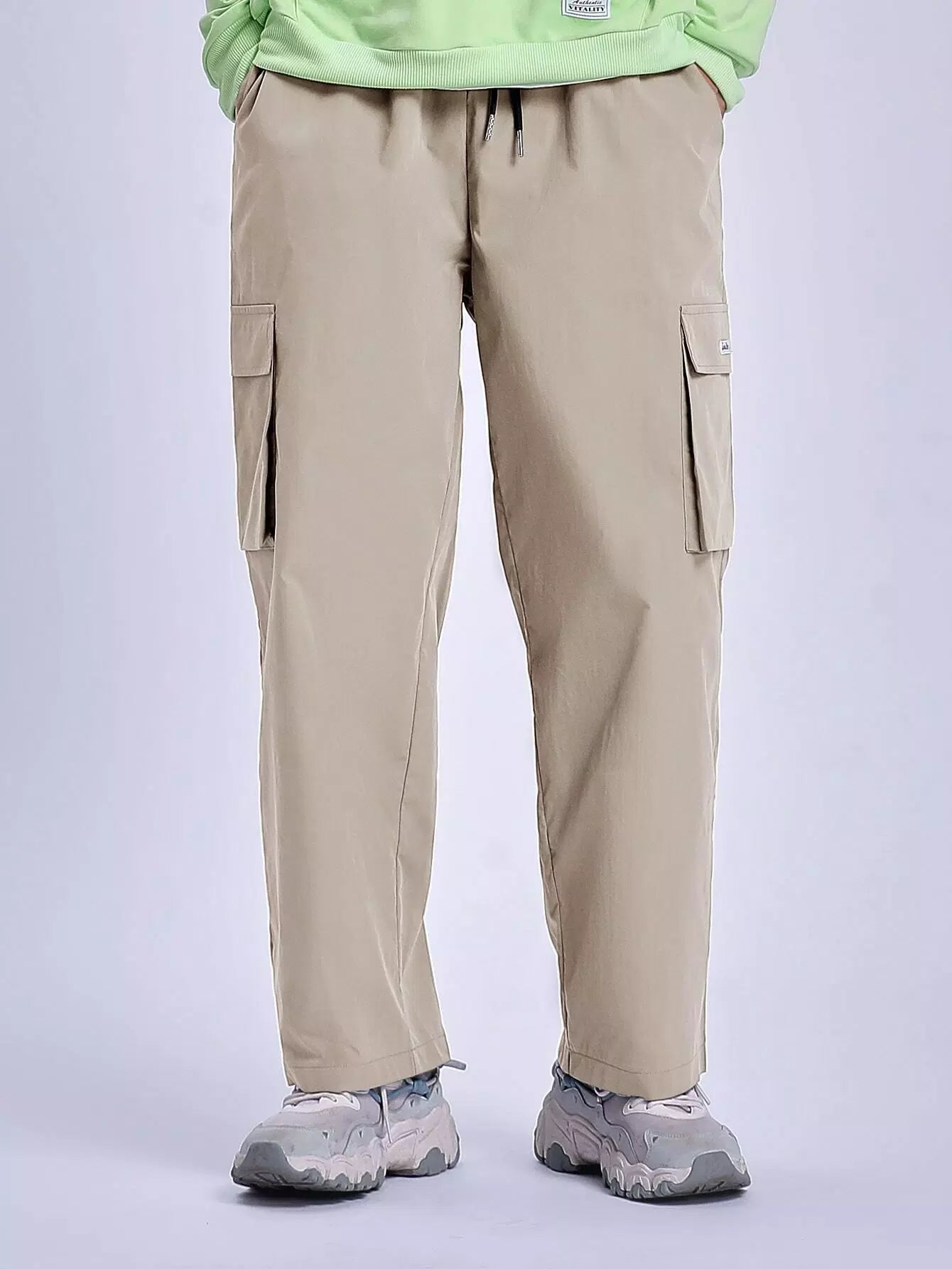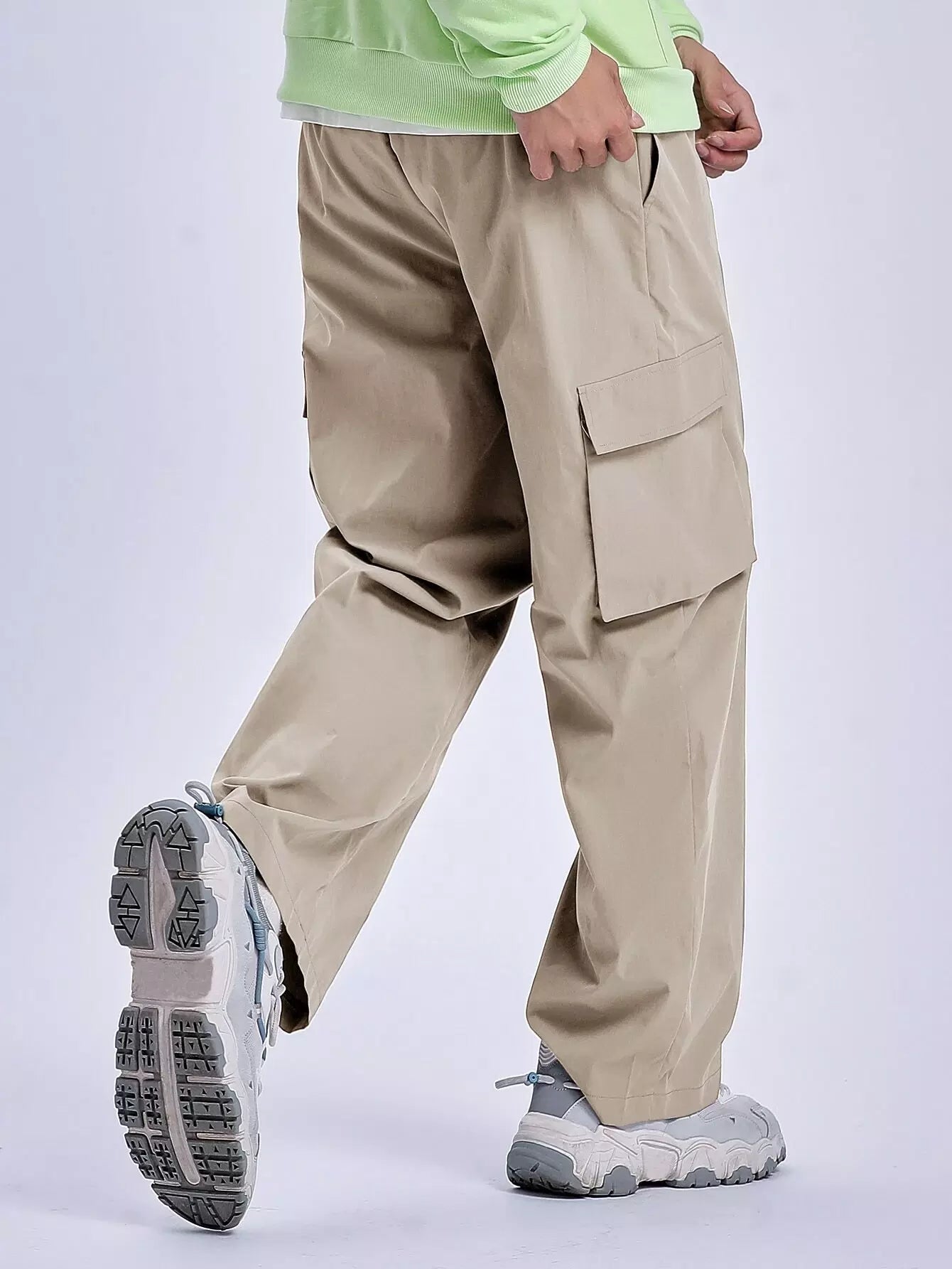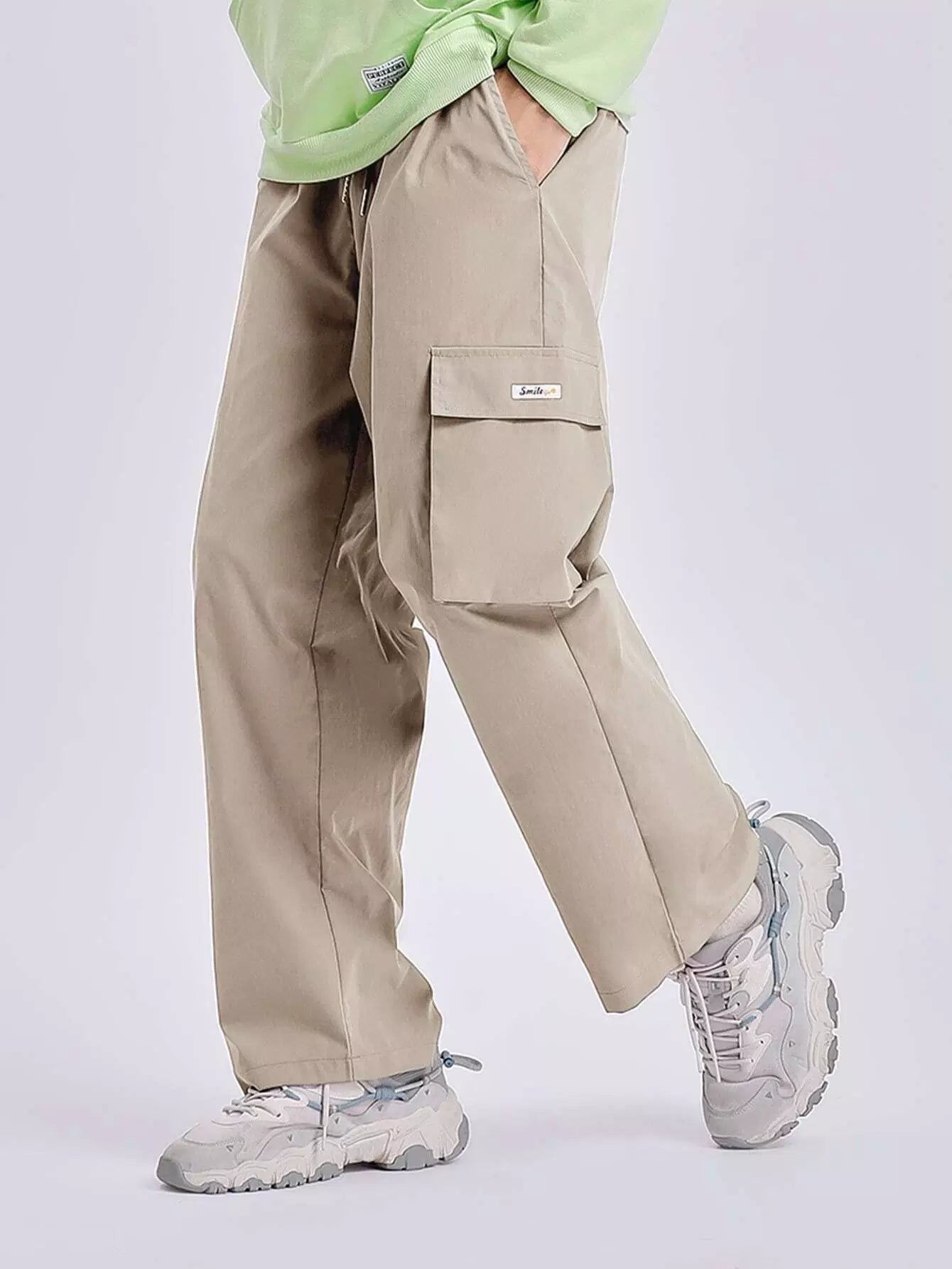 Men Patched Detail Flap Pocket Side Drawstring Pants