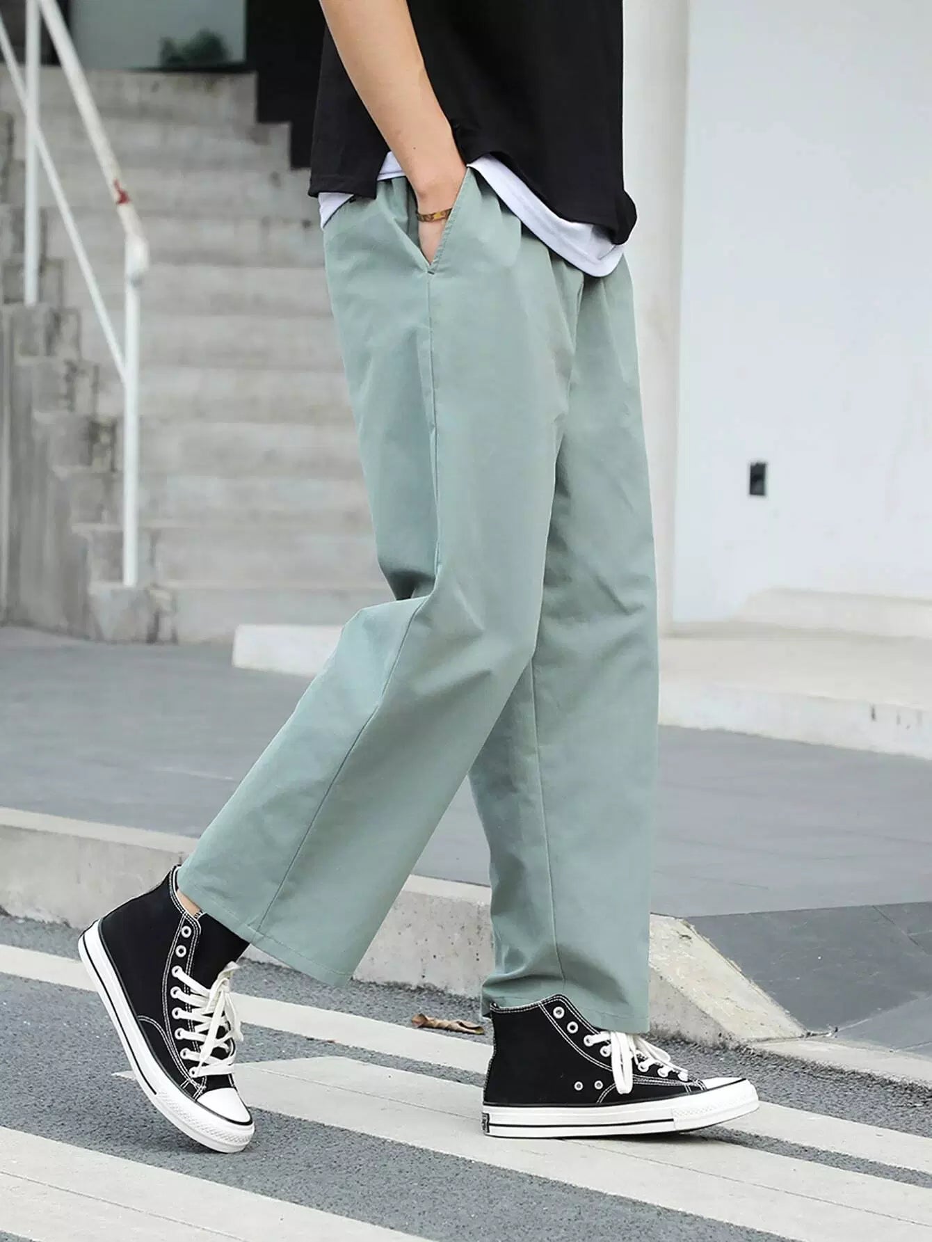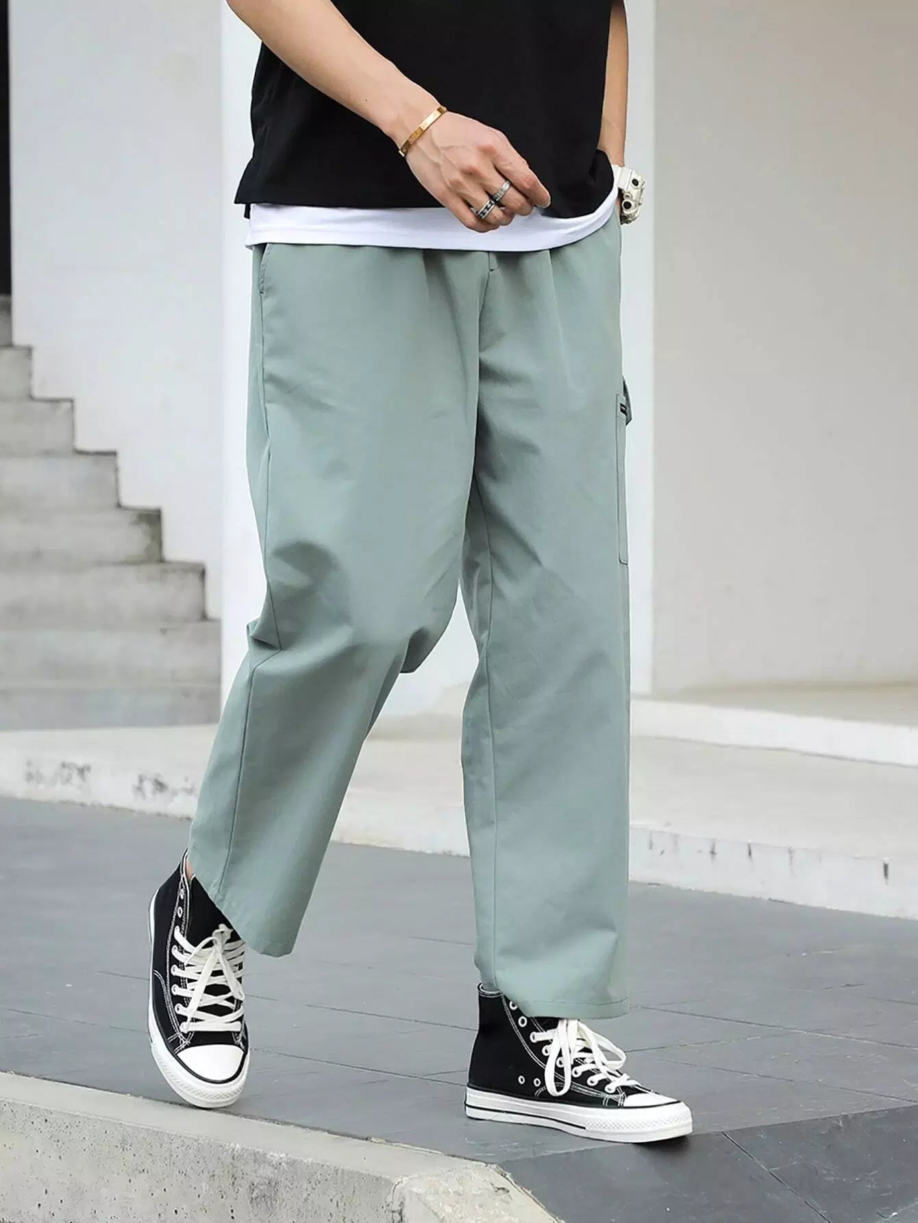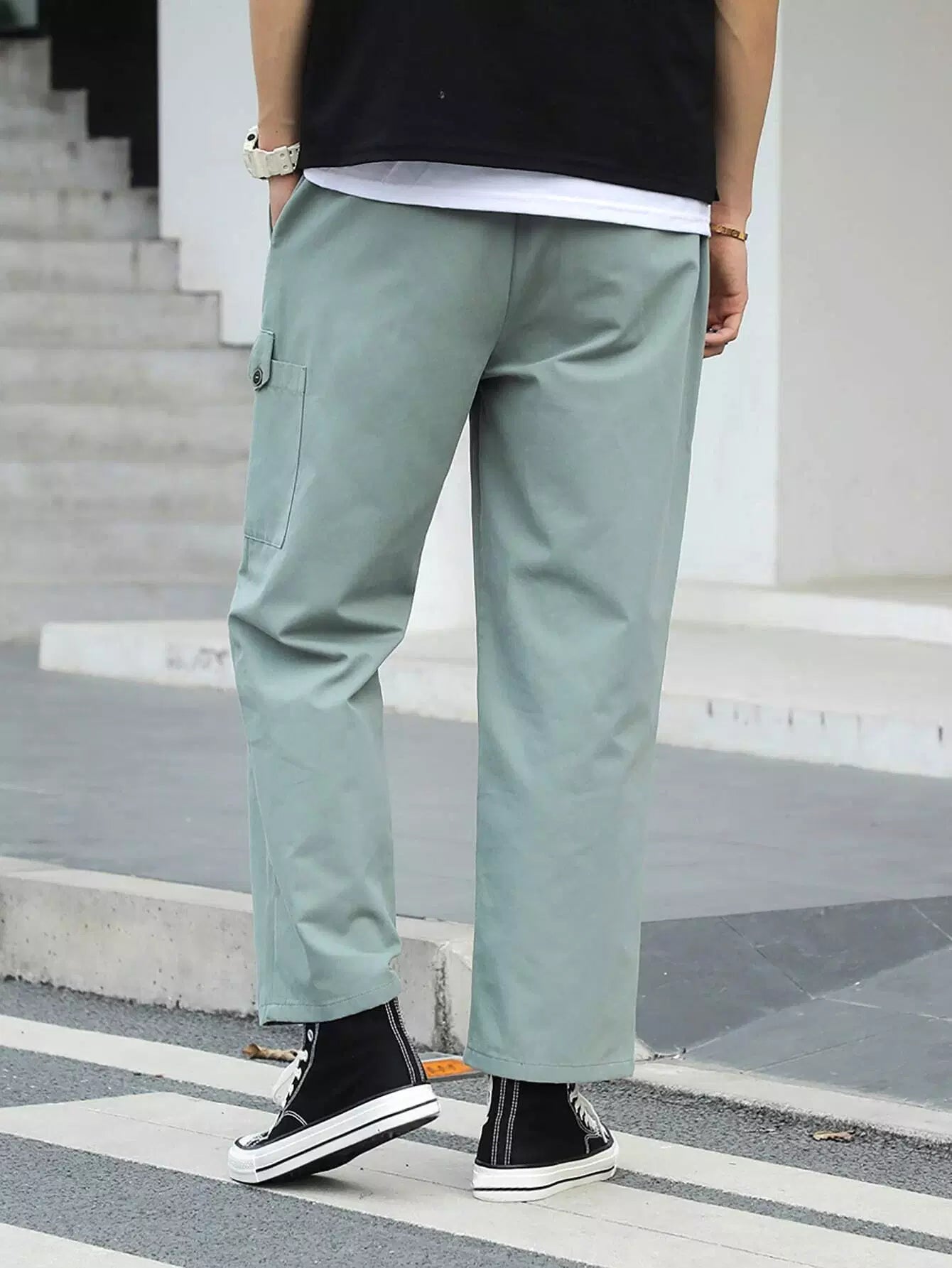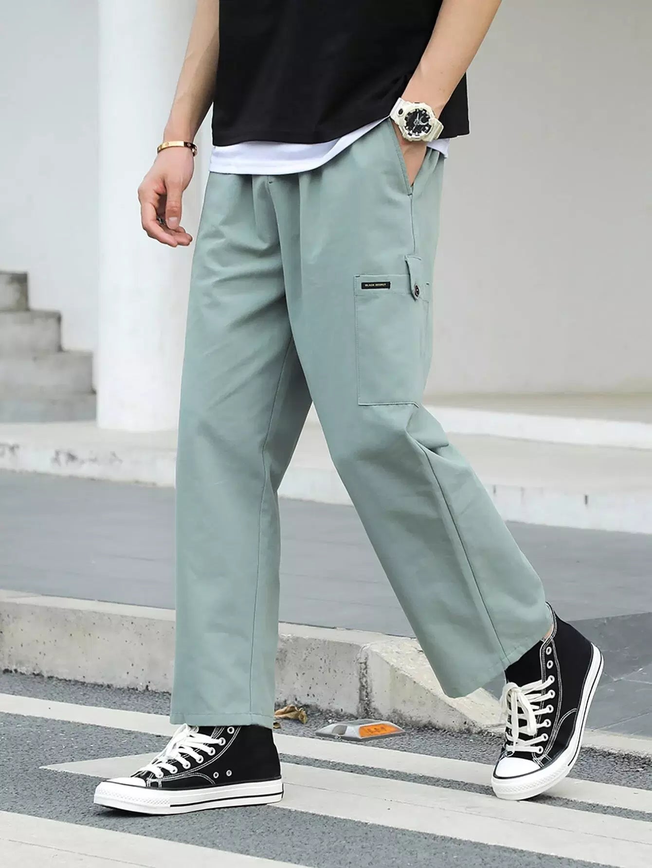 Men Pocket Side Straight Leg Pants