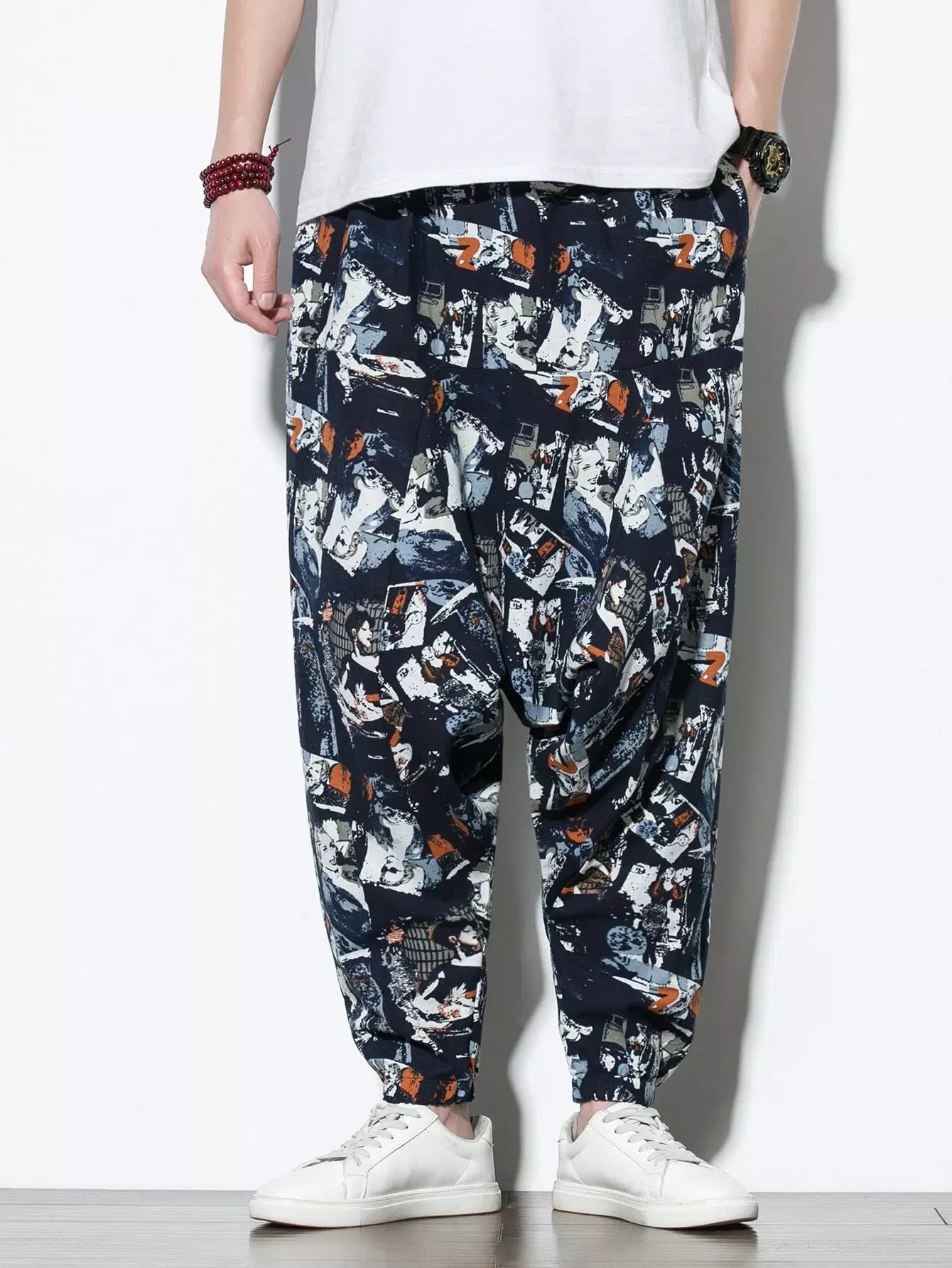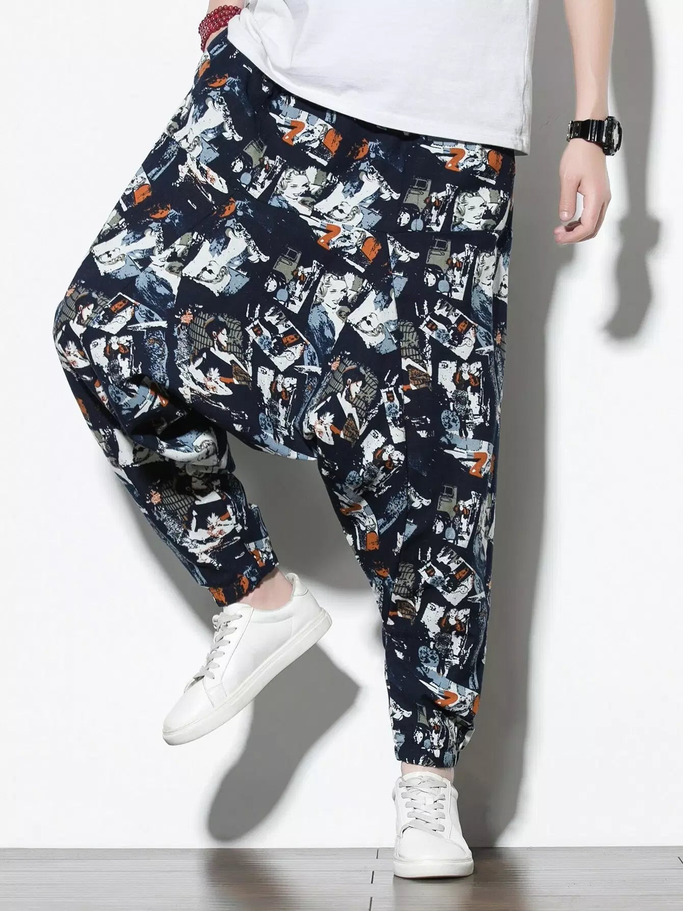 Men - Men Pop Art Print Drop Crotch Pants