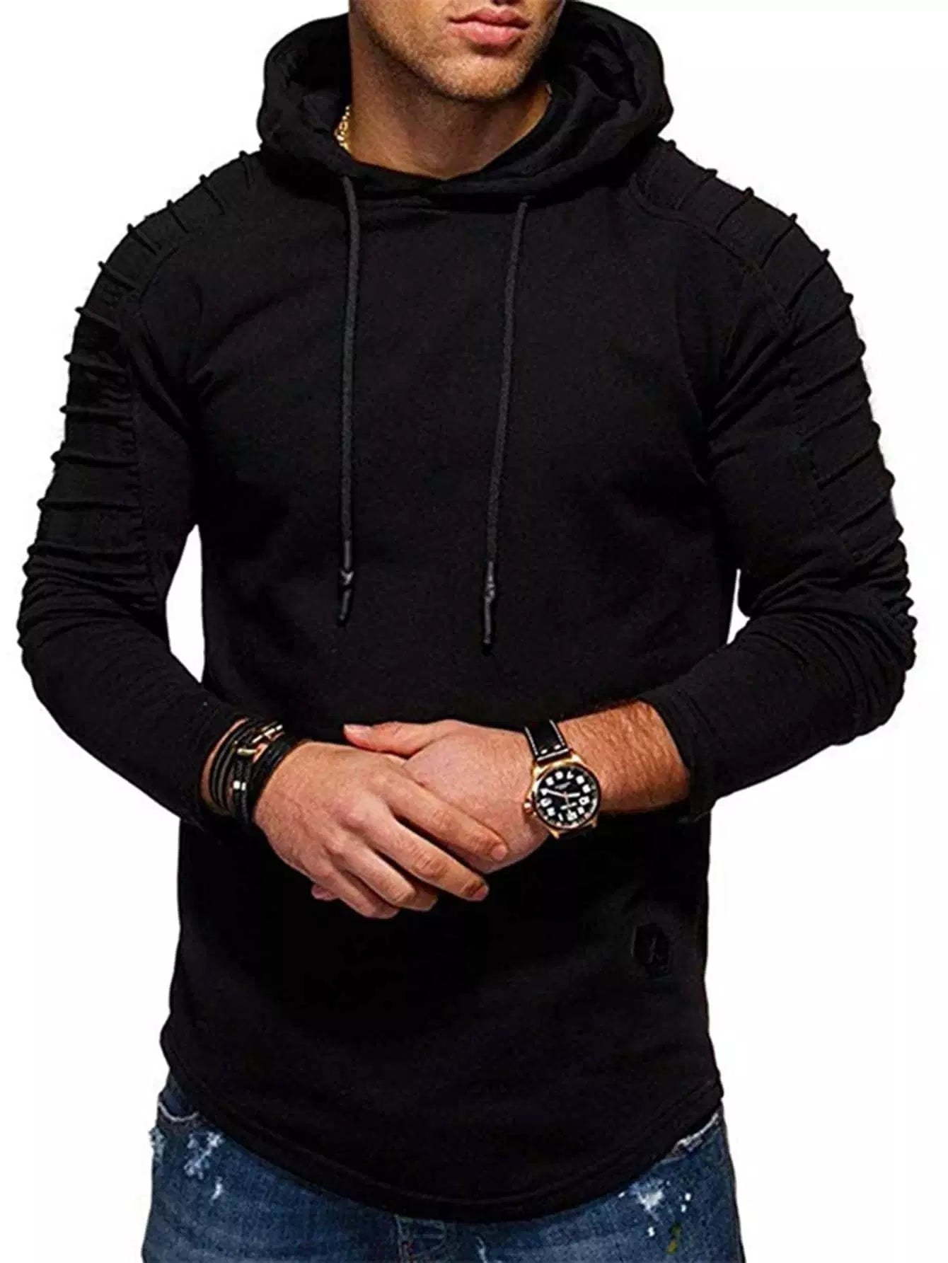 Men Raglan Sleeve Drawstring Hoodie