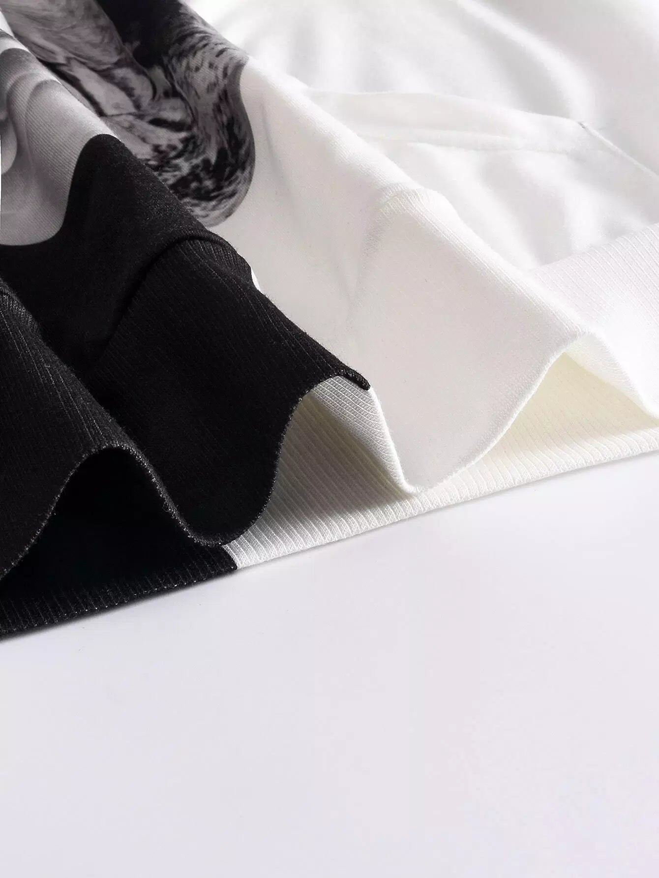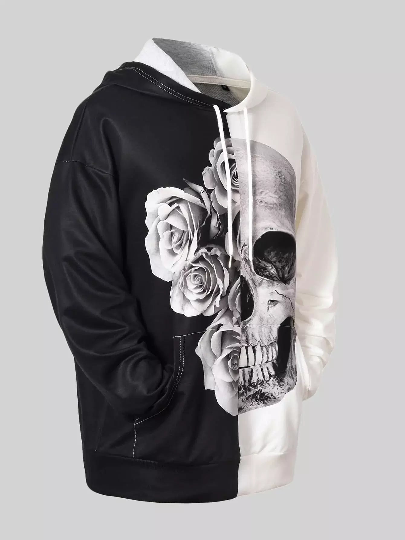 Men Skull And Floral Two Tone Hooded Sweatshirt