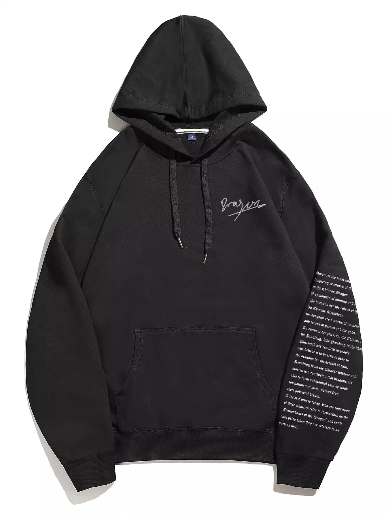 Men - Men Slogan Graphic Kangaroo Pocket Drawstring Hoodie