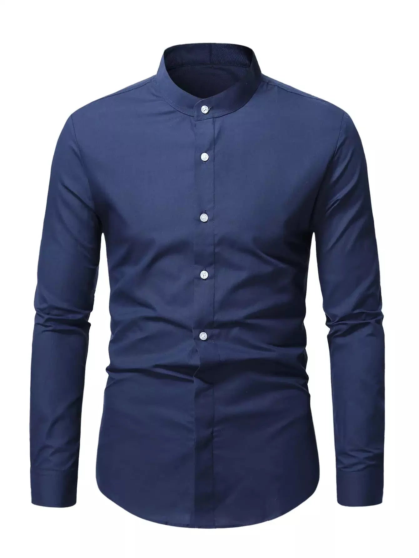 Men Solid Mock Neck Button Up Shirt