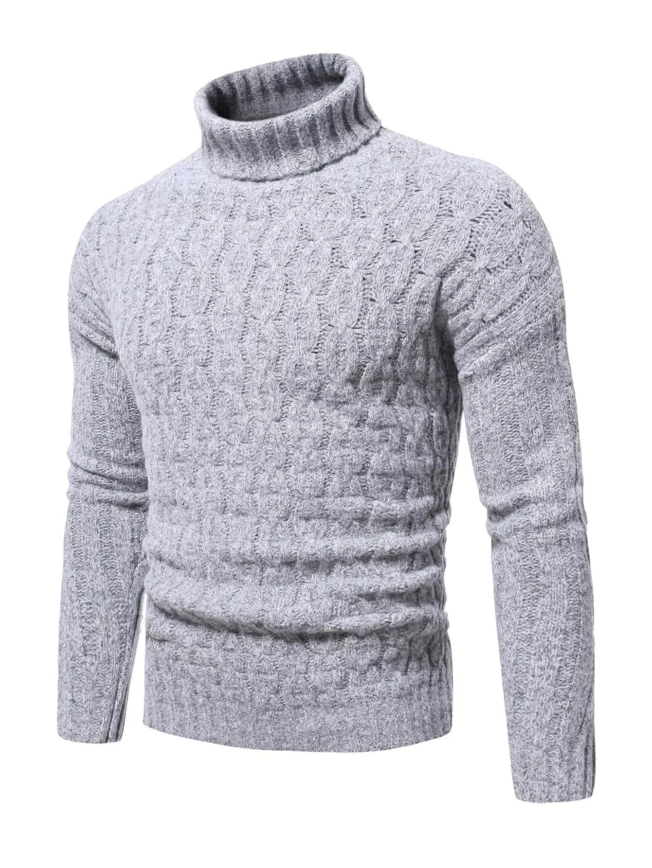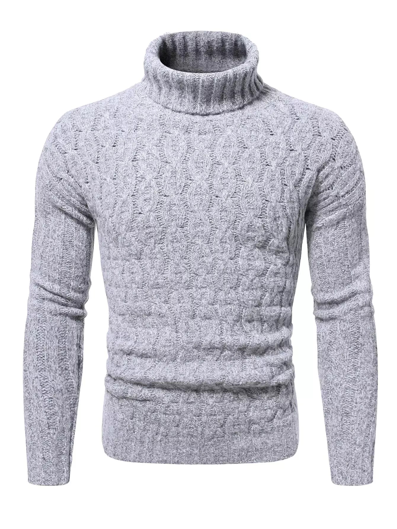 Men Turtle Neck Cable Knit Sweater